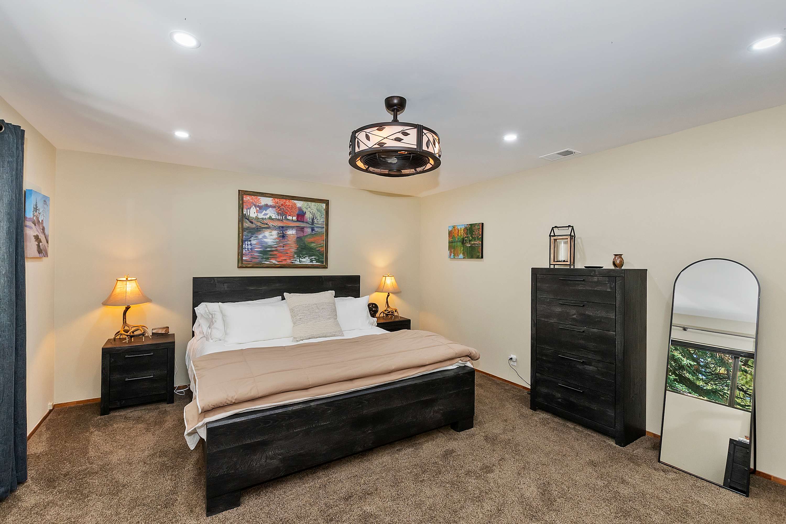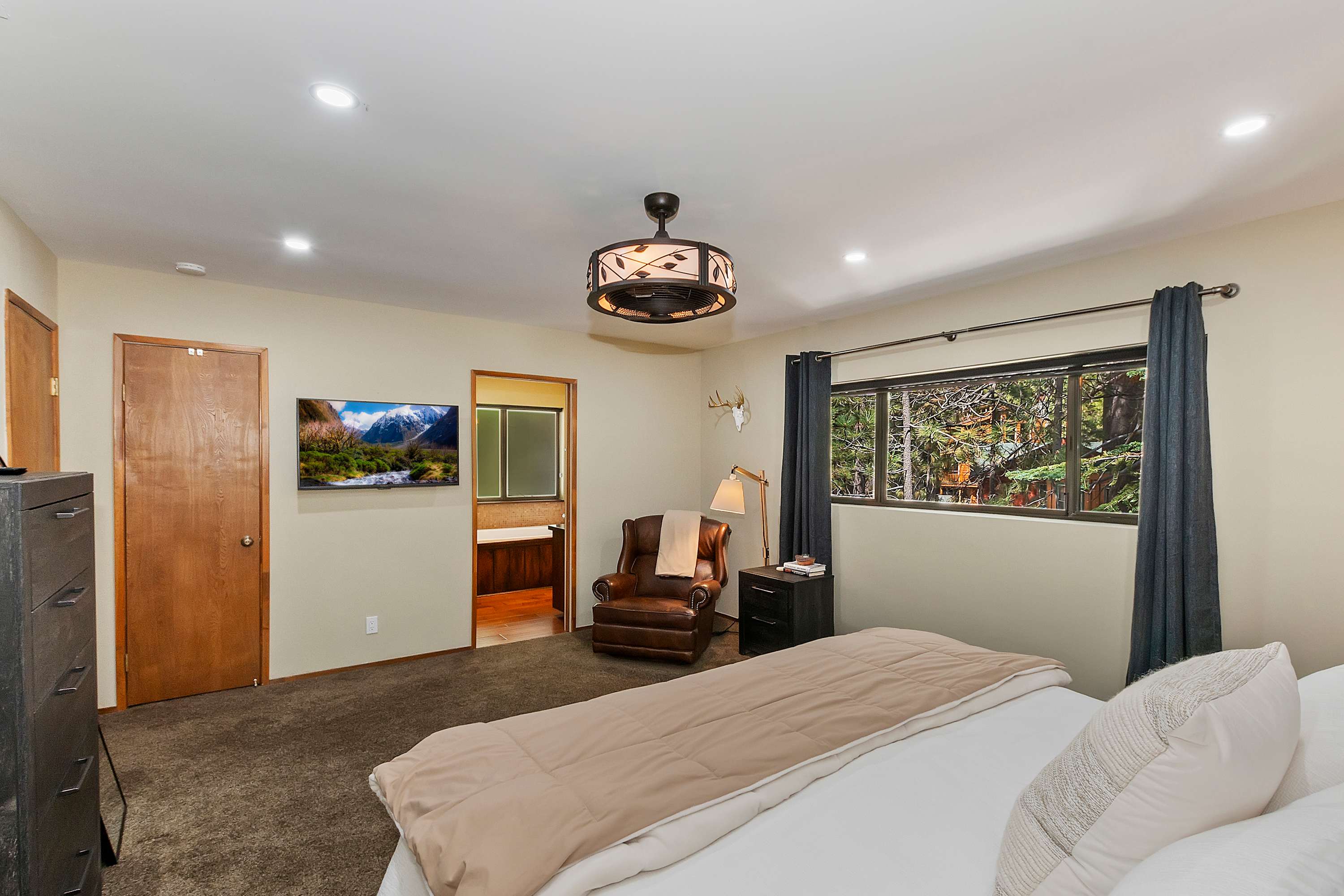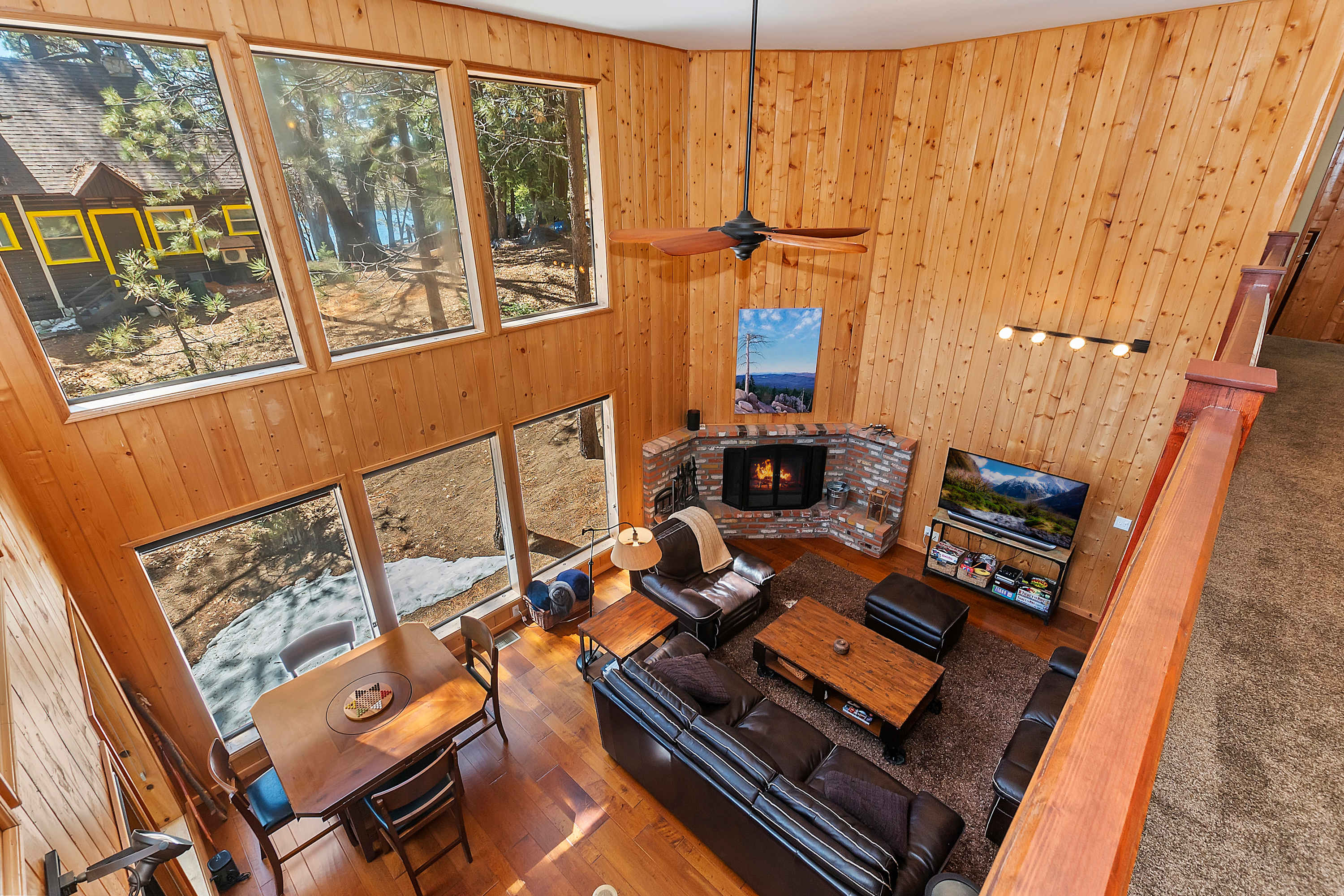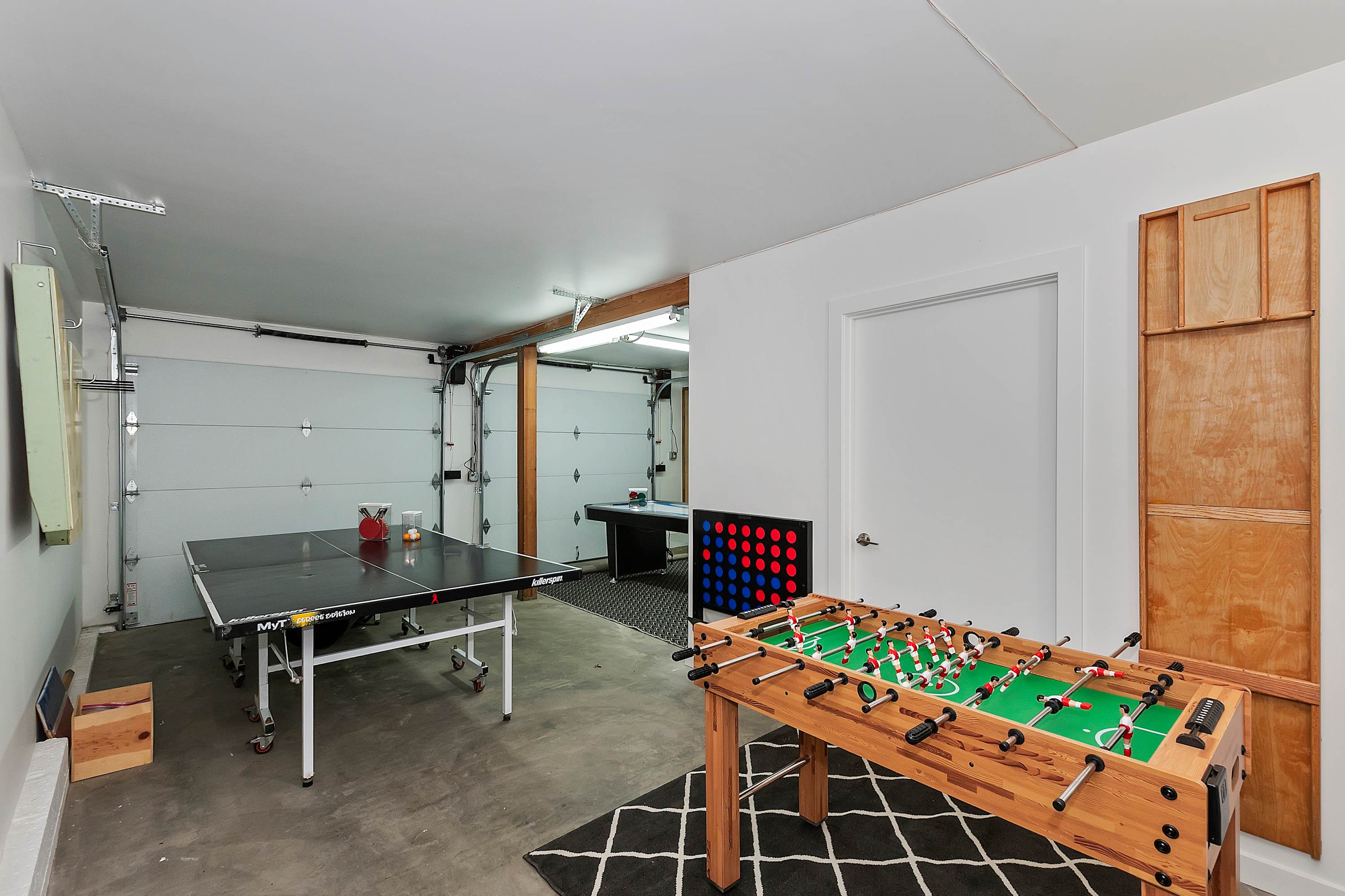 For even more entertainment, head to the garage-turned-game room, where excitement awaits with ping pong, and air hockey. A TV and a collection of board games make this the perfect hangout spot for kids and adults alike. Whether you’re soaking in the tranquility of the lake, gathering around the fireplace, or battling it out in a game of air hockey, this Green Valley Lake retreat offers something for everyone.