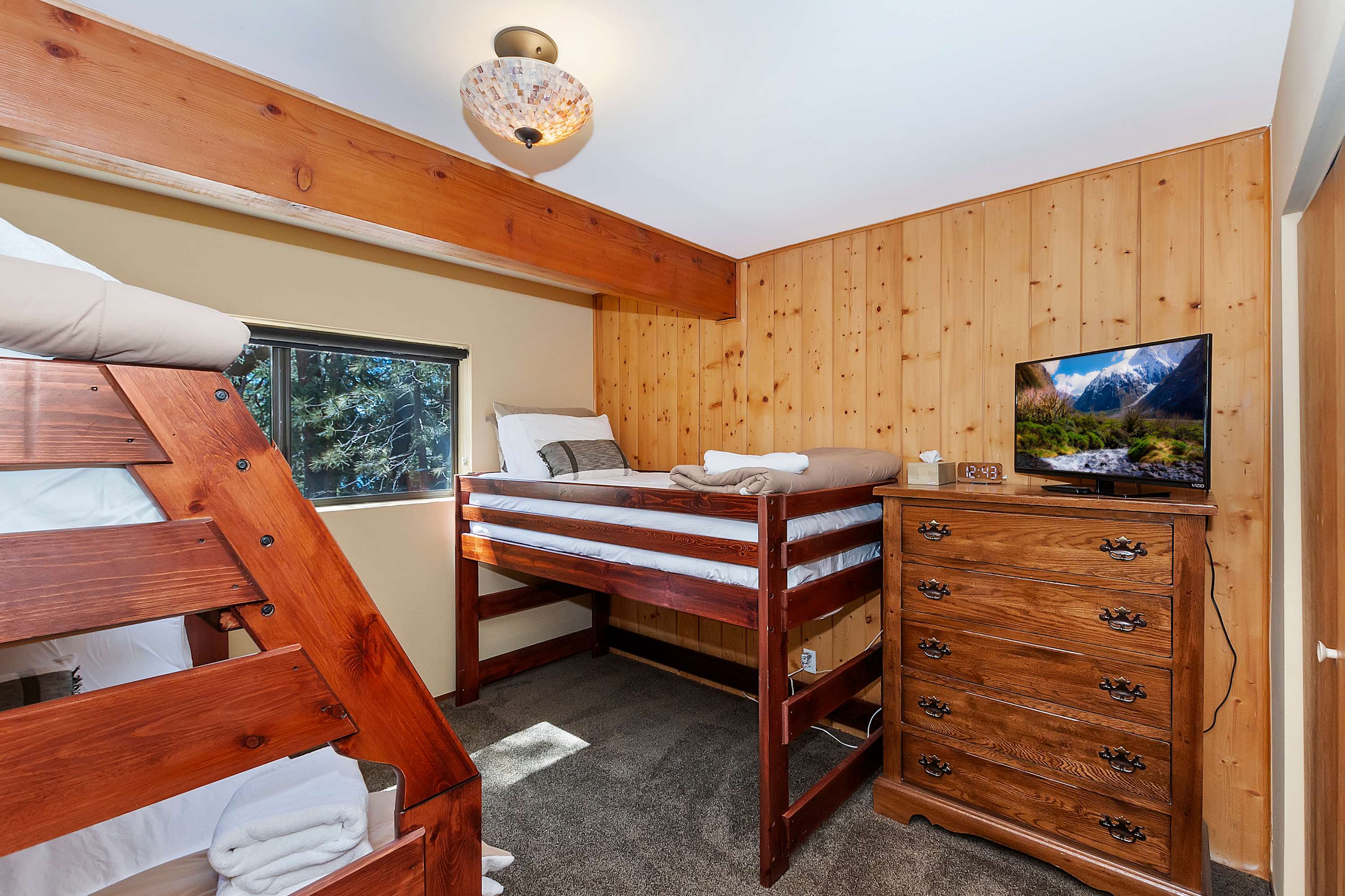 Bedroom #2 includes a twin-size bed, full-over-twin bunk beds, and a TV.