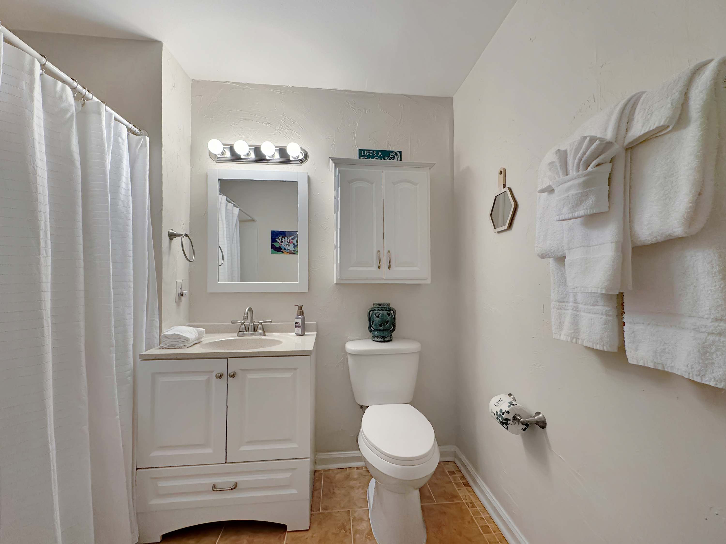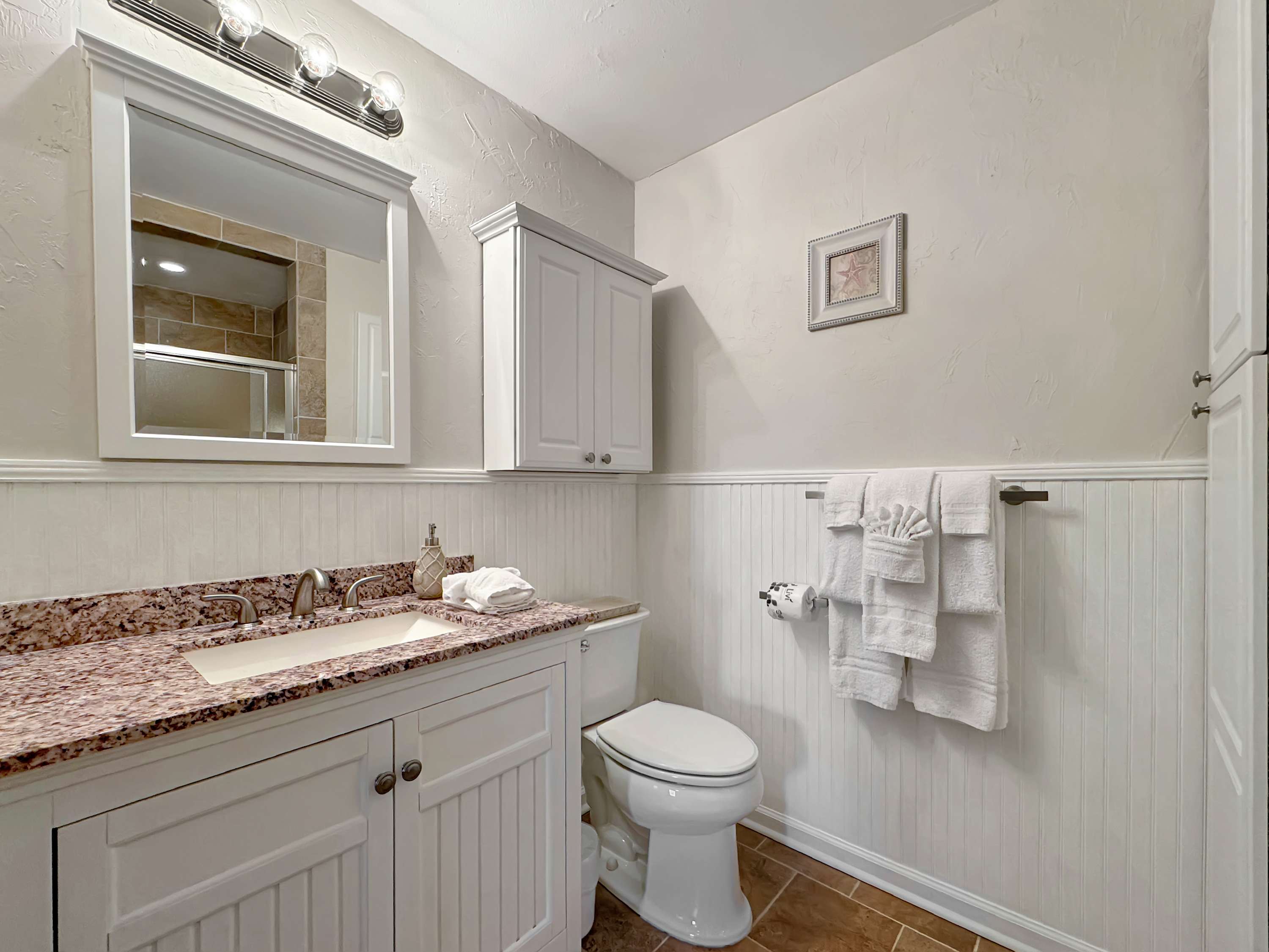 This home also includes an additional bathroom with a single vanity and a shower/tub combo.