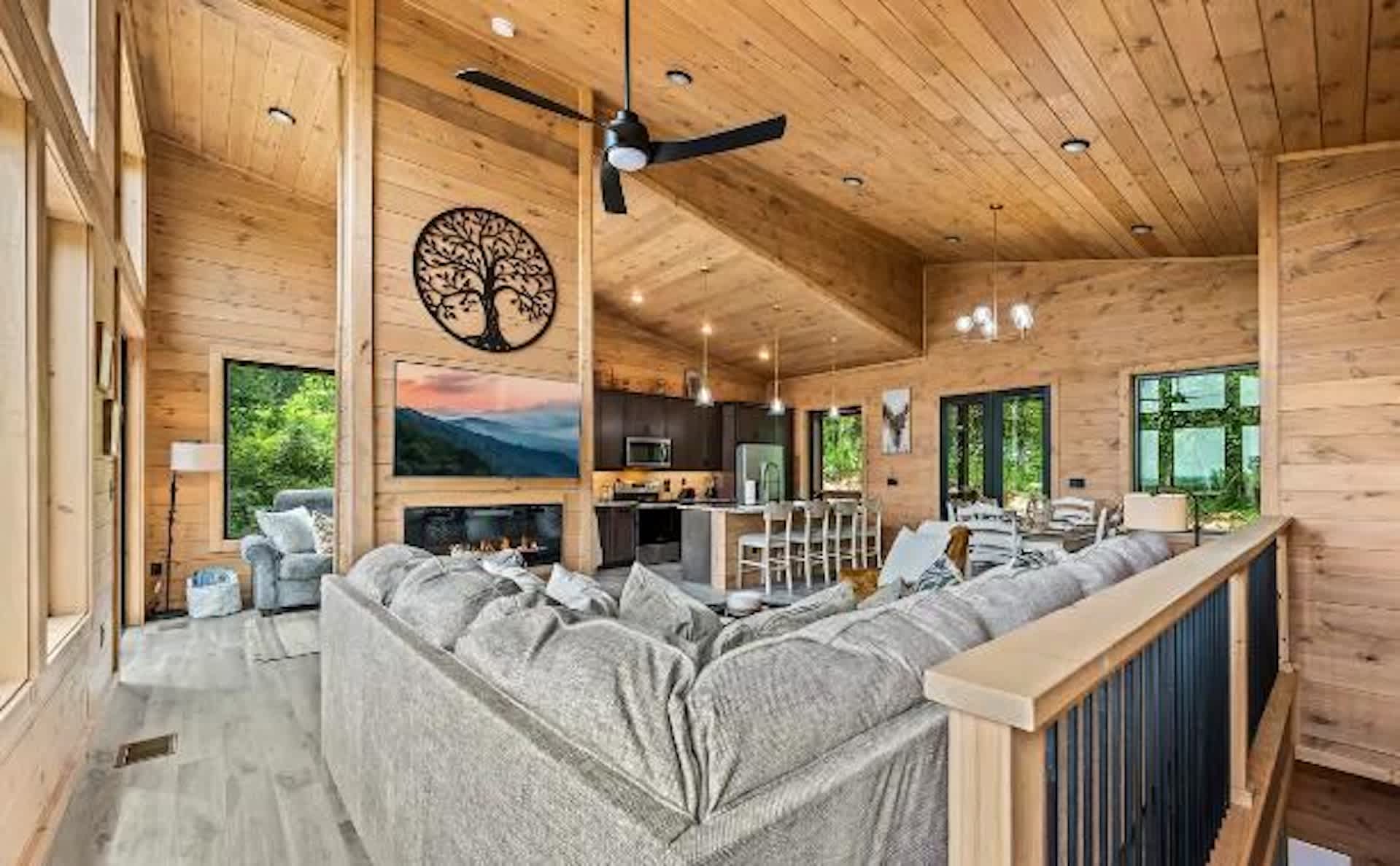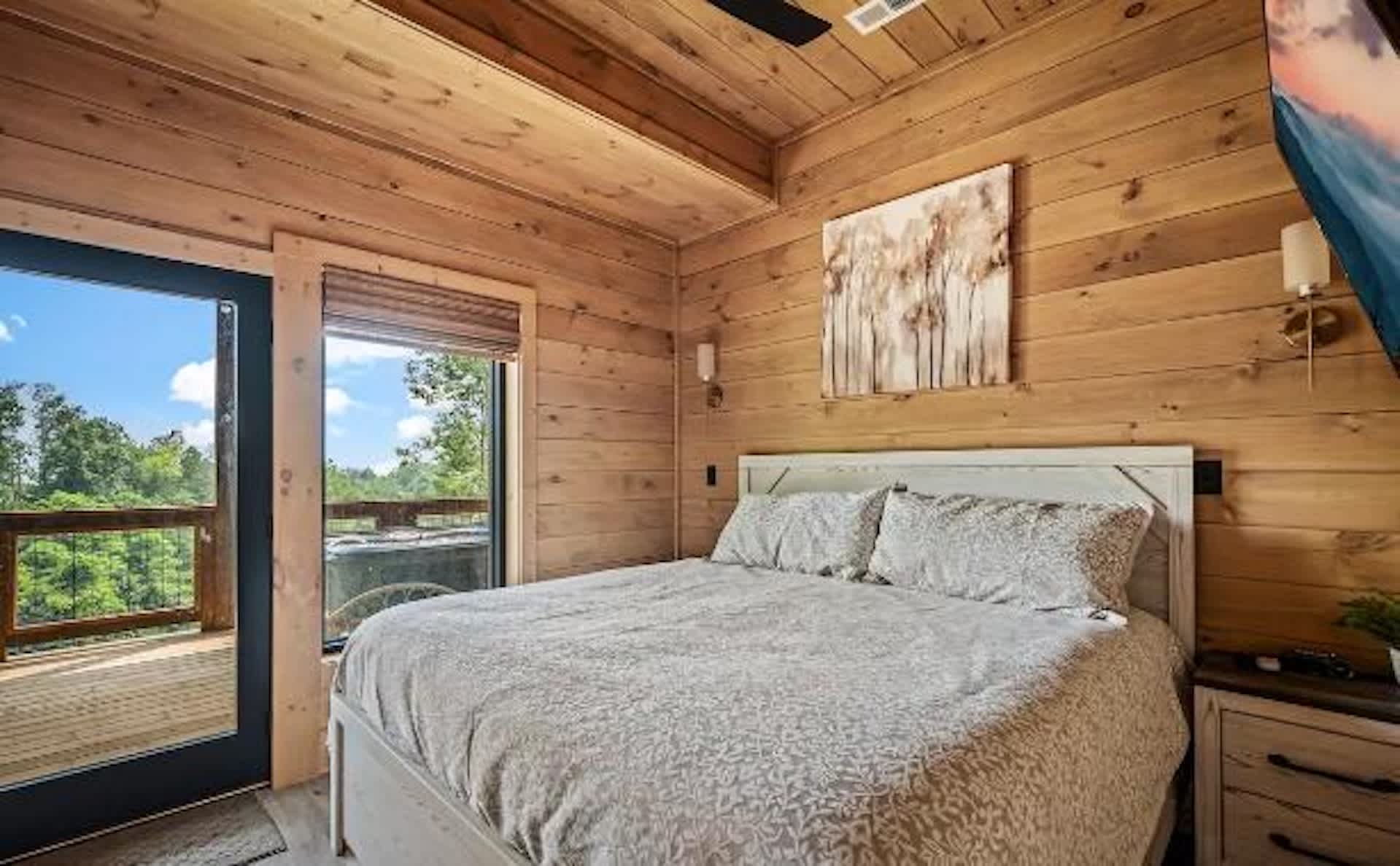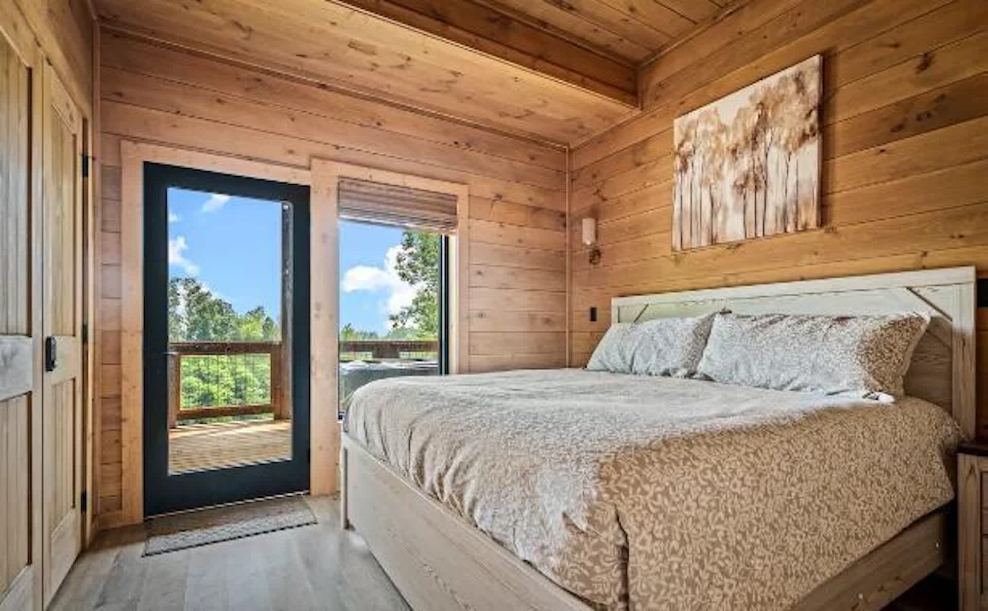 Settle into a relaxed, mountain-rural retreat designed for comfort and connection. The cabin sleeps 6 across two private king bedrooms plus a full-size sleeper sofa in the living room. Both bedrooms open to the deck, so morning coffee and fresh air are always on the menu.