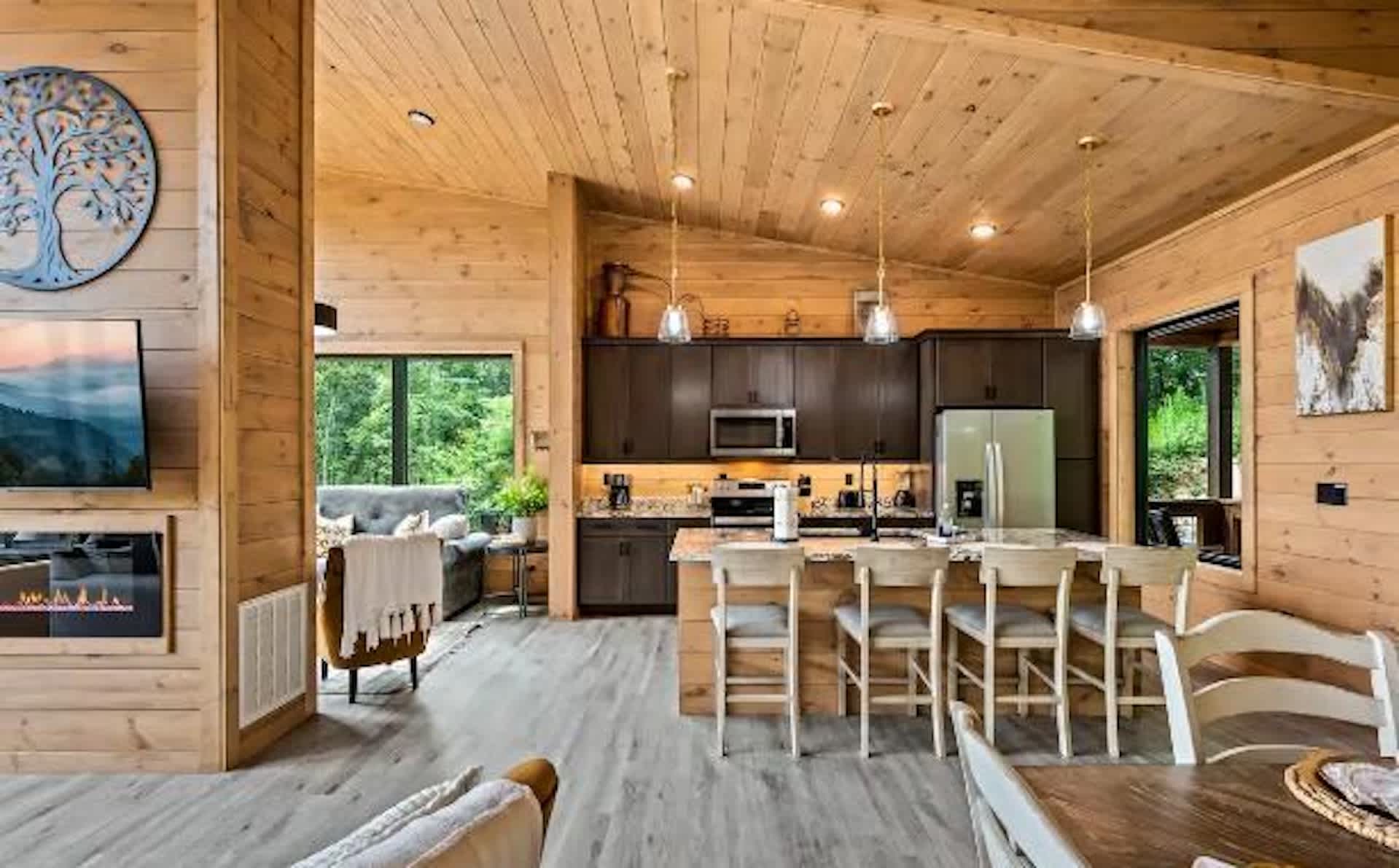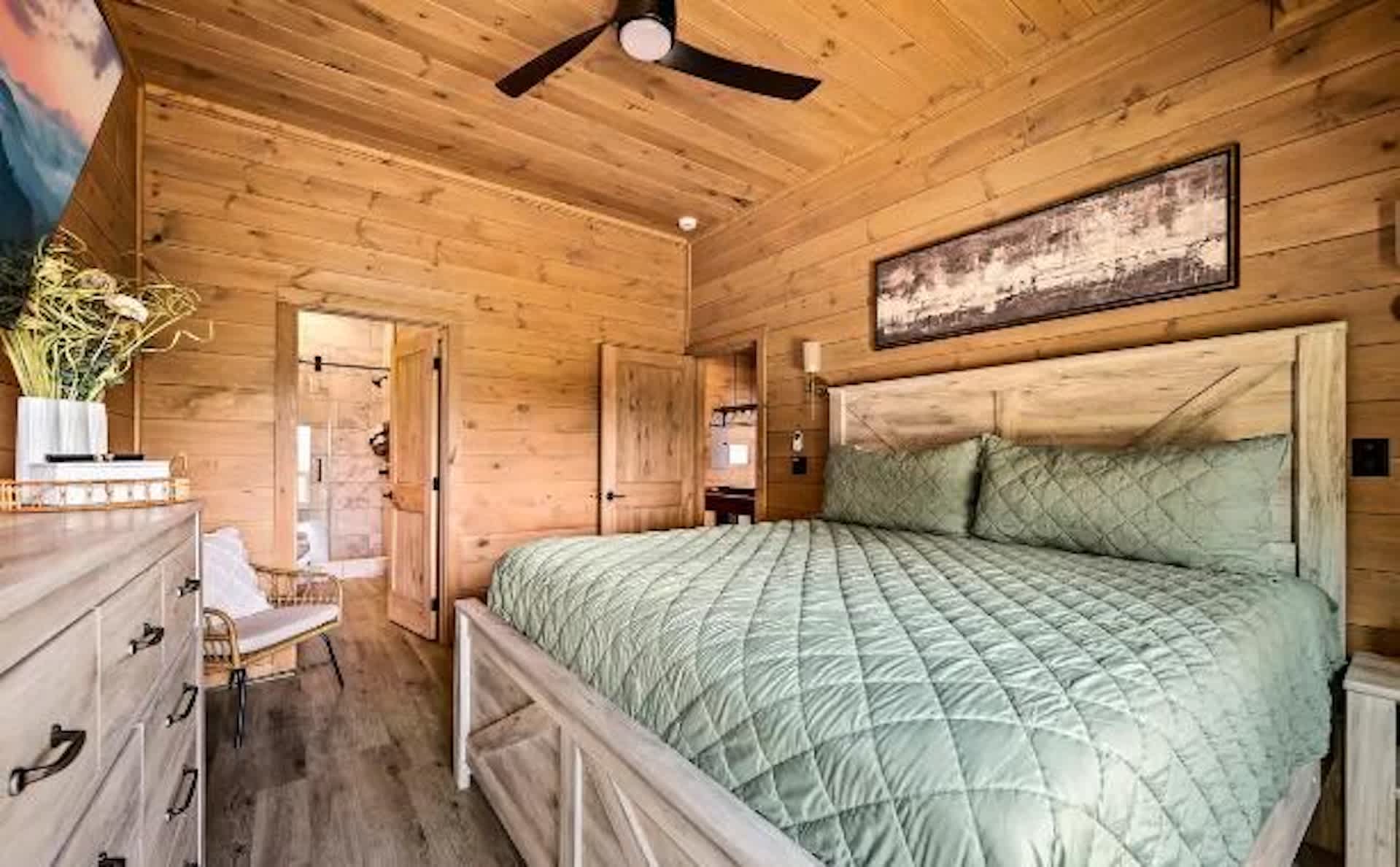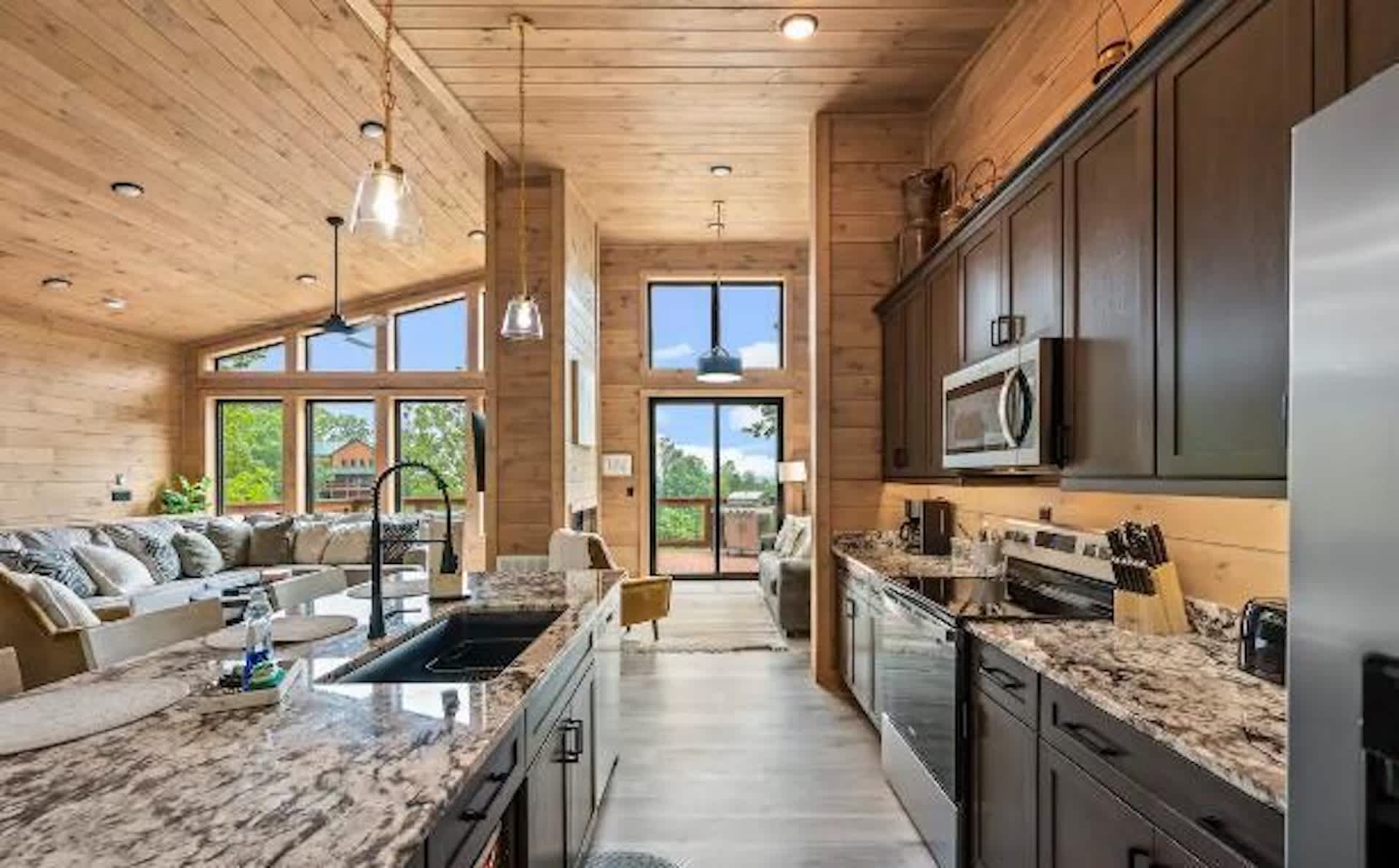 Settle into a relaxed, mountain-rural retreat designed for comfort and connection. The cabin sleeps 6 across two private king bedrooms plus a full-size sleeper sofa in the living room. Both bedrooms open to the deck, so morning coffee and fresh air are always on the menu.