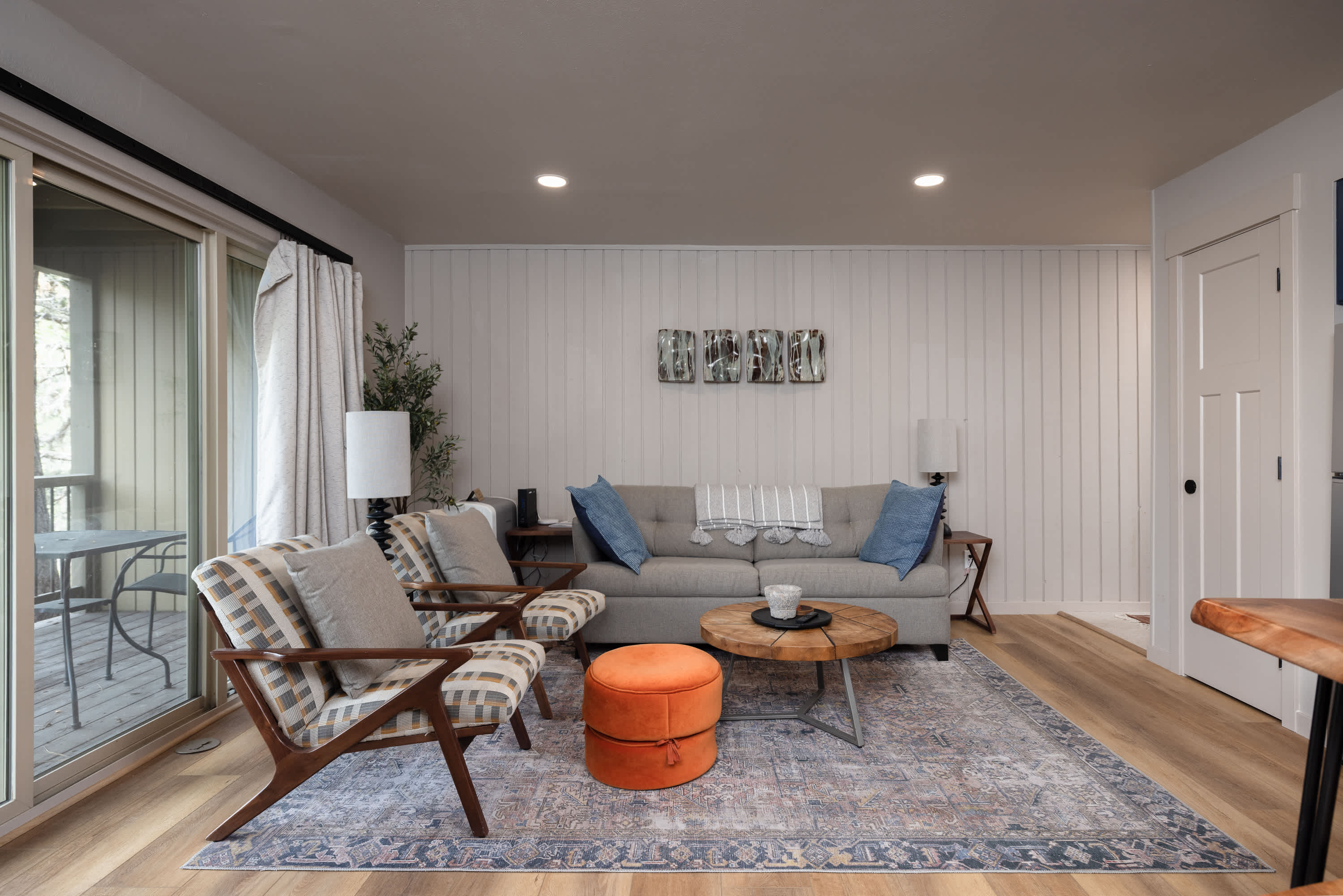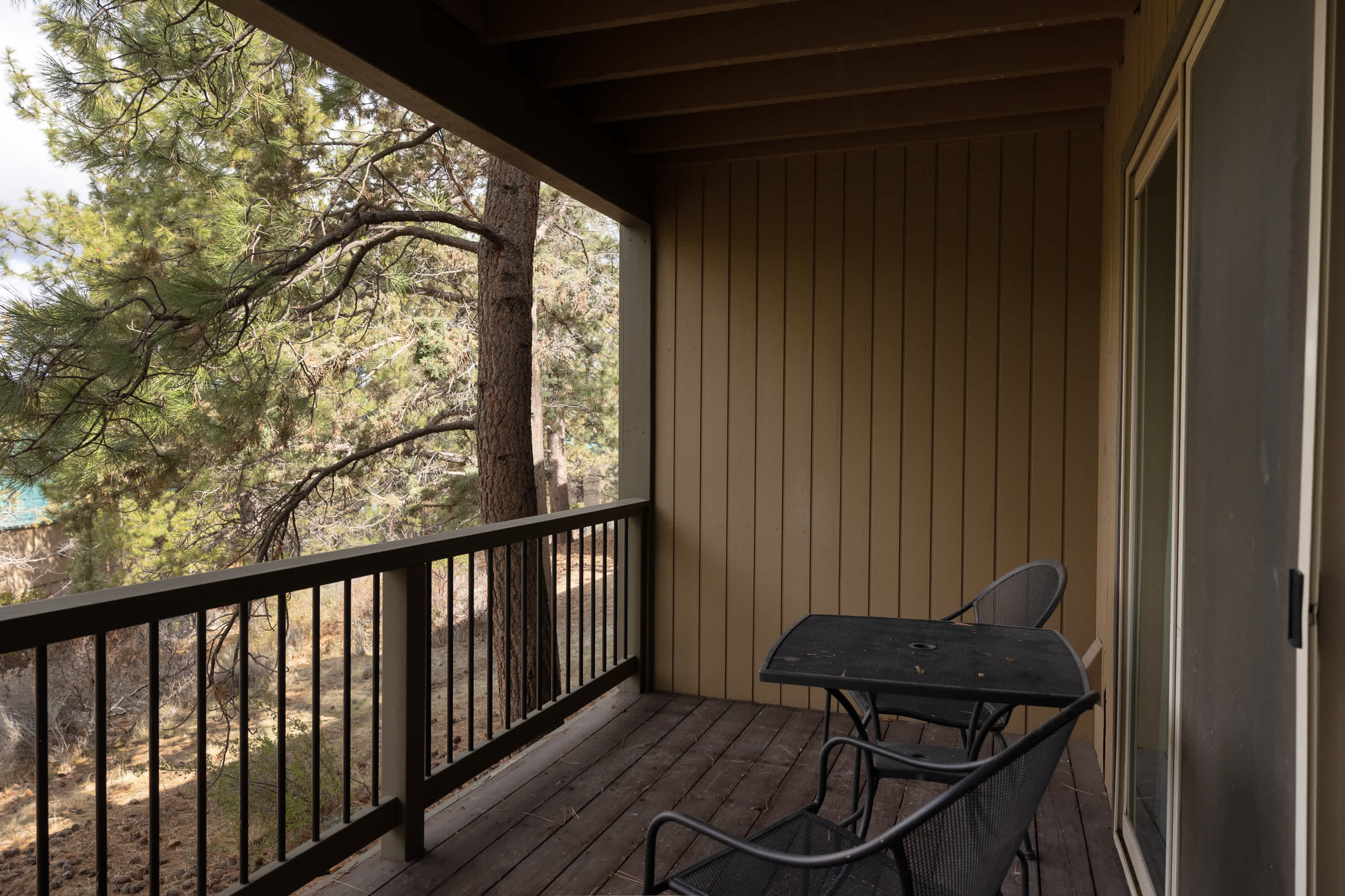 Slide open the glass doors and step onto the private balcony, where a grill and outdoor seating await. Surrounded by tall trees and fresh mountain air, it’s the perfect spot for an evening glass of wine or a starlit dinner. Your Bend getaway starts here—comfortable, quiet, and just adventurous enough.