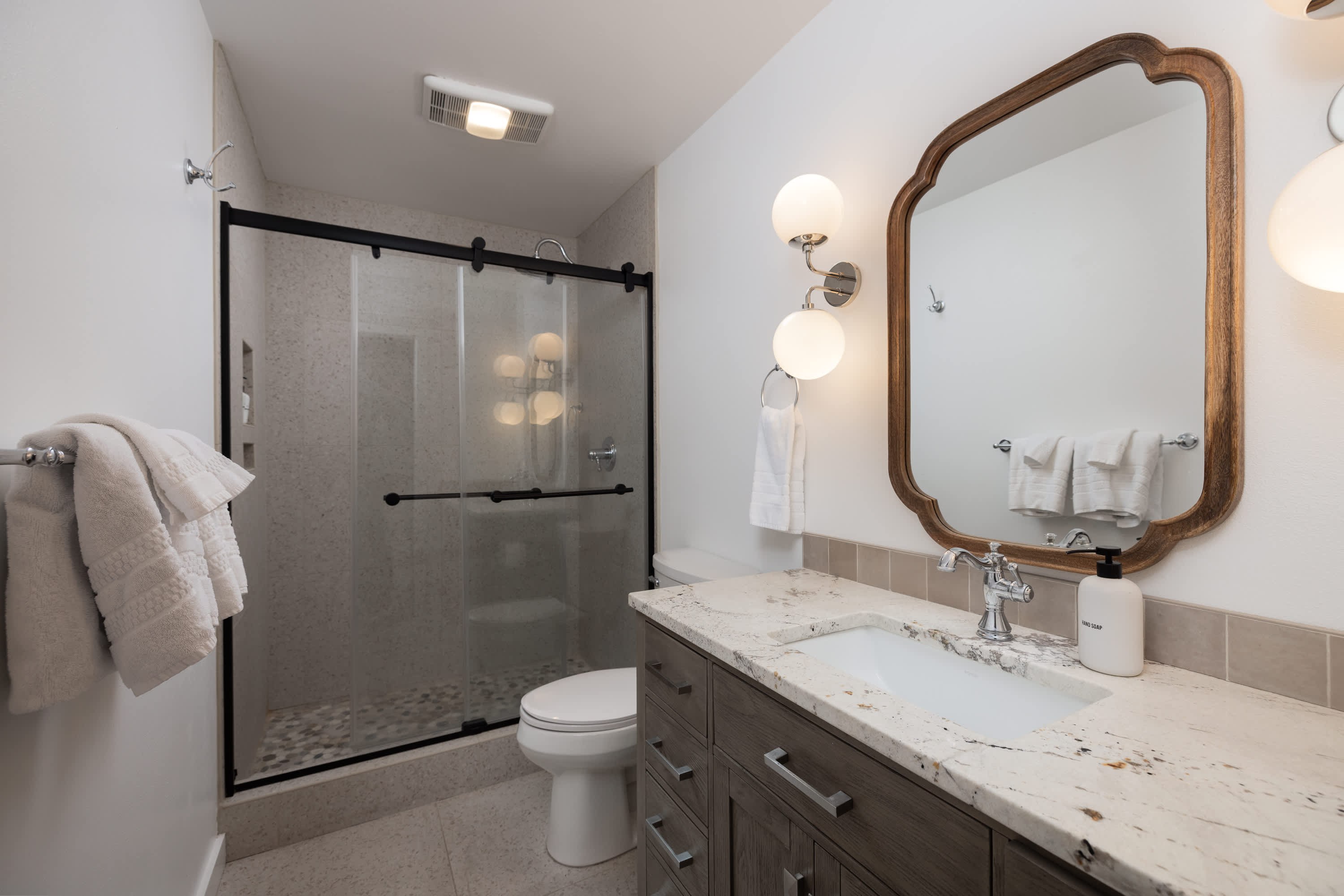 This home includes a full bathroom with a single vanity and a walk-in shower.