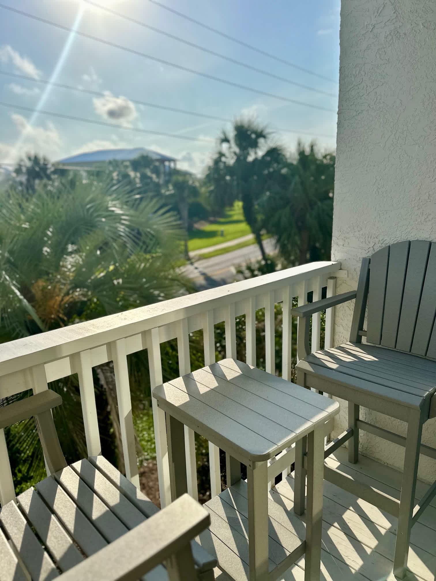 Step outside to the private balcony and enjoy a relaxed perch above the street. Outfitted with two bar‑height chairs and a matching bar‑end table, it’s the perfect spot to sip your morning coffee, unwind with an evening drink, or take in the local sights and sounds in the fresh coastal air.