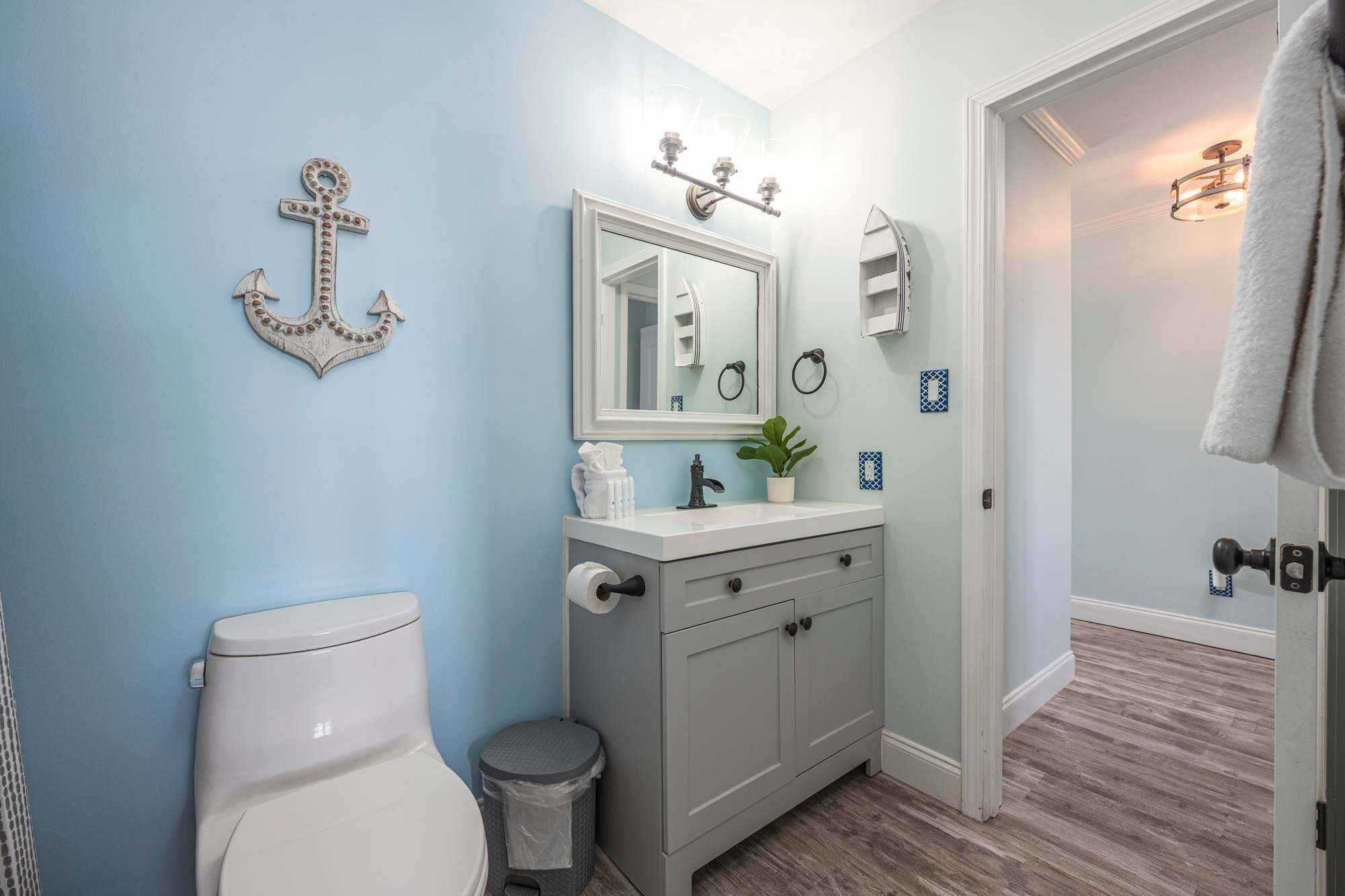 We provide a starter supply of essentials to help you settle in comfortably. In each bathroom, you’ll find travel-size body wash, body bar, shampoo, conditioner, lotion, and two rolls of toilet paper. In the kitchen, we include one sponge, one roll of paper towels, travel-size liquid dish detergent, one packet of dishwasher detergent, and two trash bags per trash can. We also provide one packet of powdered laundry detergent. For longer stays or if you need more, nearby stores make restocking easy.