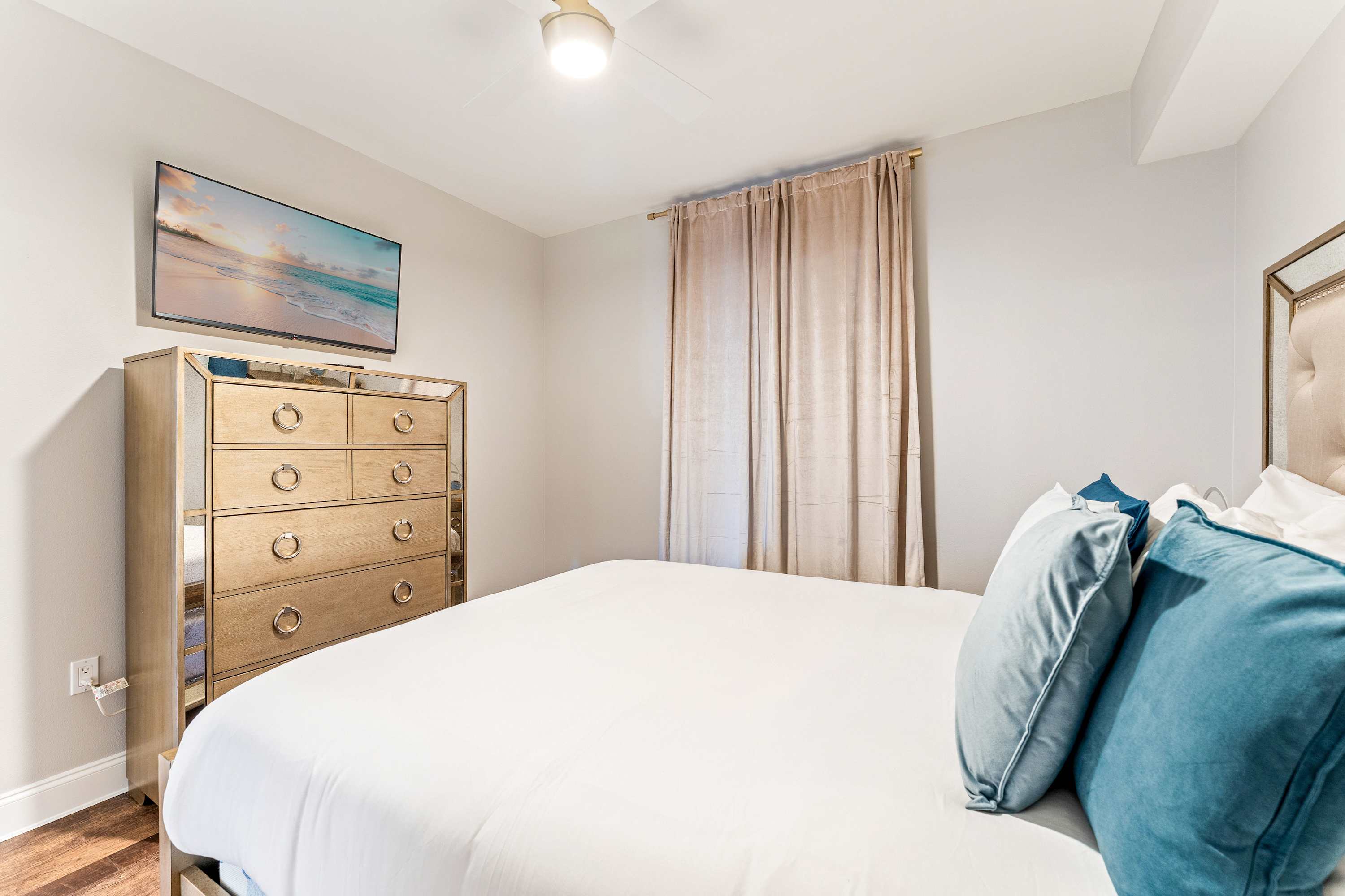 Bedroom #2 includes a queen size bed and a smart TV.