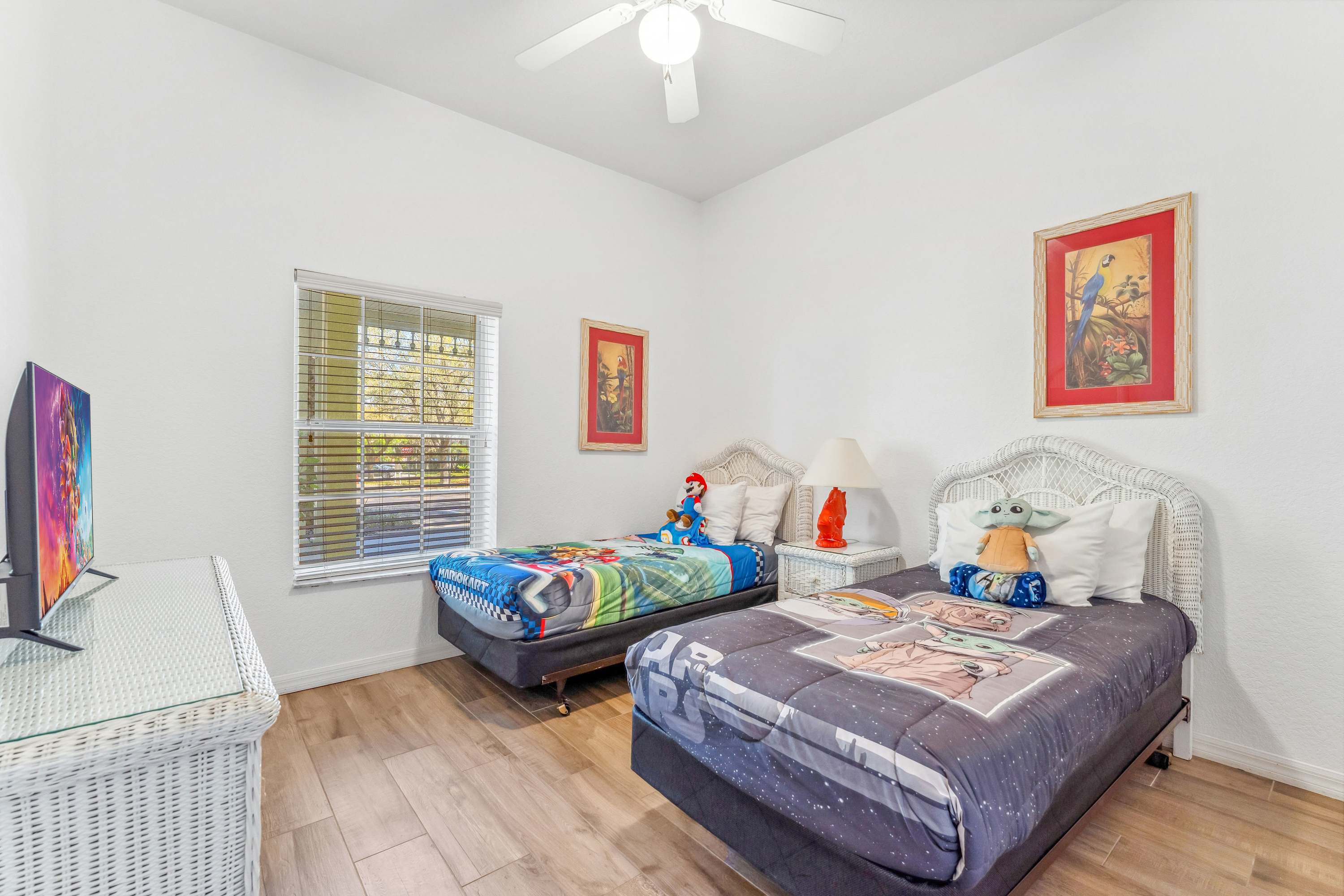 Bedroom #1 includes 2 twin size beds and a smart TV.