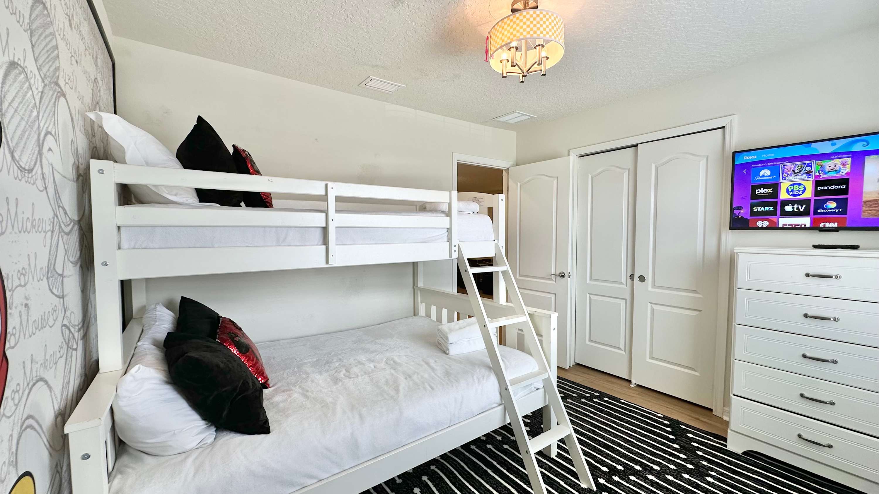 Bedroom #4 includes a full size bed, a twin size bed, and a smart TV.