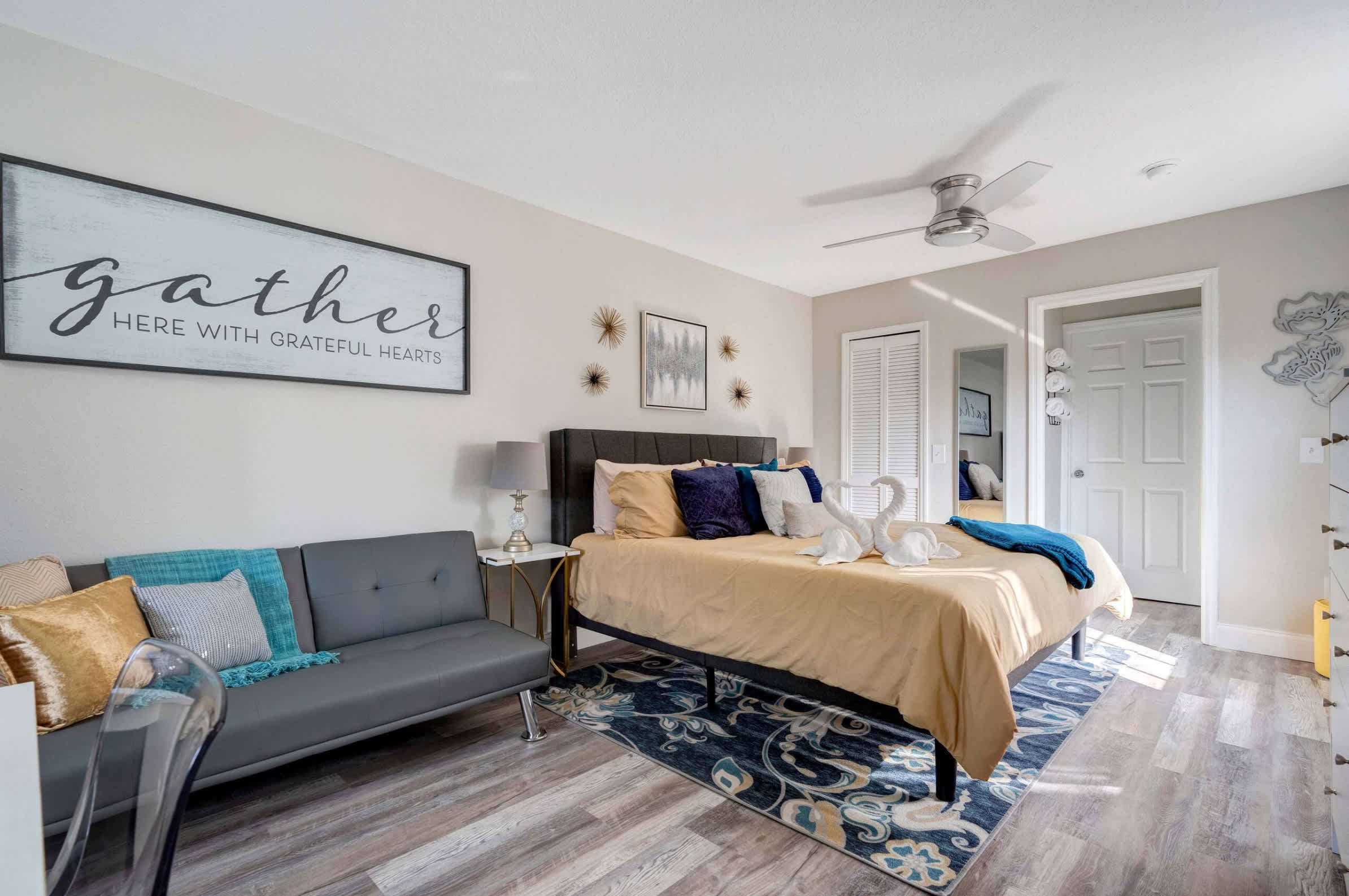 Part of the Island Club West community, Donald’s Luxury Retreat is a studio home perfect for a couple’s getaway. This private unit is close to scenic trails, golf courses, and popular theme parks for those days you need a little bit of a thrill.