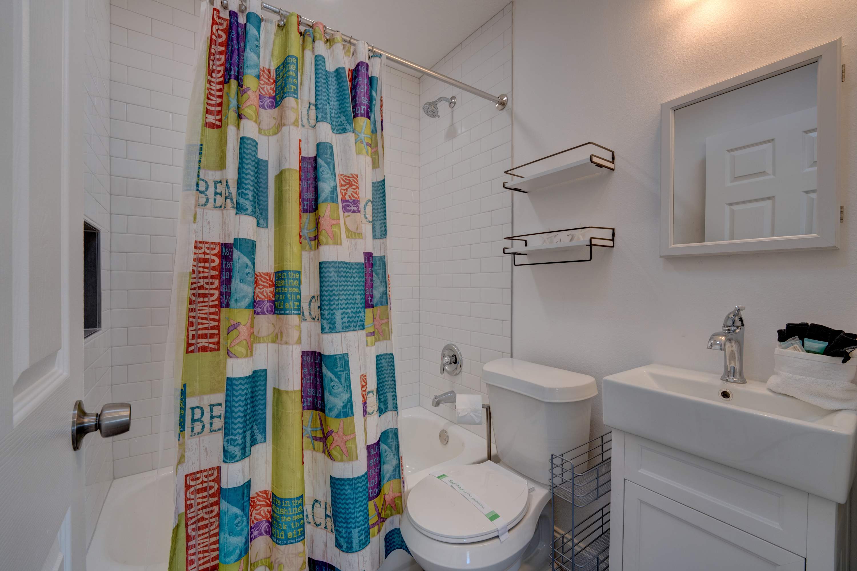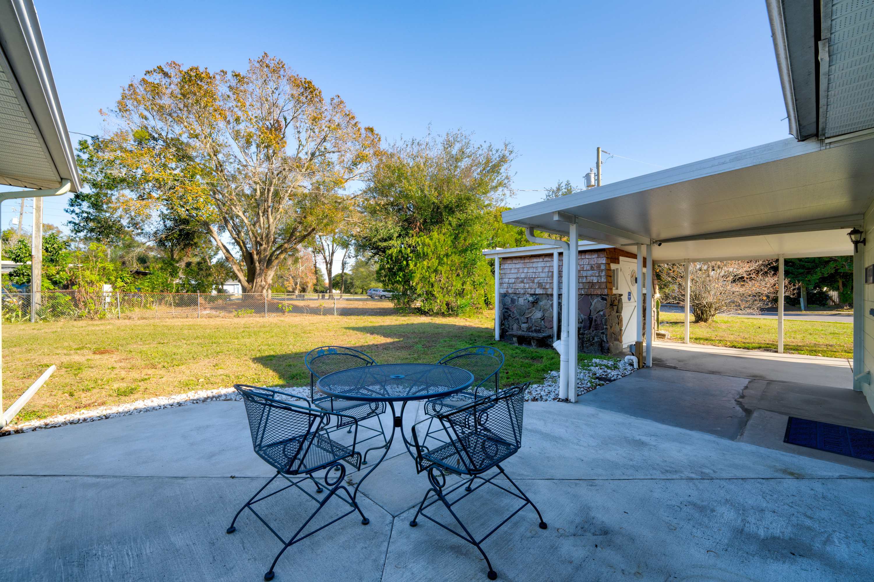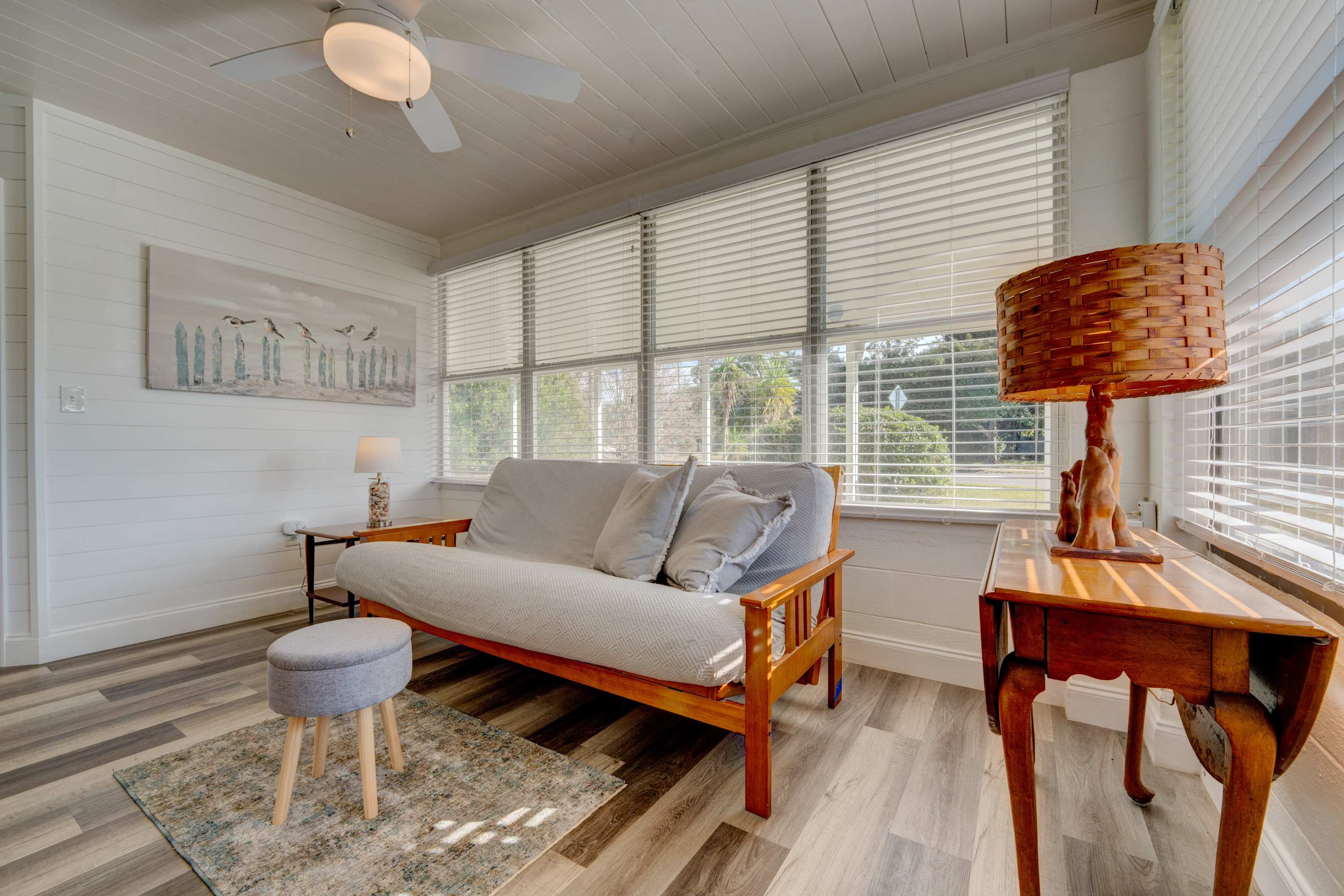 At the end of busy days out and about, retire to the home’s southern charm interior to relax and refresh. Sink into the plush sofas while you stream episodes of all your favorite shows on the smart TV. Local cable TV is accessible through the Spectrum app on all TVs. For those who need to keep up with work during your time away, check out the dedicated workspace in bedroom #2 for a private place to check those pesky emails or take a quick video call if needed. Afterward, head out to the large backyard to sip on evening cocktails or plan on a family game night on the patio with seating for four.