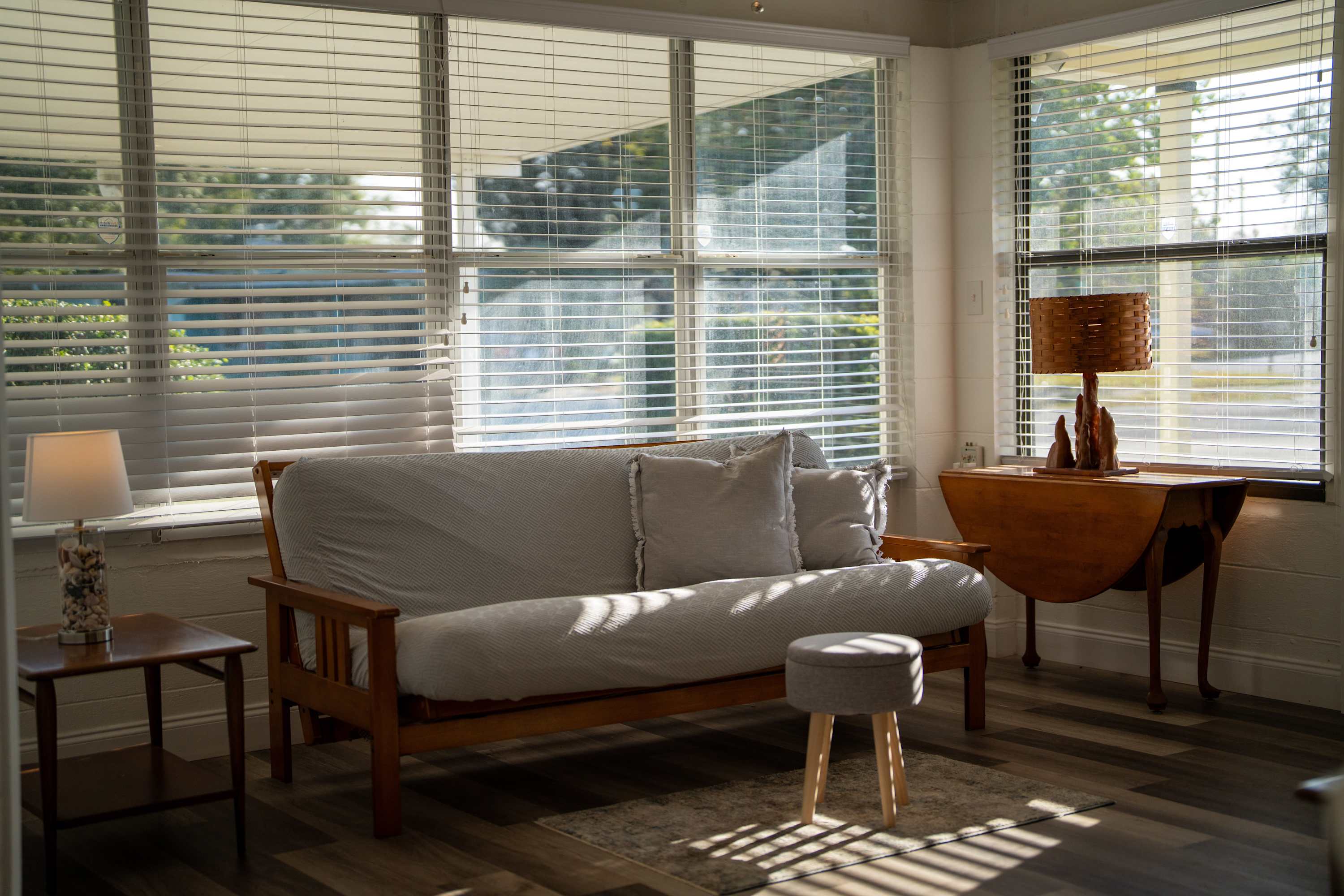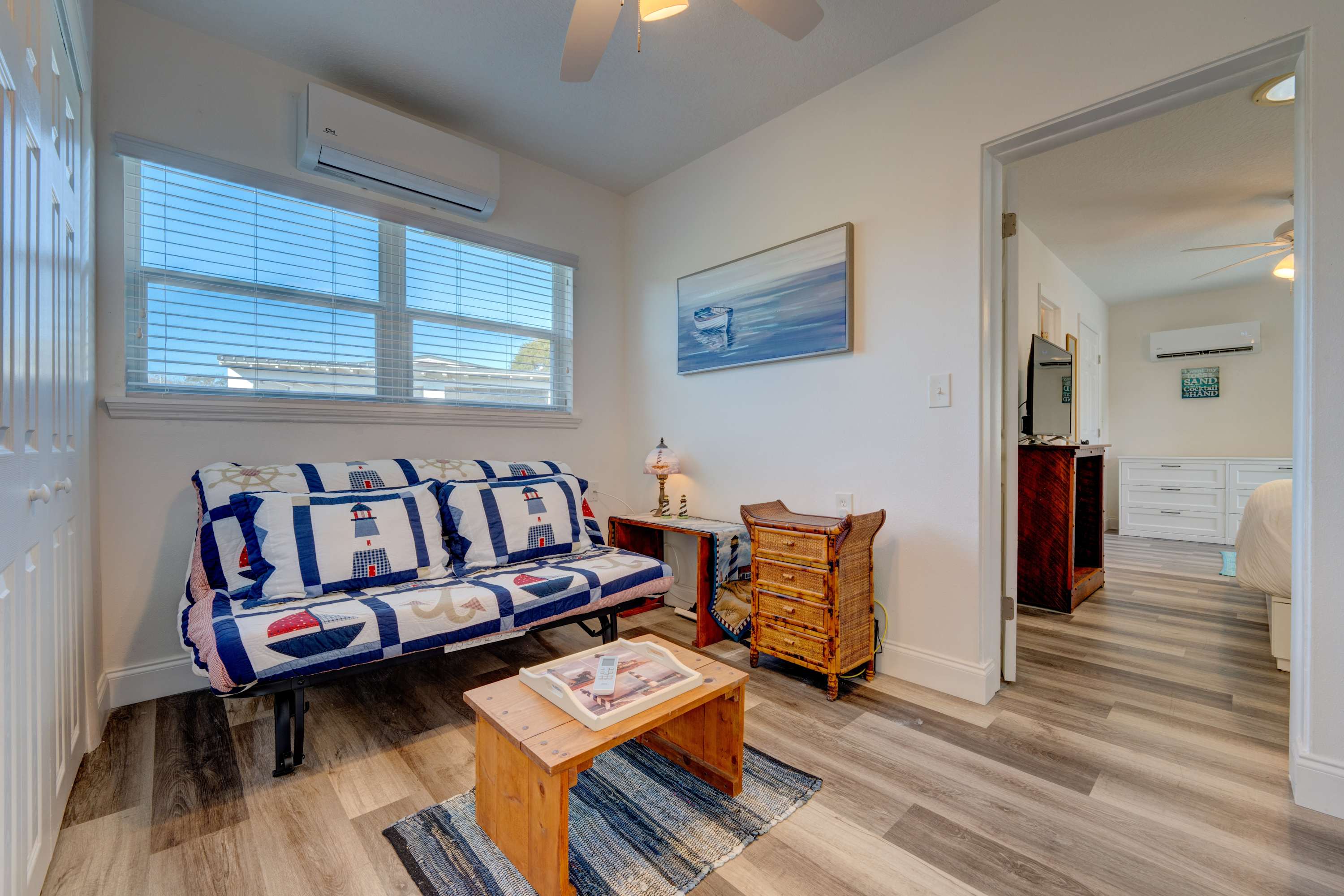Please note that Bedroom #2, which includes a full-size futon, serves as a pass-through to the master bedroom and is not entirely private.