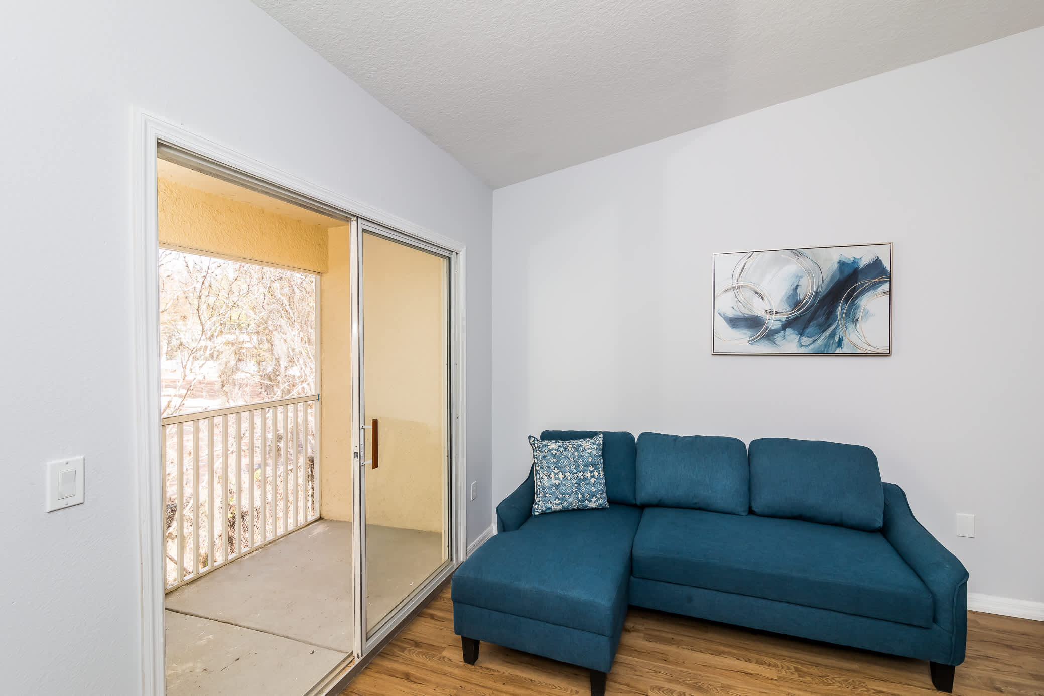 The updated condo invites you to an open living space which offers natural light, cable TV, and balcony access. The balcony is screened in so you can open the sliding glass door for the refreshing breezes and birds chirping and invite the “Florida life” into the main living area.