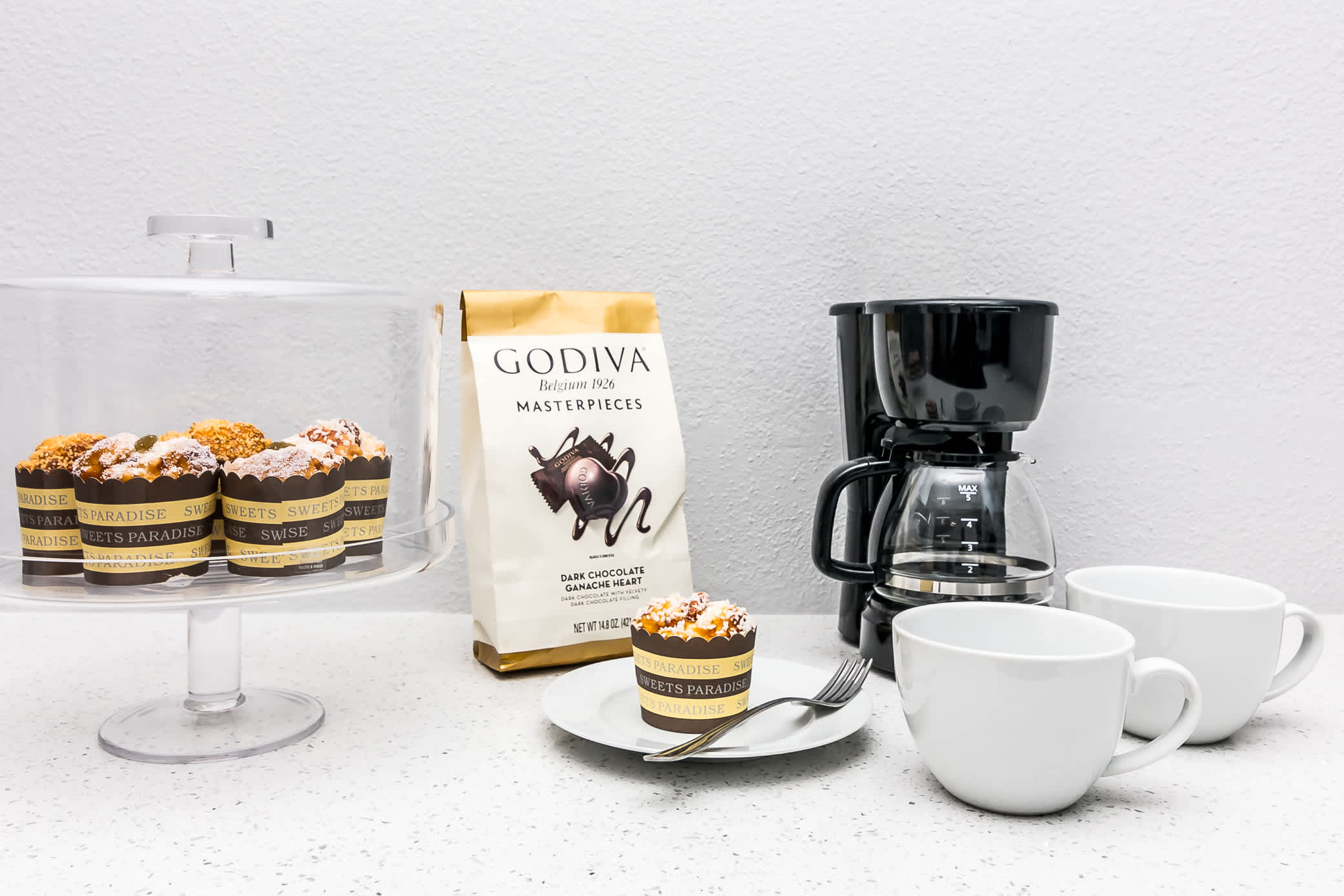 Back inside, the kitchen is equipped with a full suite of new stainless-steel appliances and everything you need to either pack some lunches for a day of adventure or whip-up a multi-course meal from home. Additional appliances like a blender, toaster and coffee maker are available for your convenience. Steps away, enjoy formal dining together at the table for 6.