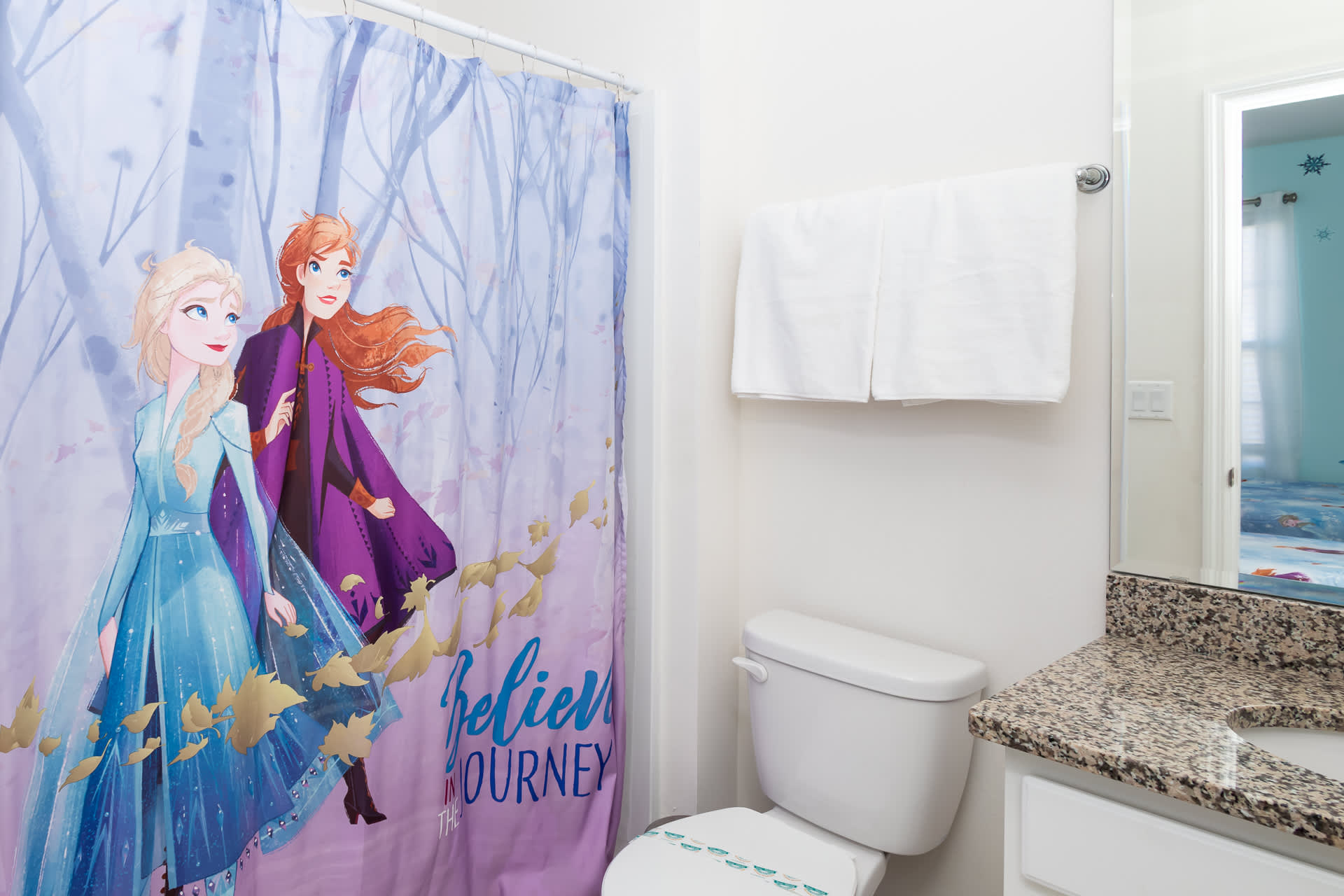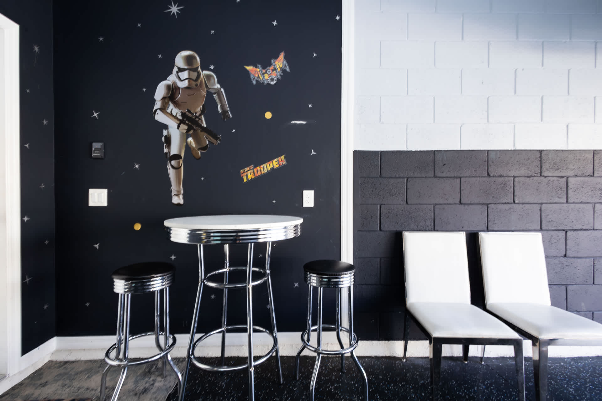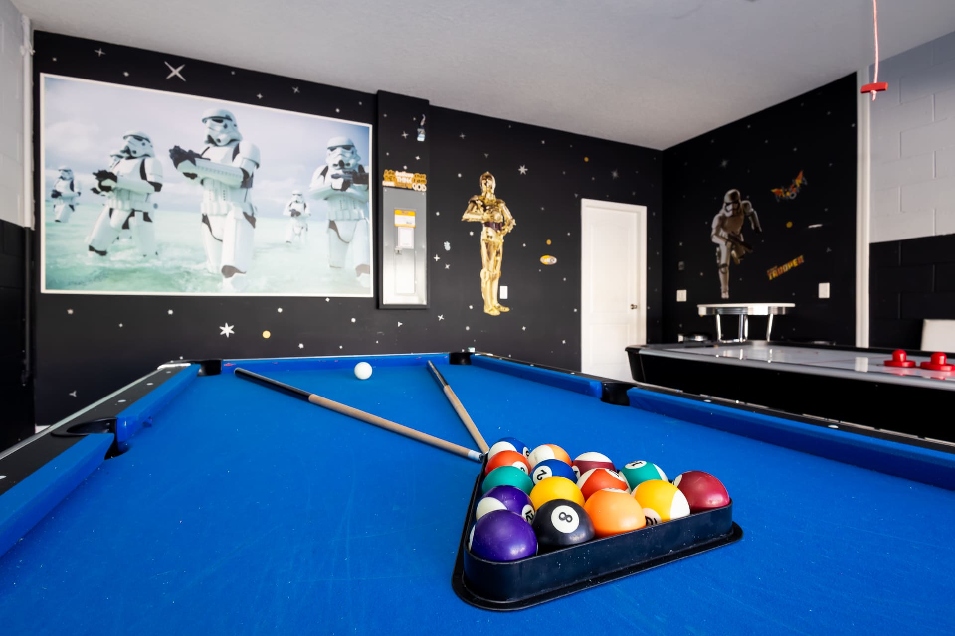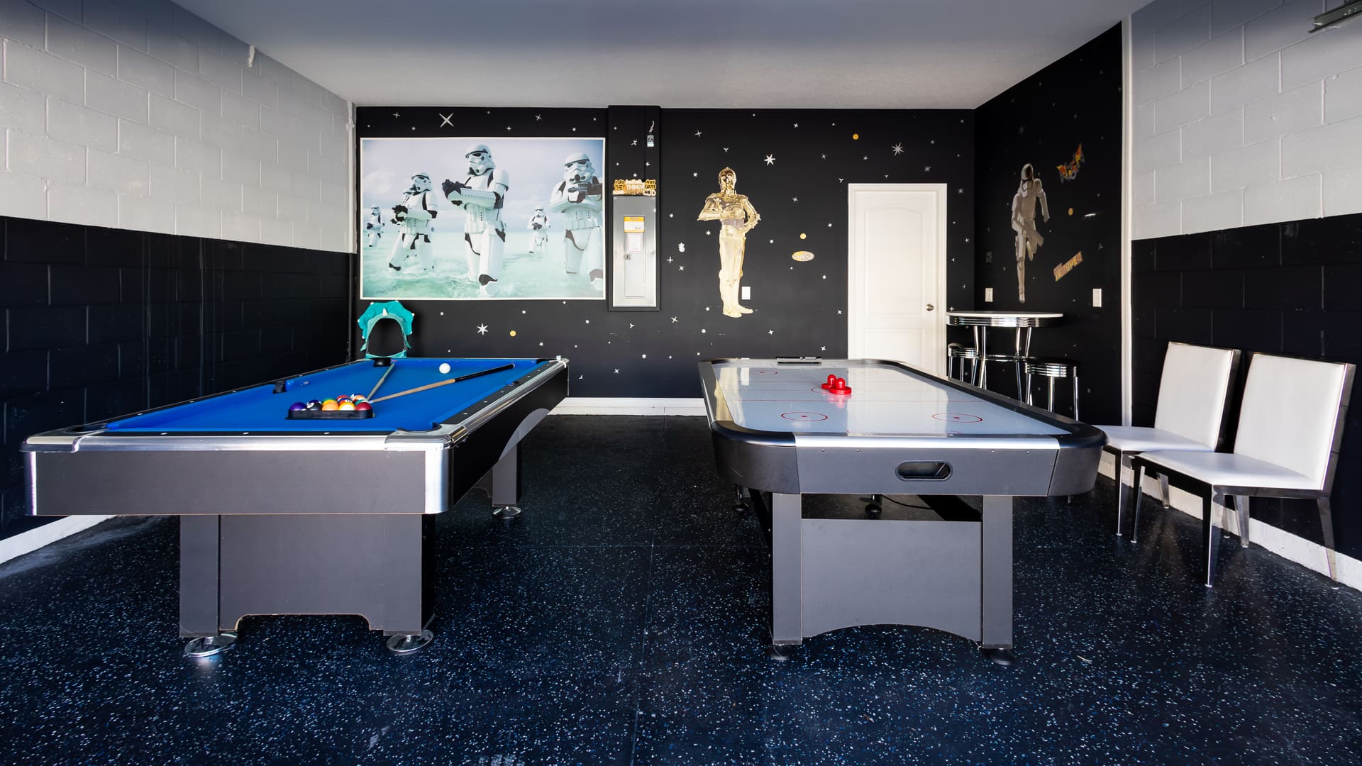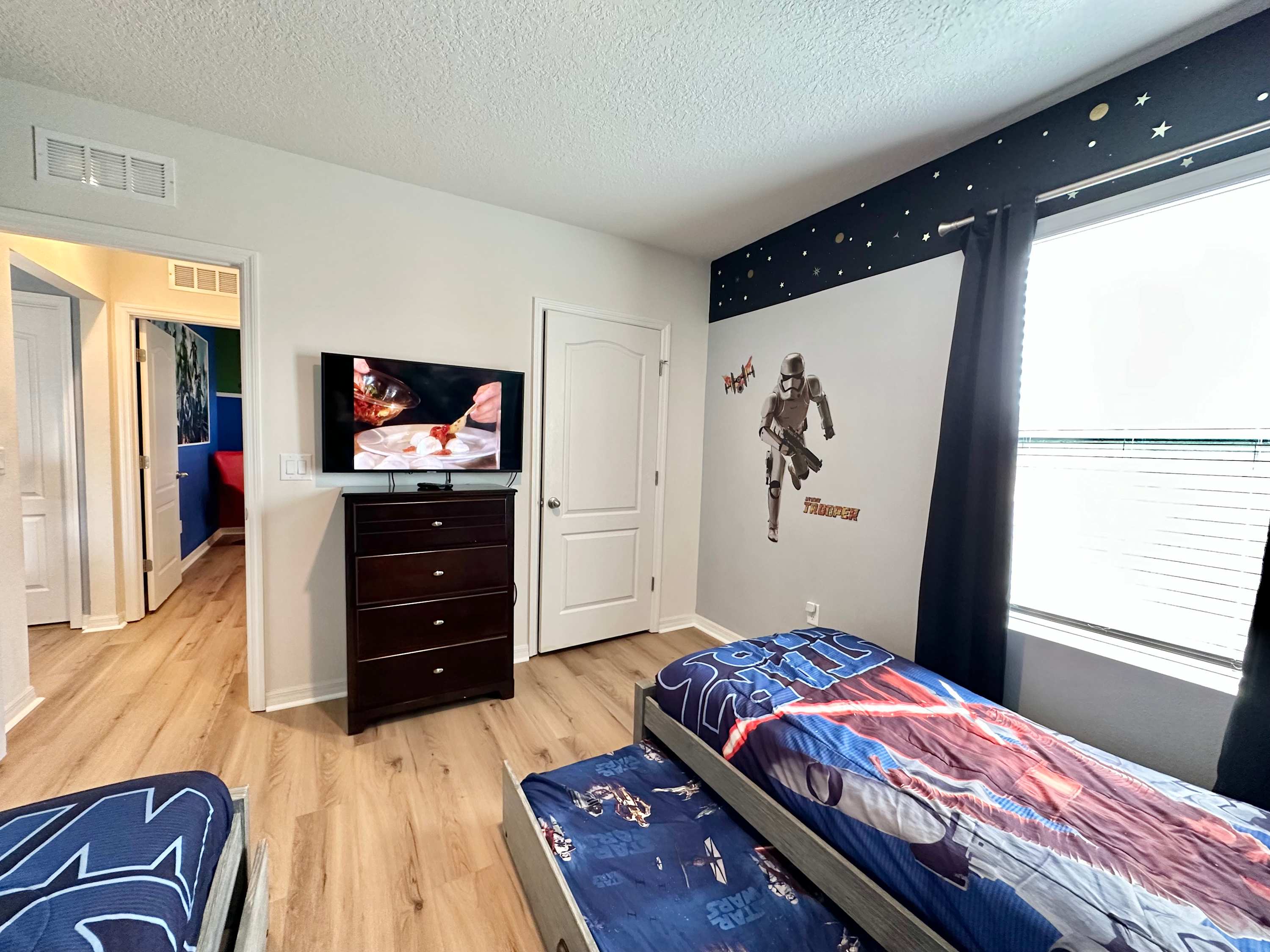 This home sleeps up to 13 guests between 5 private bedrooms. Each bedroom is thoughtfully themed, with the enchanting world of Frozen, the thrilling universe of Marvel, and the epic adventure of Star Wars brought to life through creative decor and attention to detail.