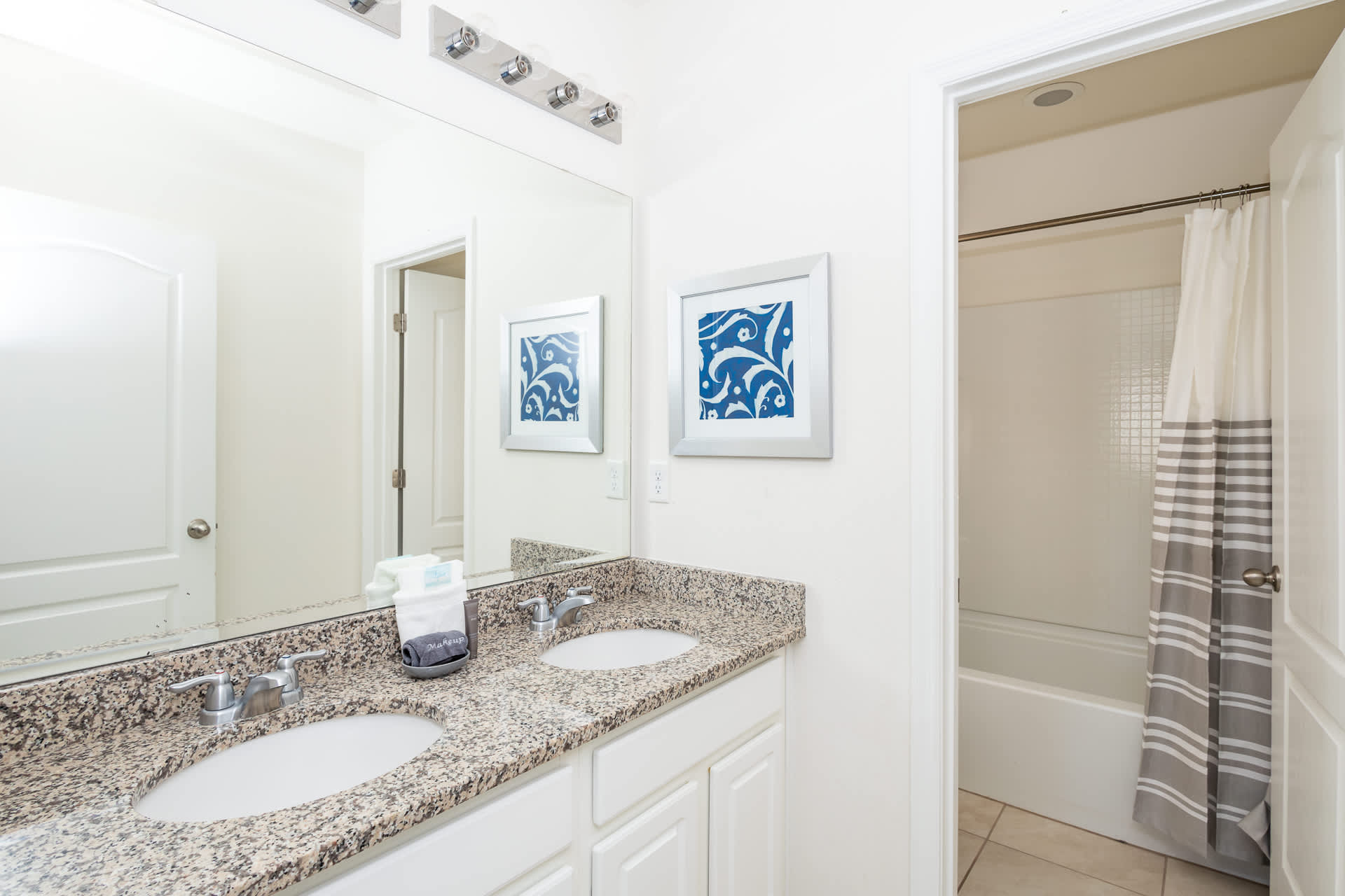 The home also includes a half bathroom as well as an additional full guest bathroom with a dual vanity and shower/tub combo