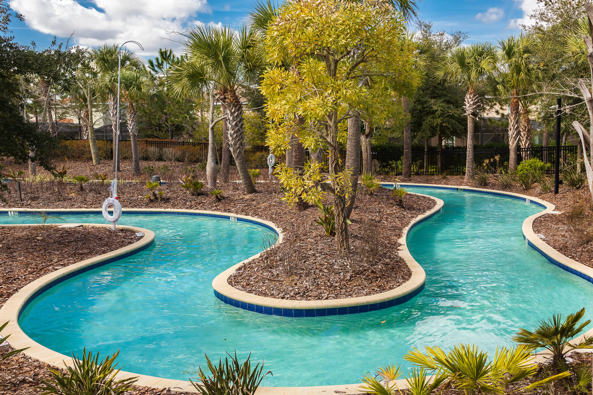 At “The Grand Clubhouse,” guests will enjoy a host of onsite amenities such as the resort-style pool with water slide, poolside cabanas, state-of-the-art fitness room, tennis and volleyball courts, children’s playground, and recreational area. The kids will enjoy floating along the lazy river, while parents can enjoy a soak in the hot tub while sipping on frozen cocktails from the poolside café.