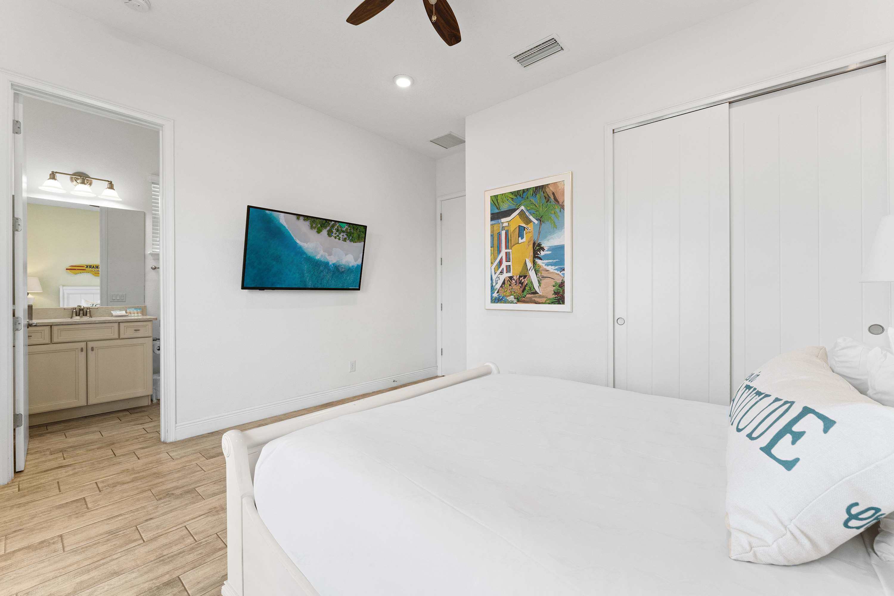 Bedroom #2 includes a queen size bed and smart TV.
