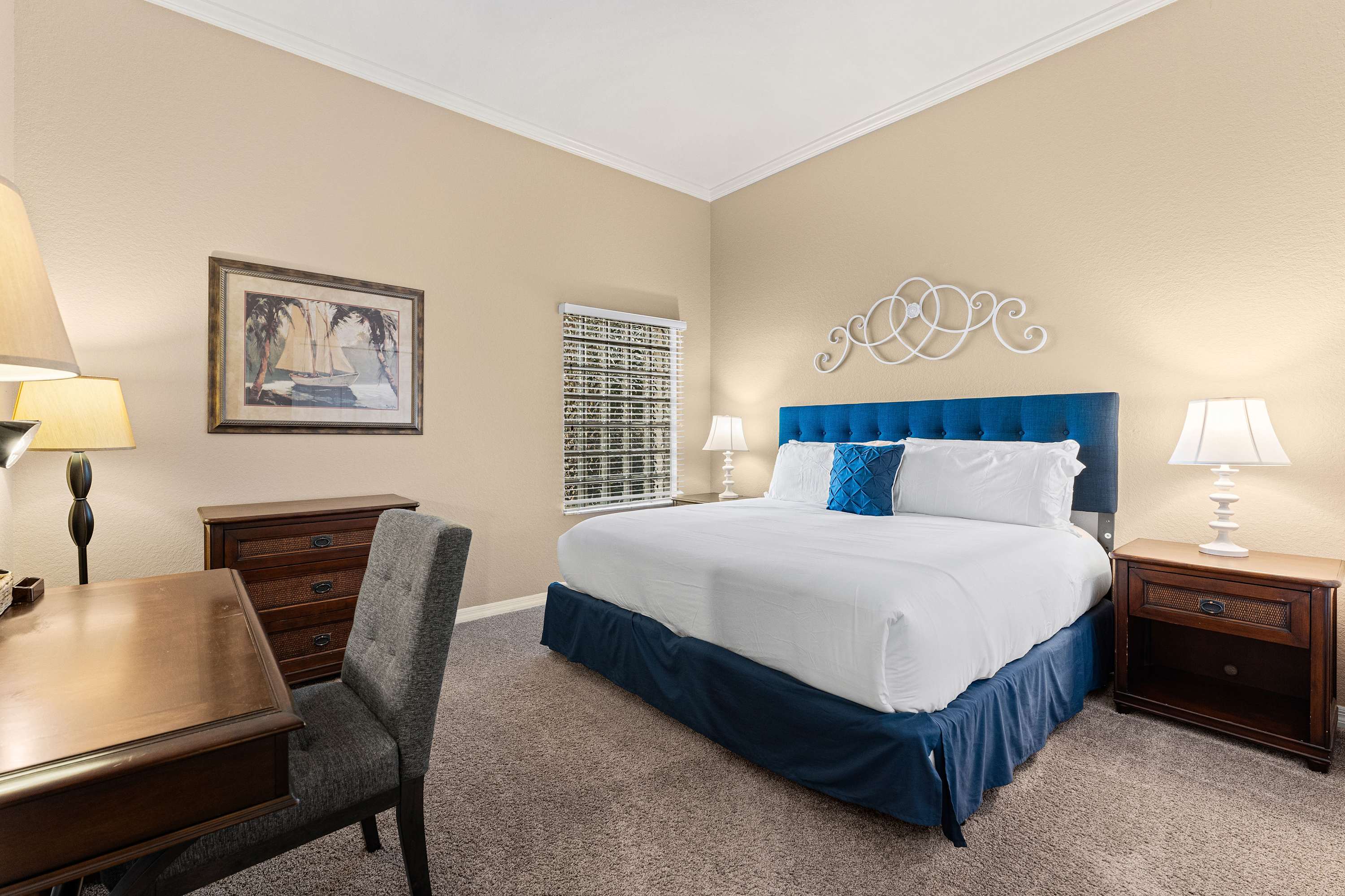 Bedroom #3 includes a king size bed and dedicated workspace.