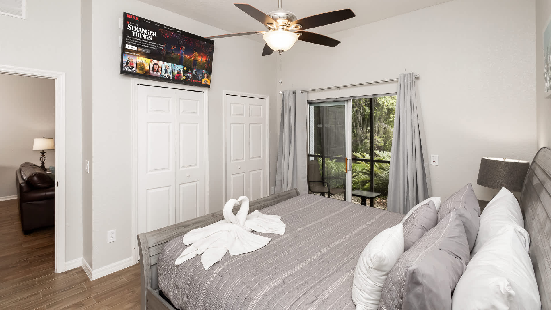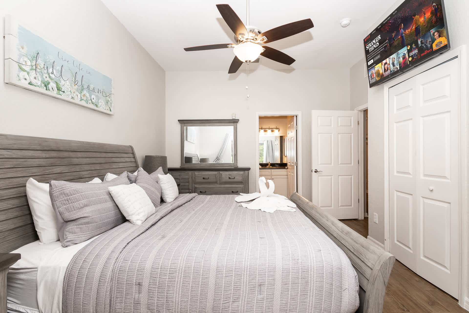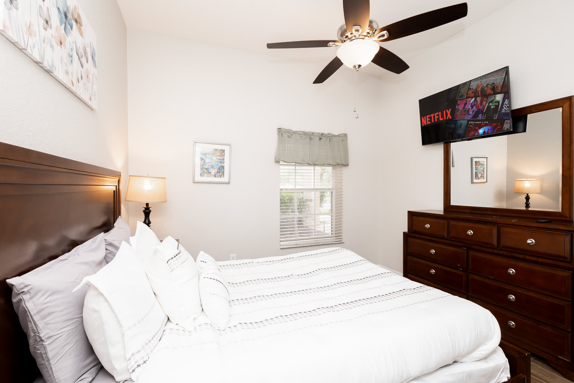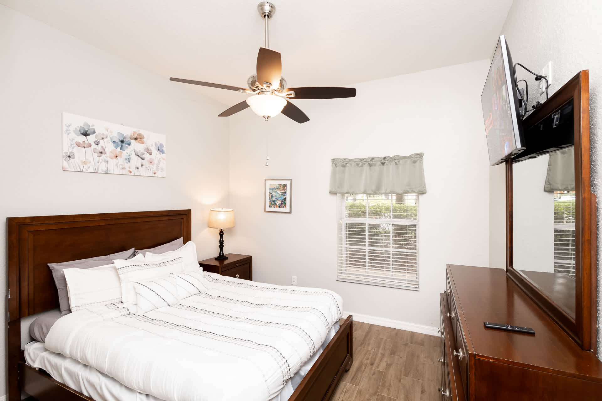 Bedroom #1 includes a queen size bed and smart TV.