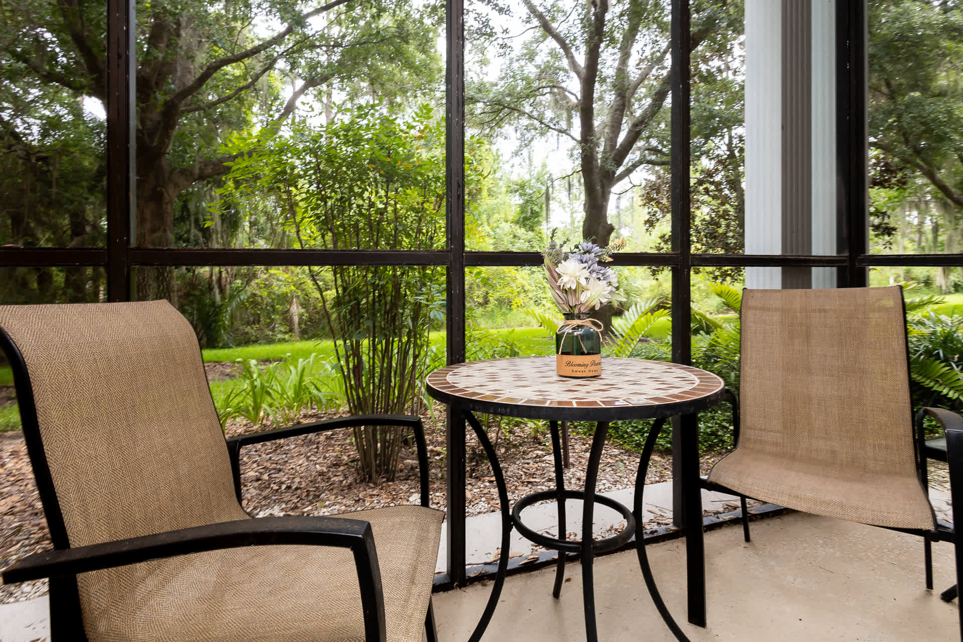 Ideal for families, this condo supplies everything you need for a stress-free getaway including a pack n’ play, highchair, stroller, and iron with ironing board. The convenience of the home’s proximity to the pool makes popping in and out for meals, naps, or other caretaking a literal breeze. With no neighbors to the rear of the home, privacy is also in abundance as you relax on the shaded, screened-in porch with your fresh cup of morning coffee or an evening cocktail, soaking in the views of the lush surrounding landscape.