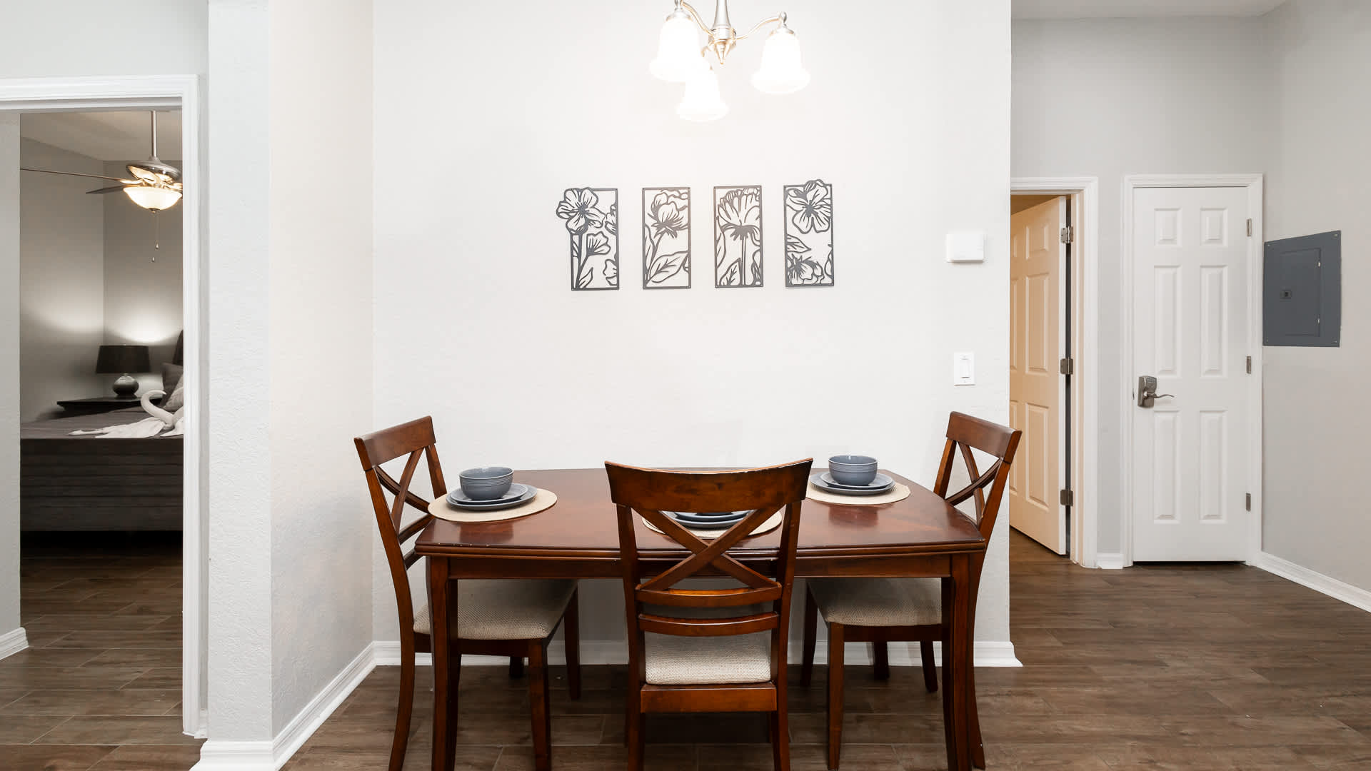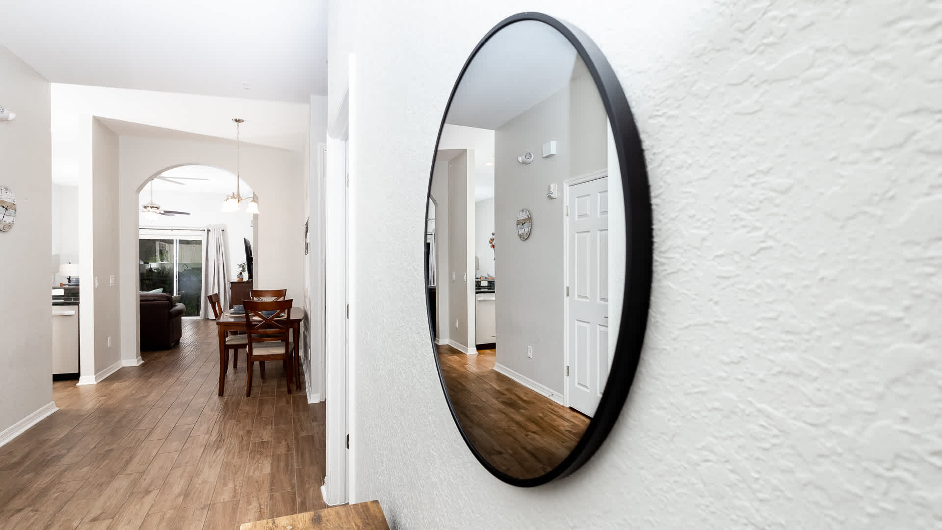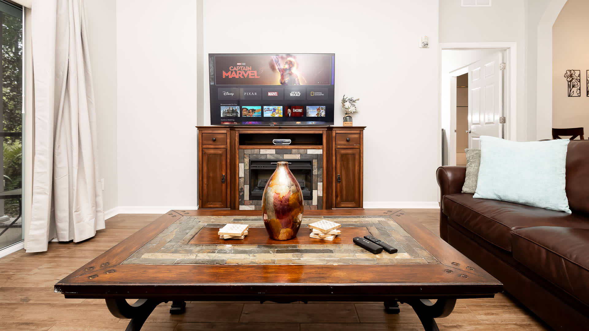 Inside this stunning home, fully updated spaces welcome you in with open arms, expertly curated with comfortable, contemporary furnishings. Sink into plush leather living room sofa seating while you queue up that movie you’ve been saving or binge episodes of your favorite shows on the smart TV. Steps away, the stylish kitchen showcases brand-new stainless steel appliances, glossy stone countertops, and sleek white cabinetry stocked with all the comforts of home. Dine together at the formal table with seating for 3 or grab a high-top stool at the counter for 4 for lighter meals on the go.