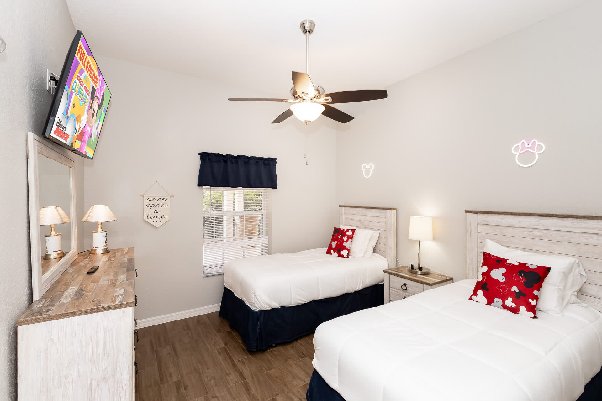 Bedroom #3 includes 2 twin size beds and a smart TV.