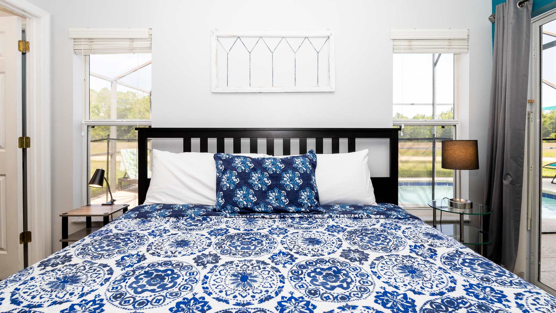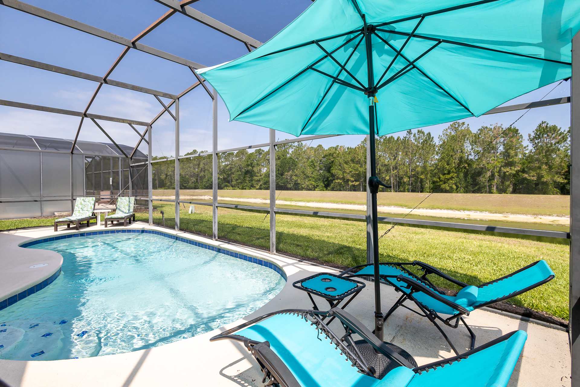 Your fun under the plentiful sun begins in and around your own personal heated inground pool under the screened-in lanai, splashing and playing to your heart’s content. Lounge for hours by the pool, turning the pages of a good book while the barbeque master in your crew whips up a delicious lunch on the grill. Providing serene overlooks of the community reservoir, peace and privacy are in abundance with no neighbors to the rear of the home. As a guest of Emerald Island, you’ll also have unlimited access to the exciting onsite amenities such as a heated swimming pool, nature trails, a sauna, mini golf, a tiki bar, kids’ playgrounds, and multiple sports courts, and that’s just to name a few!