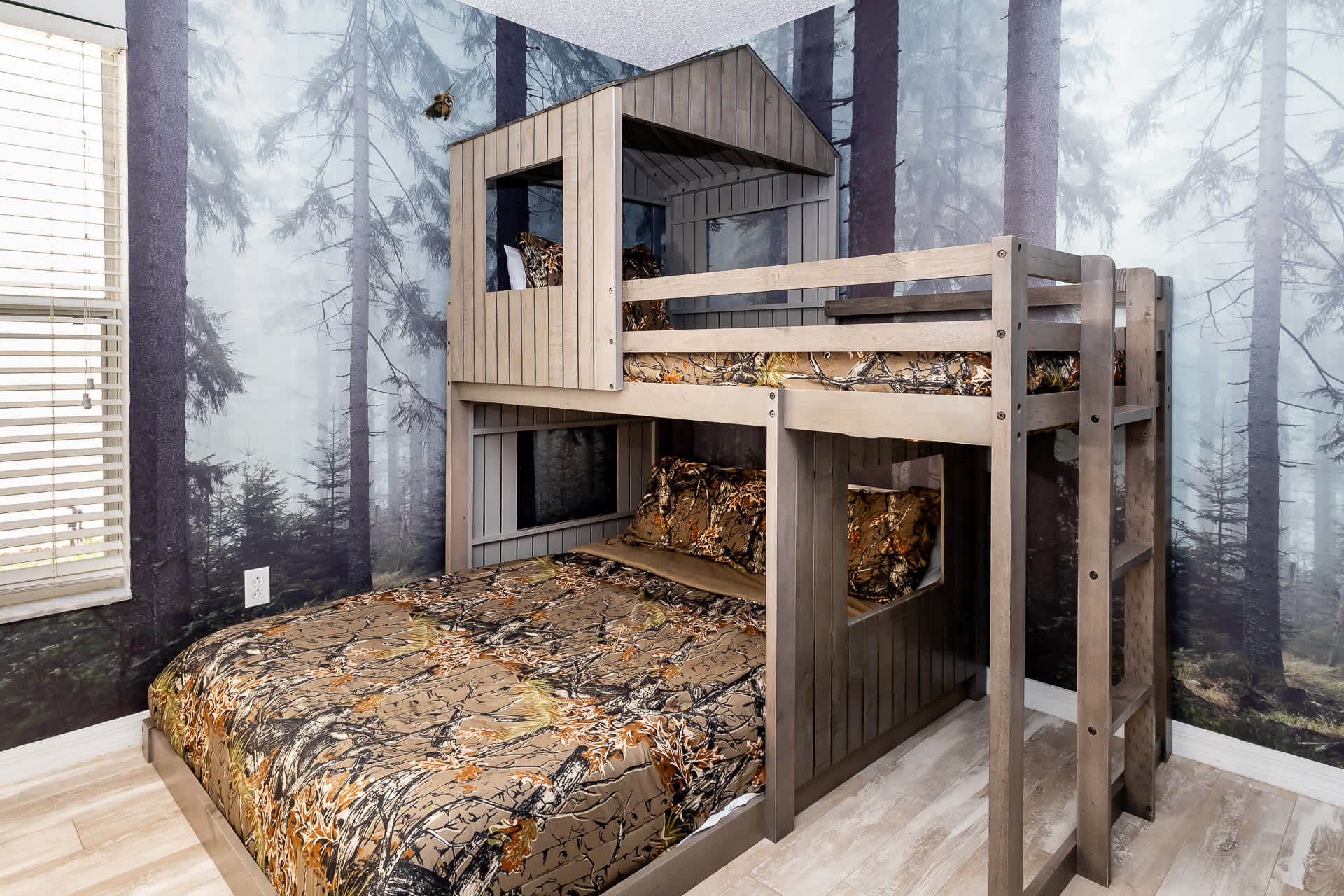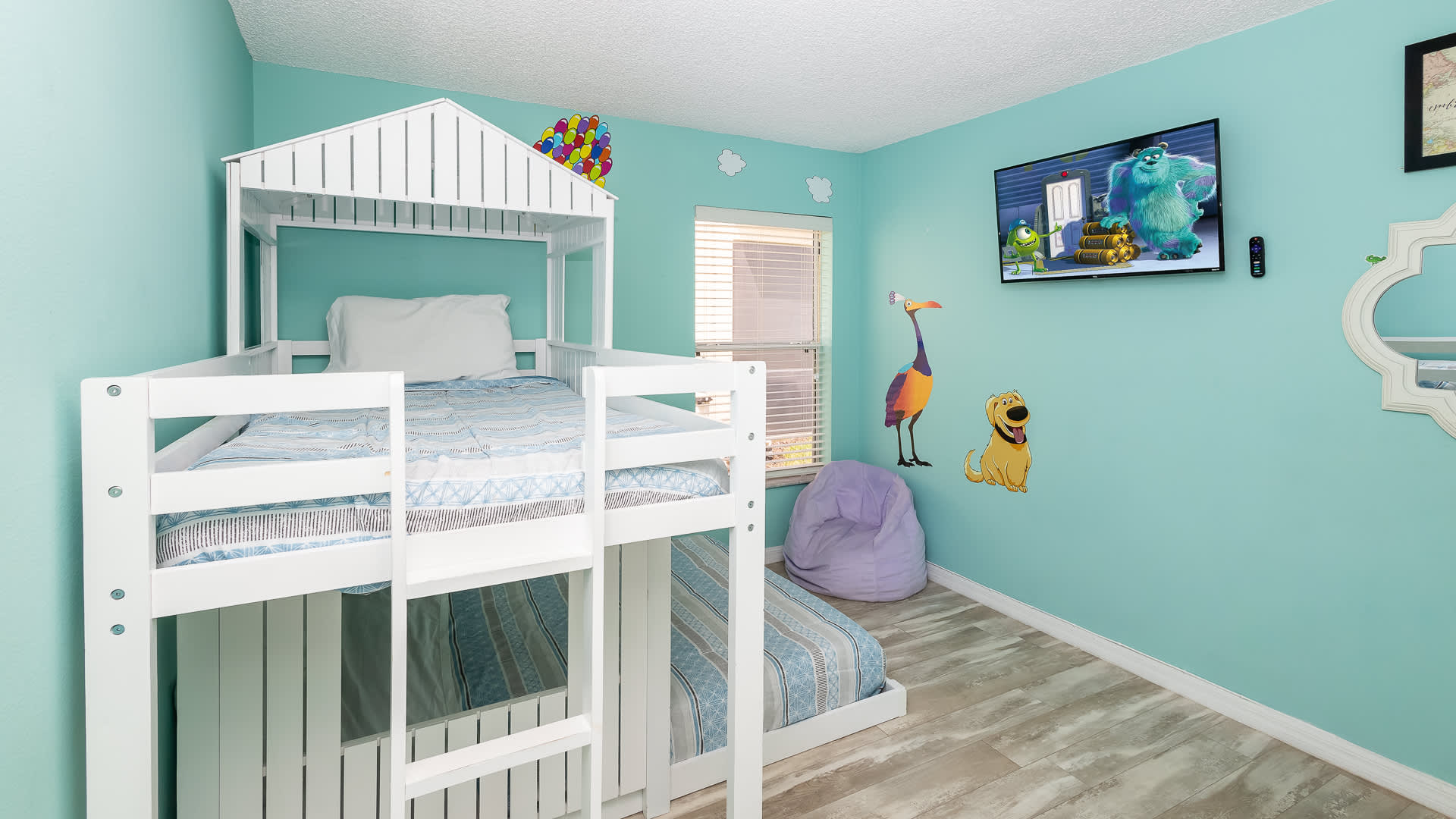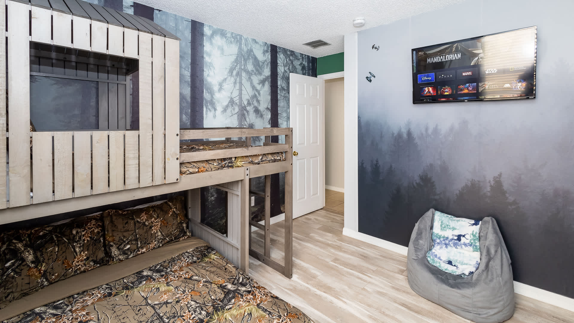 Bedroom #3 includes a twin-over-full bunk bed and smart TV.