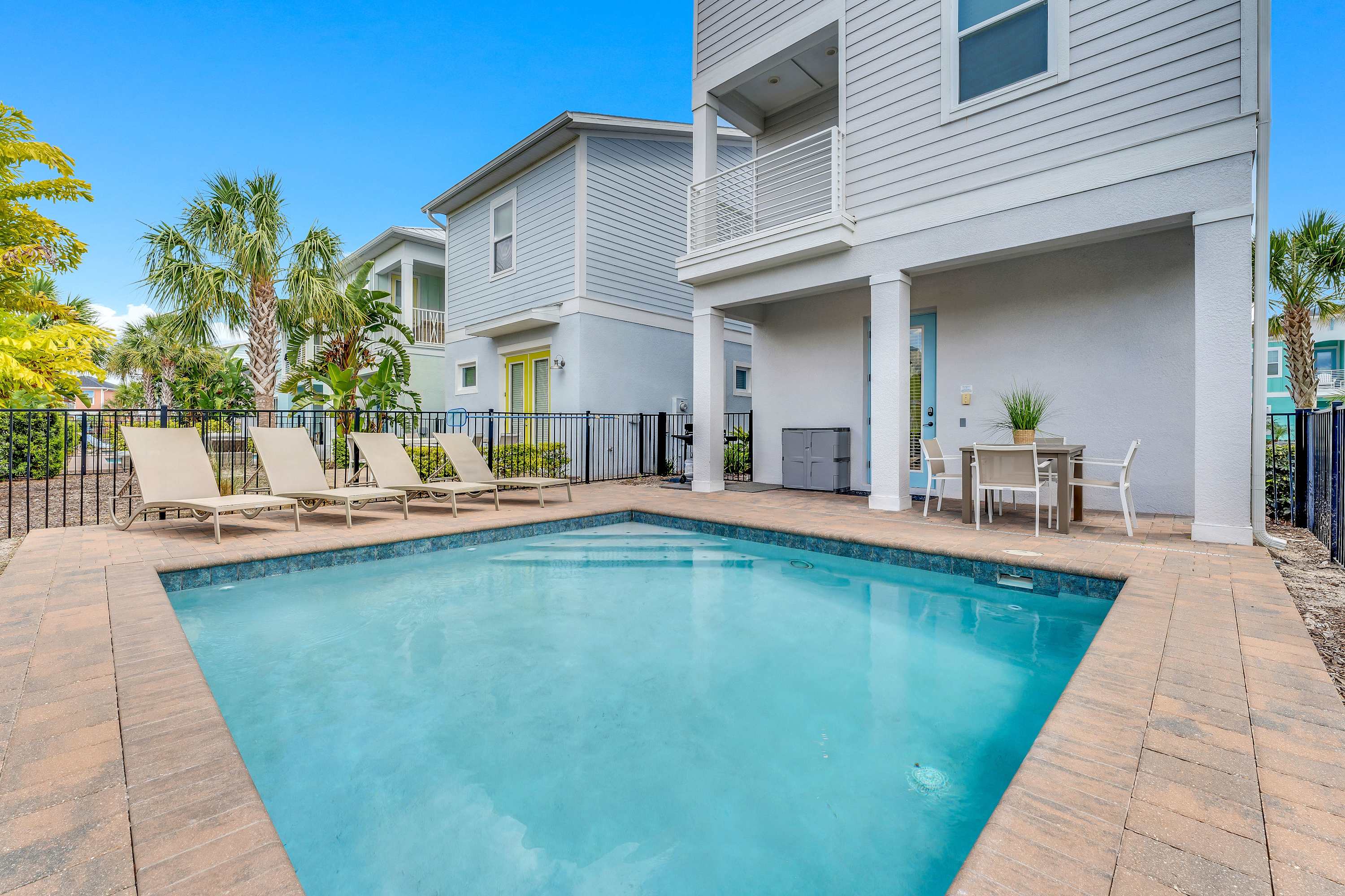 Housed within the desirable Margaritaville Resort, you next grand adventure awaits whether you’re travelling with extended family or a group of your closest friends. Enjoy refreshing swims morning or night in your private inground pool with the surrounding patio providing space to lounge and soak up those ample Florida rays. Enjoy the tranquil views of this cheerful neighborhood as you sip your morning coffee on the covered patio, planning out all the adventures of a brand-new day.