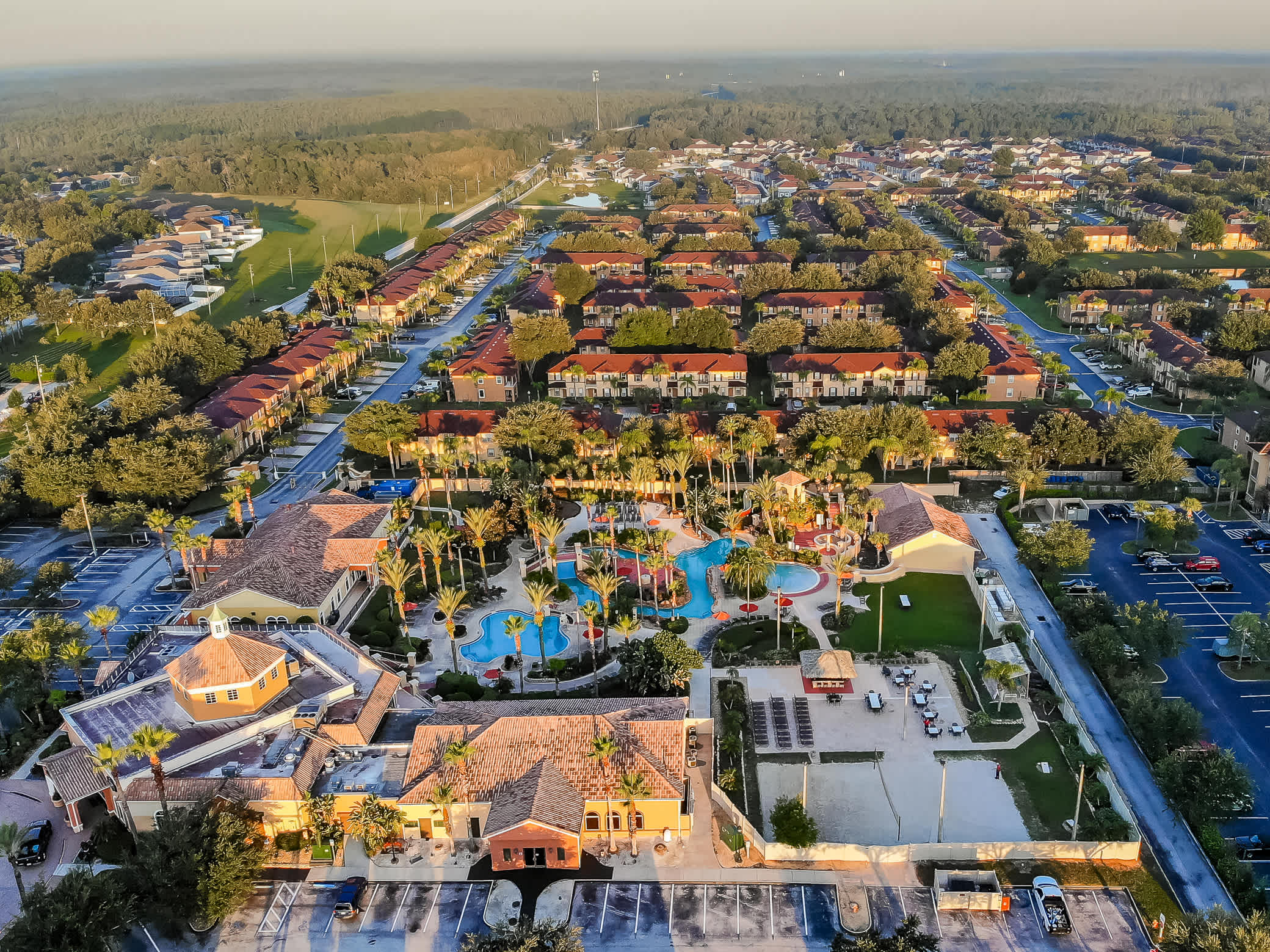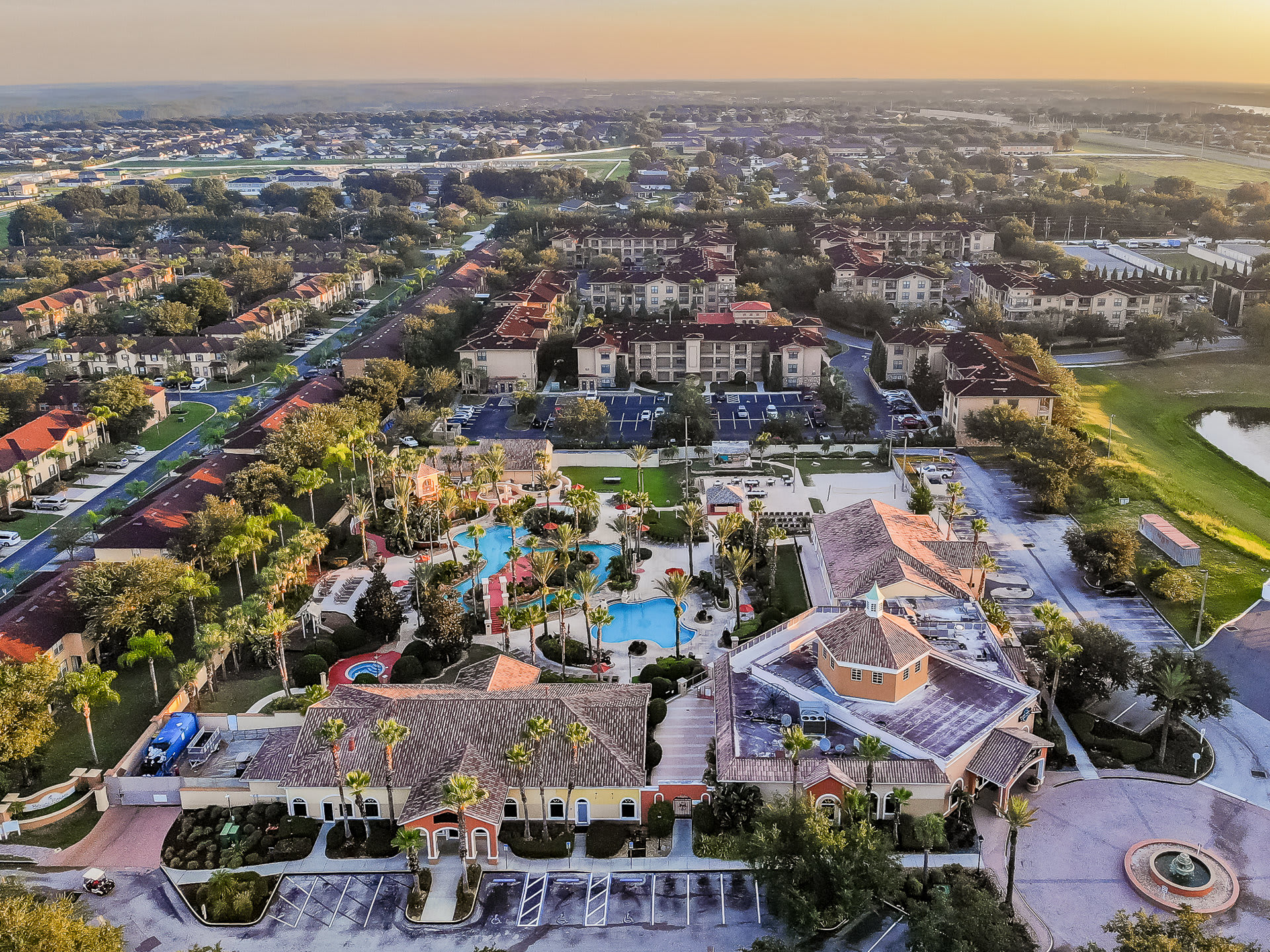 Outside of the Regal Palms Resort, there are several options for dining and shopping. Just a short walk away, Berry Town Centre conveniently has a Publix, gas station, bank, restaurants, and bars. SunsetWalk, a modern shopping complex offering just about everything under the sun, is 7.5 miles away. ChampionsGate is a small resort-city just 8-miles away. The area has a downtown feel with an array of restaurants, bars, cafes, shops, specialty stores, and even its own golf course with clubhouse and pro shop.