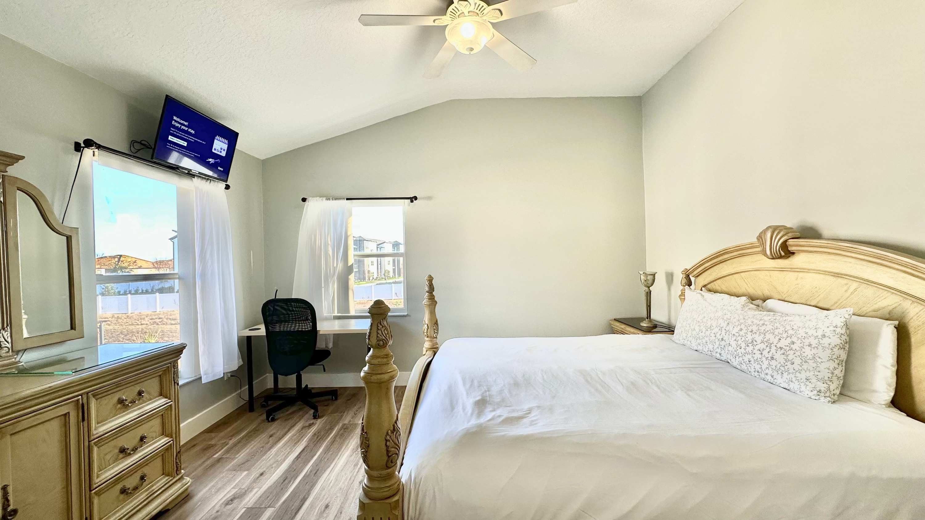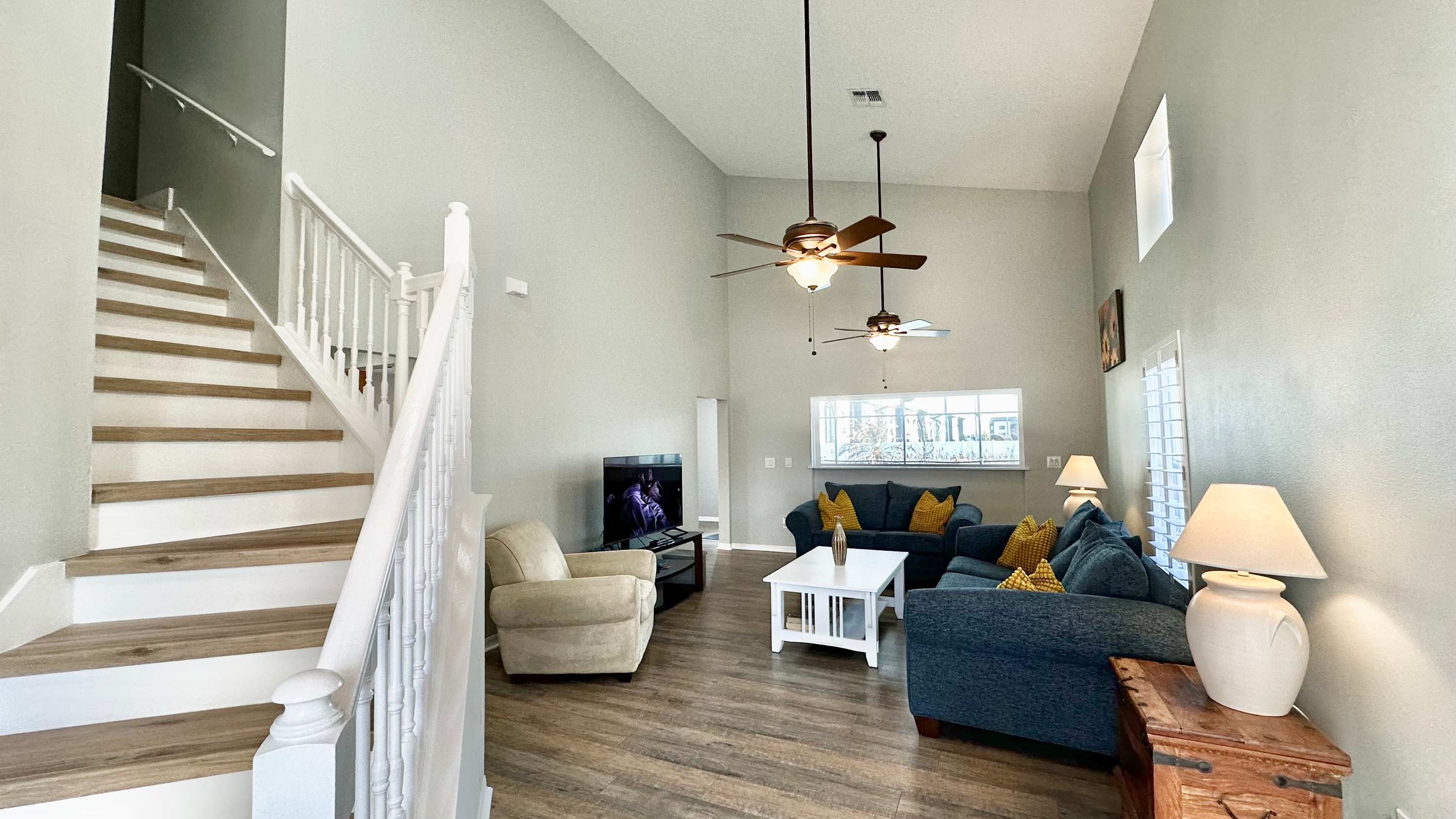 This 3-bedroom sanctuary offers all the comforts of home with the added bonus of a beautiful, refreshing outdoor pool and a prime location to the theme parks you no doubt have on your list of to-dos. You’ll be less than a 10-minute drive to the entrance of the popular Champions Gate Village, a premier retail center with shopping, dining, and entertainment options galore. At the home, a screened-in lanai offers serene moments as well as ample outdoor seating in both sun and shade to take your relaxation to the next level. The whole family will love spending endless hours splashing in the cool waters and drying off in the warm Florida air. For even more fun, head to the garage-turned-game room where you’ll find a full-size pool table waiting for a friendly round of 8-ball. When you’re ready to chill out in the glorious air conditioning, head inside the spacious home where even more exciting spaces await!