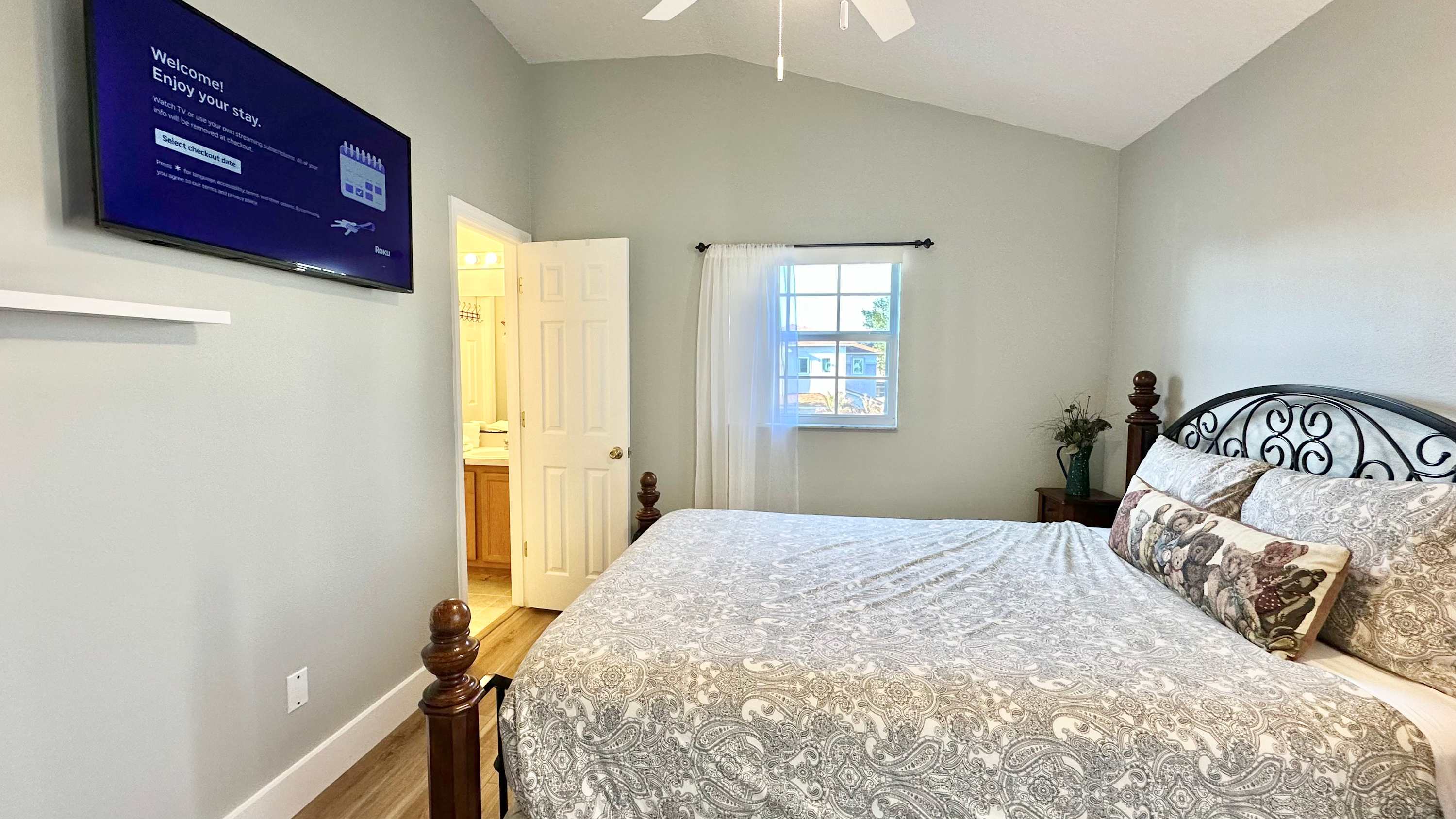Bedroom #1 includes a king size bed, smart TV, and ensuite bathroom with a dual vanity and walk-in shower.