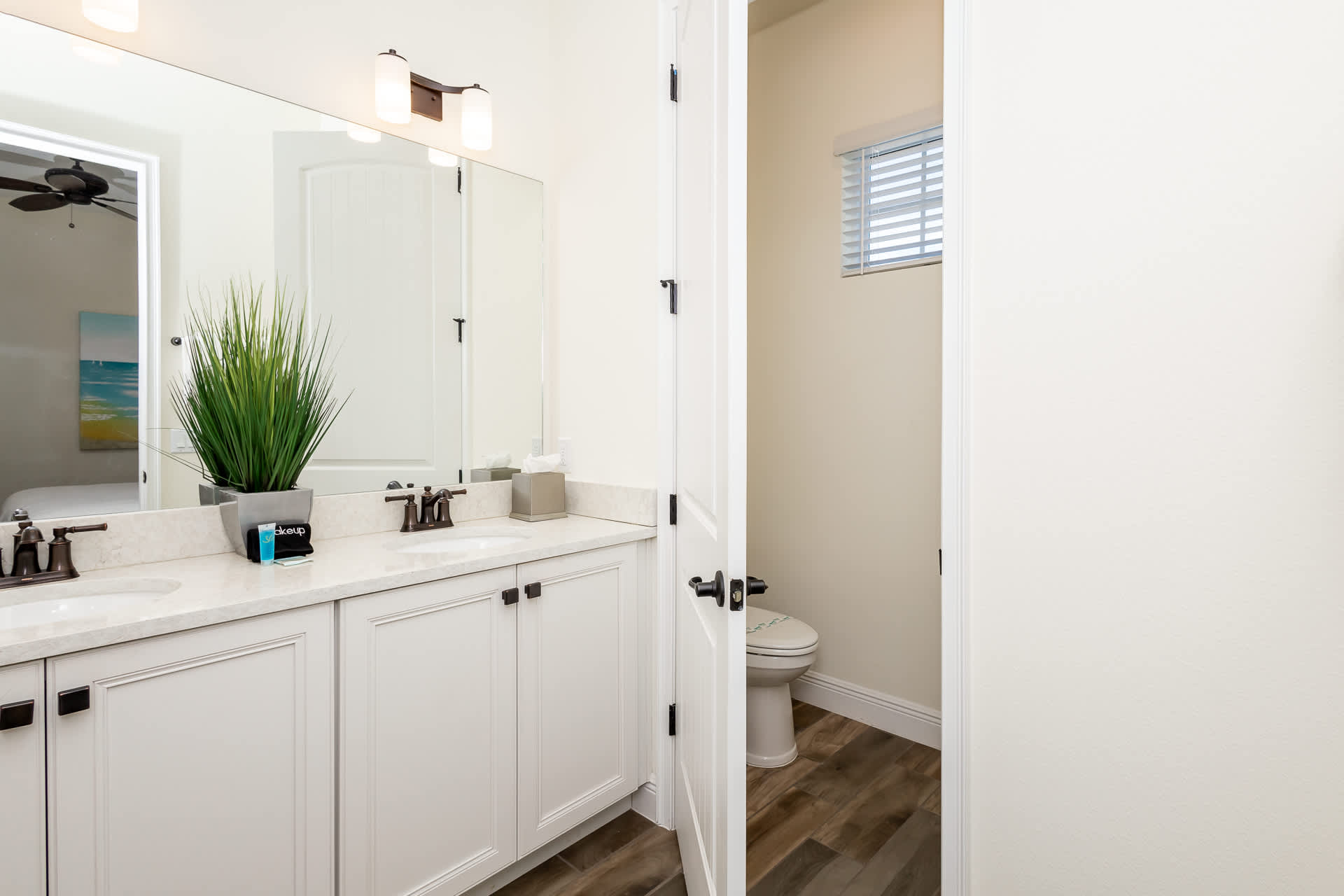 This home comfortably sleeps 10 guests between 3 private bedrooms and 2 queen size sofa sleepers. All bedrooms are inclusive of a king size bed, smart TV, and ensuite bathroom with dual vanities and either a walk-in shower or shower/tub combo. The home also includes a half bath on the main level.