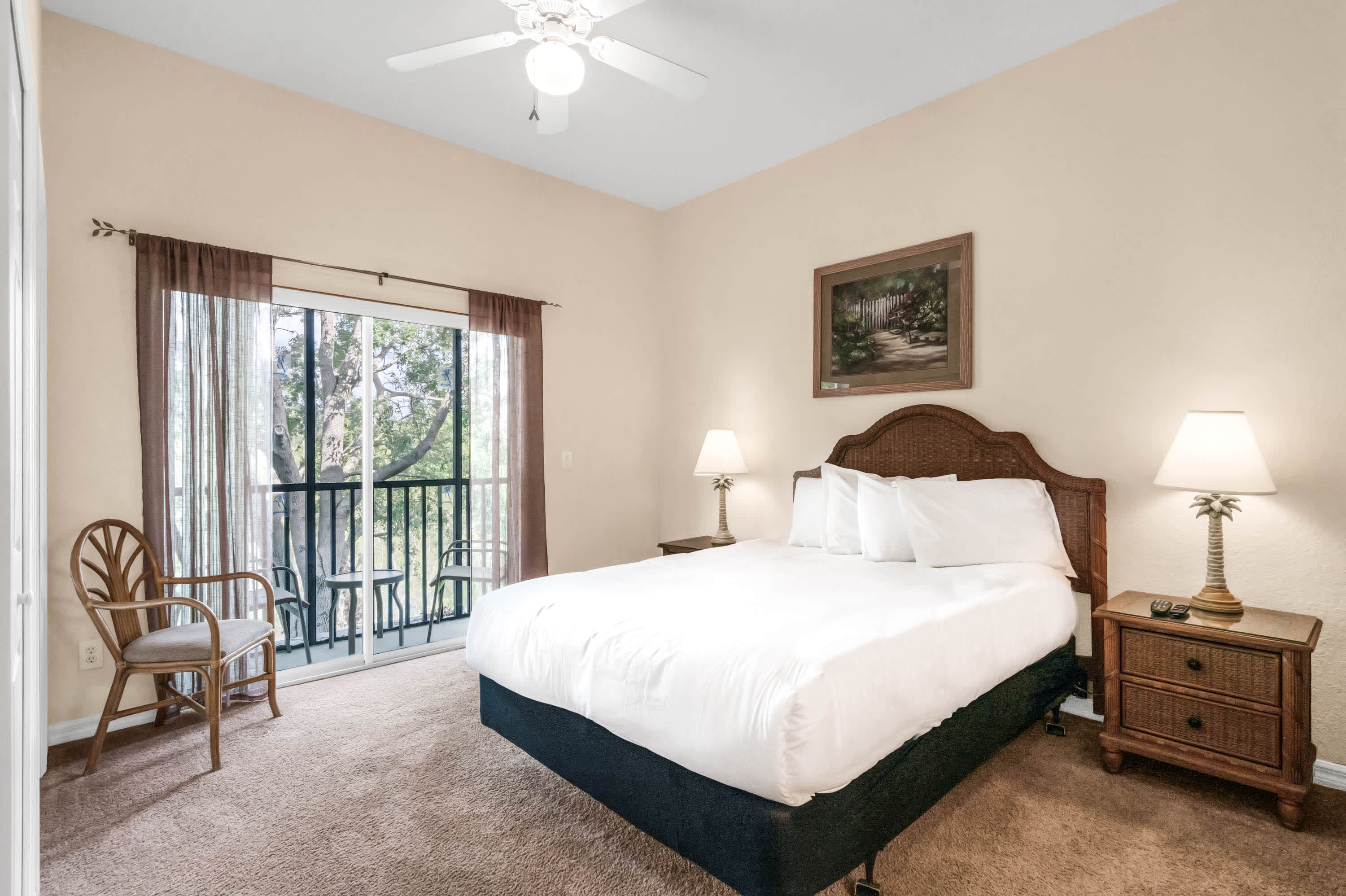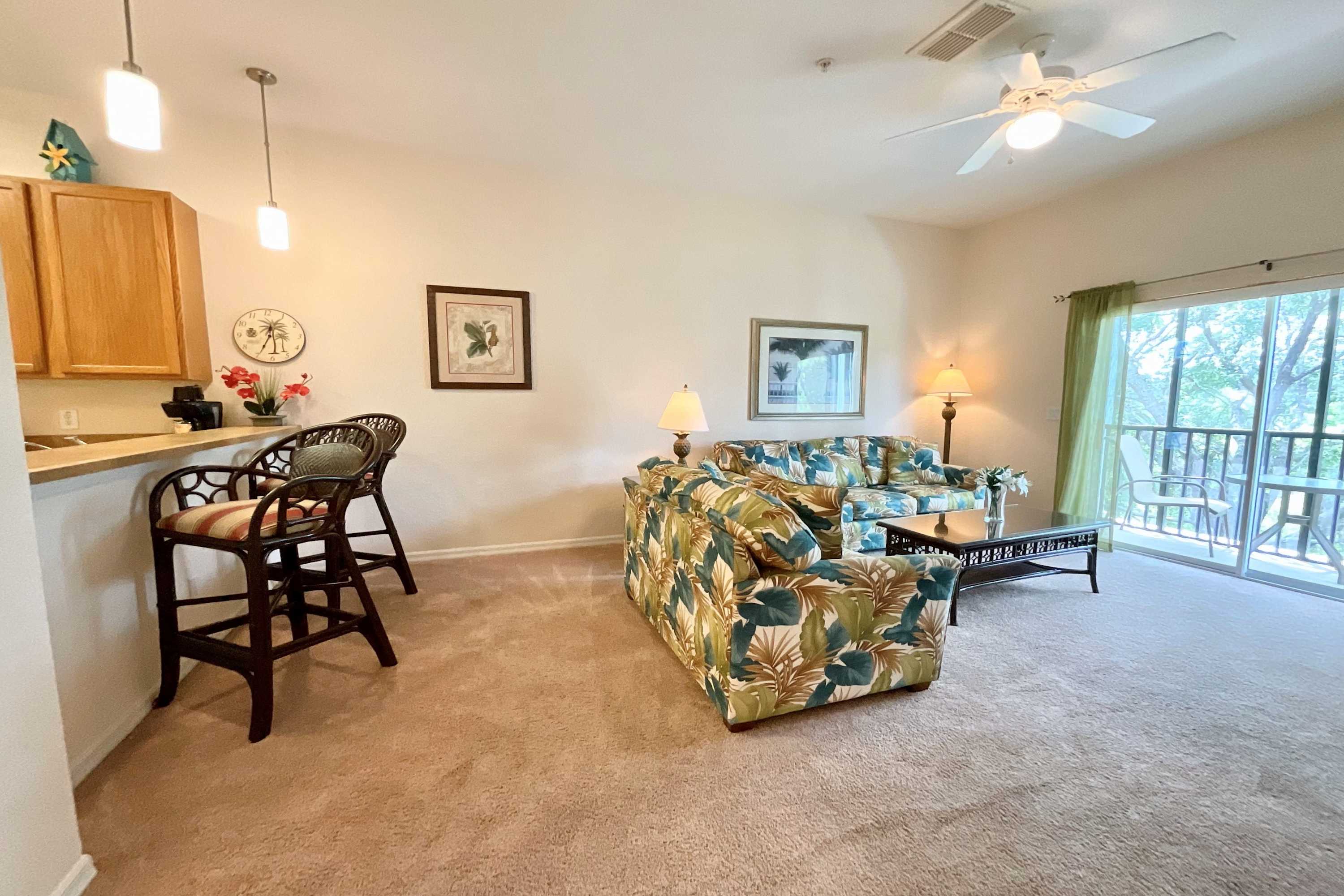 Two screened-in balconies offer views of the lovely walkways, trees, and lake, and are great spots to relax with your coffee in the morning or have drinks in the evening. At Mickey’s Terrace, you’ll truly find all the amenities necessary for a carefree vacation!