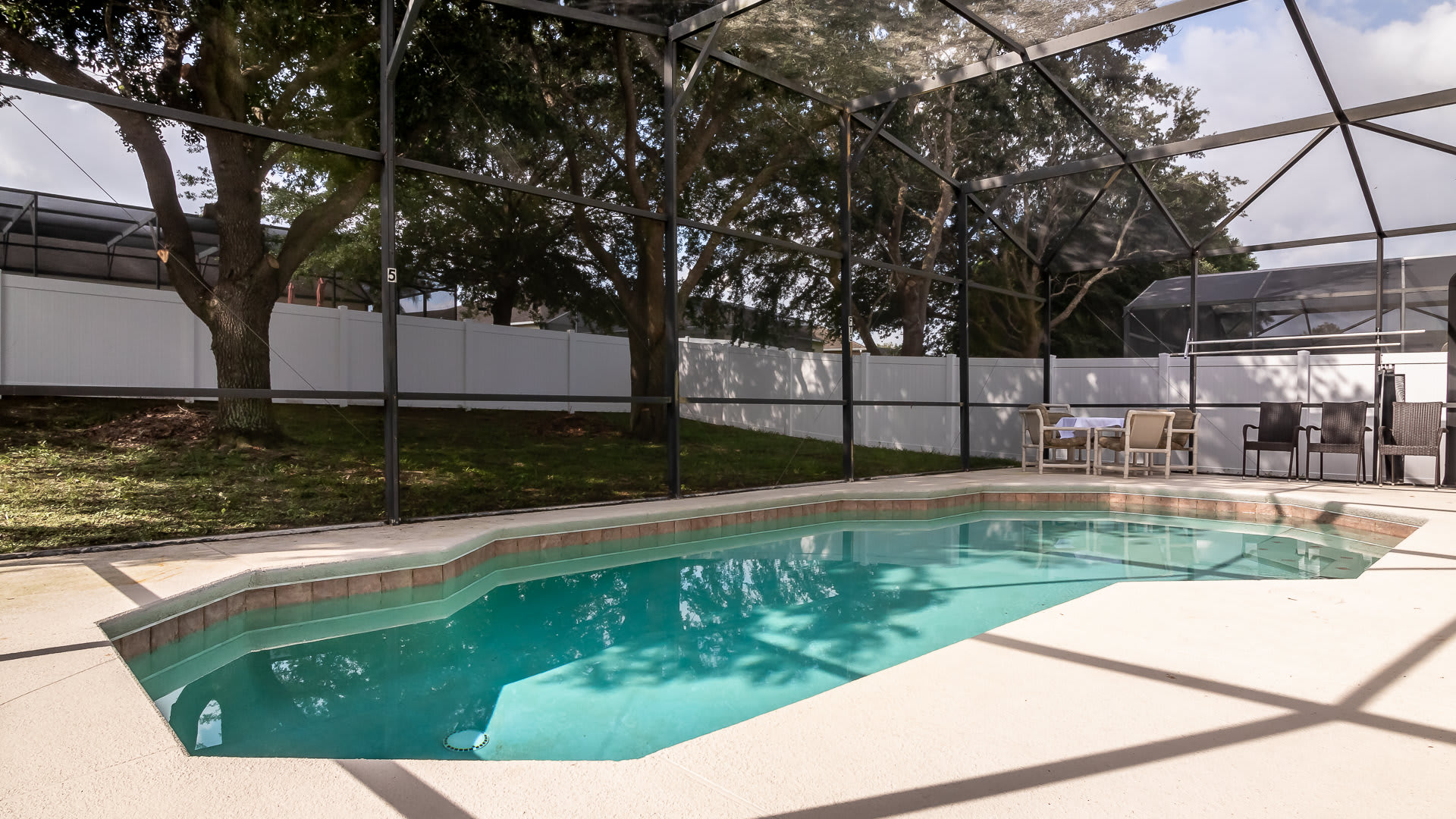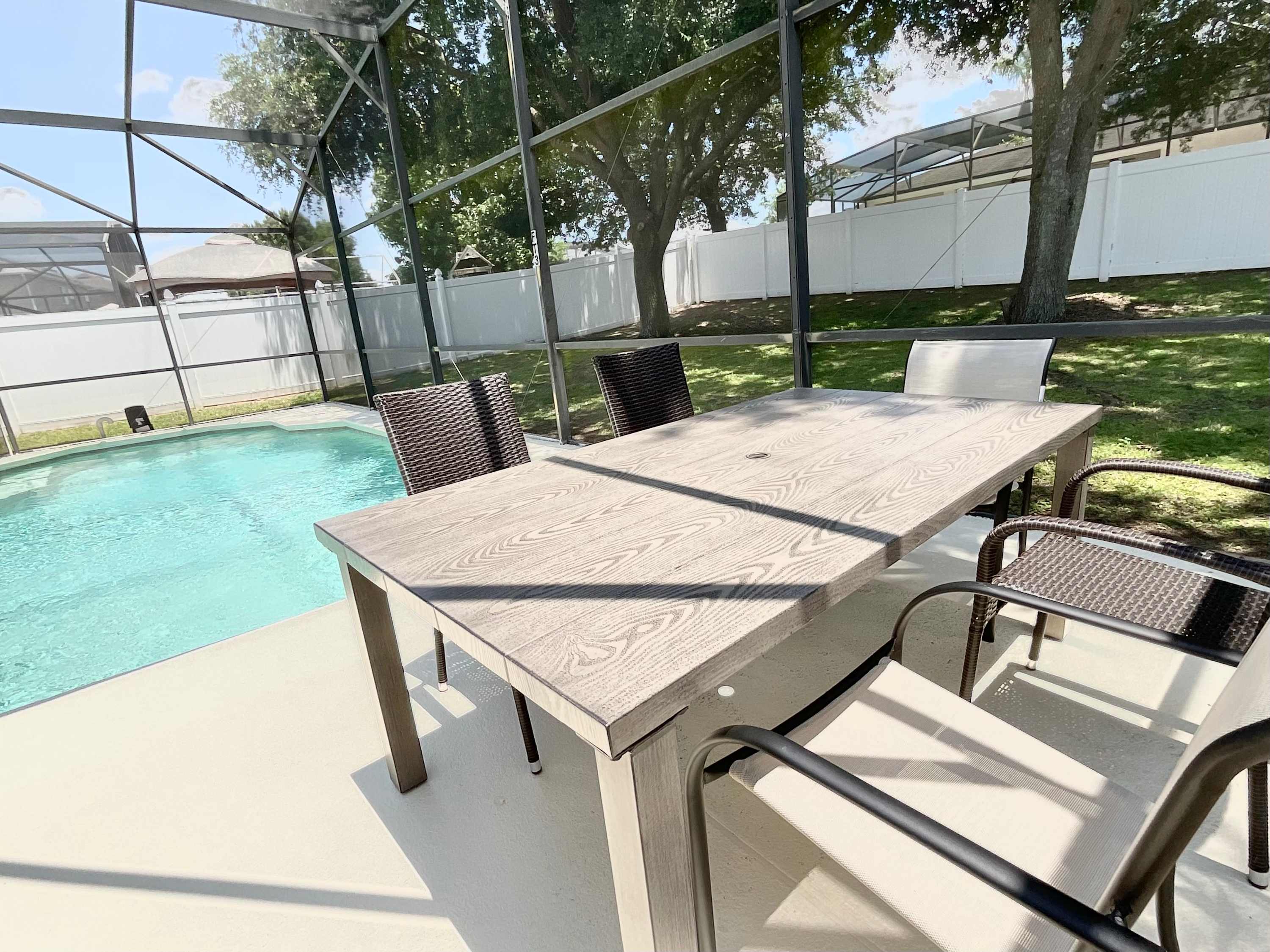 Enjoy a vacation filled with fun for everyone at Magic House At Legacy Park! With an inviting screened-in pool and private grassy yard, you can find endless joy and adventure both inside and out. Take time between your days exploring nearby theme parks to relax by the outdoor dining set or lounge on poolside chairs while soaking up some sun – there's no better place for making lasting memories on your getaway to the Sunshine State!