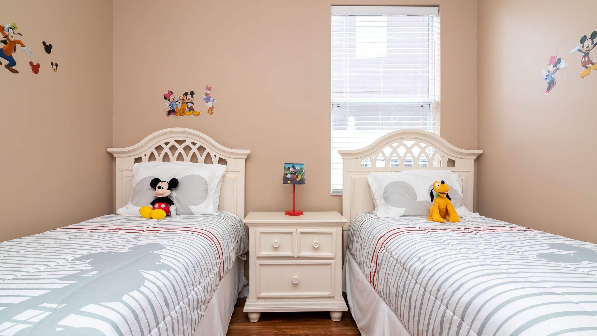 The luxurious Magic House At Legacy Park includes 4 beautifully themed bedrooms, each full of unique touches that will add extra excitement throughout your stay. Enjoy all the traditional marks of a dream worthy getaway home—including private pool time and beautiful interiors for the utmost relaxation. This is sure to be a retreat unlike any other! Enjoy quality time with family and friends in 1 of 2 inviting living areas, each complete with comfortable seating around a smart TV, plus board games and books for extra entertainment. The kitchen is equipped to make your home-cooked meals easier than ever; stainless steel appliances, a blender, coffee maker, cookware and more are here for your convenience! And finally - gather round the 6-person dining table as everyone shares dinner and tales of their day's adventures. There is an additional breakfast nook just off the kitchen, perfect for morning coffee and quick snacks throughout the day!