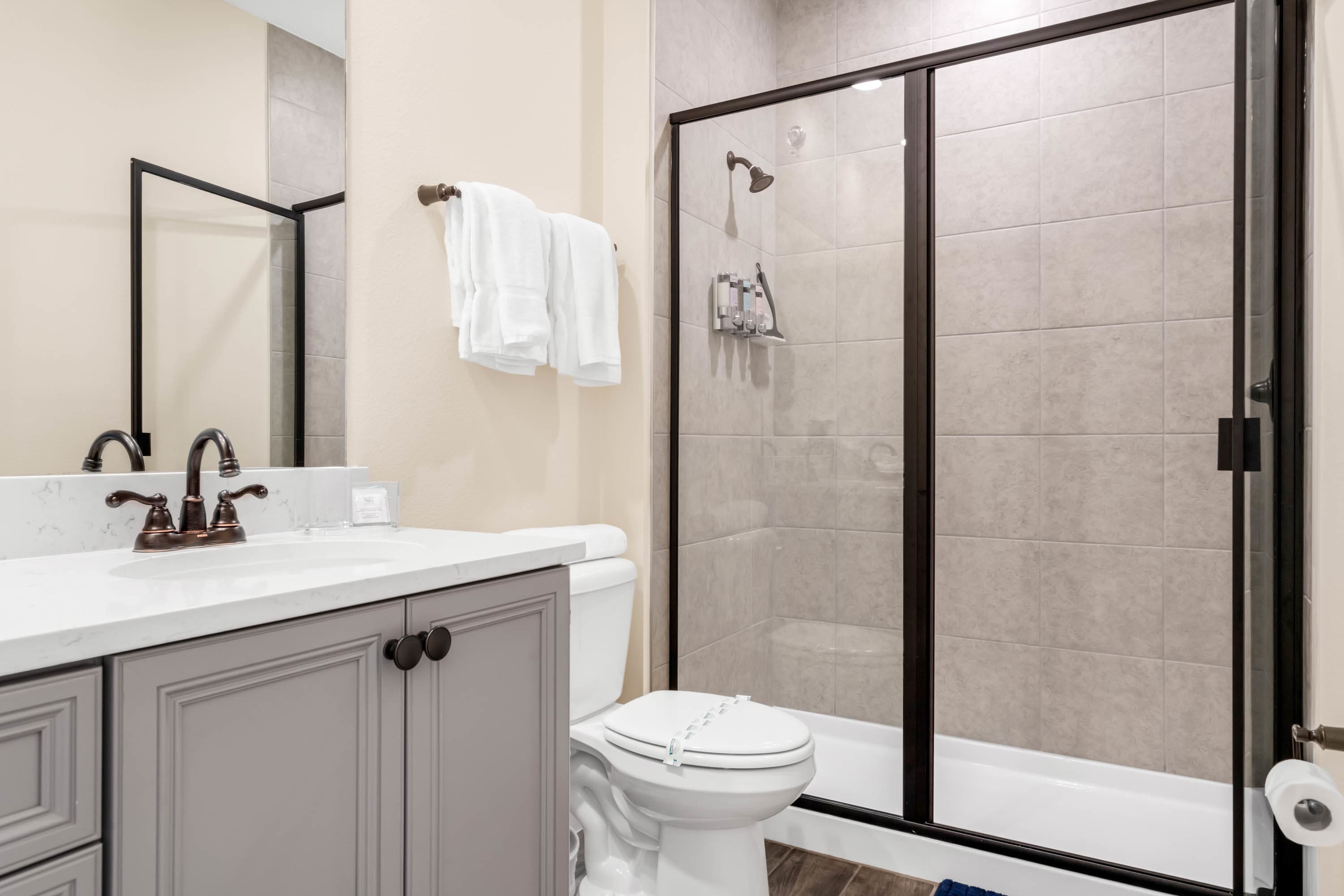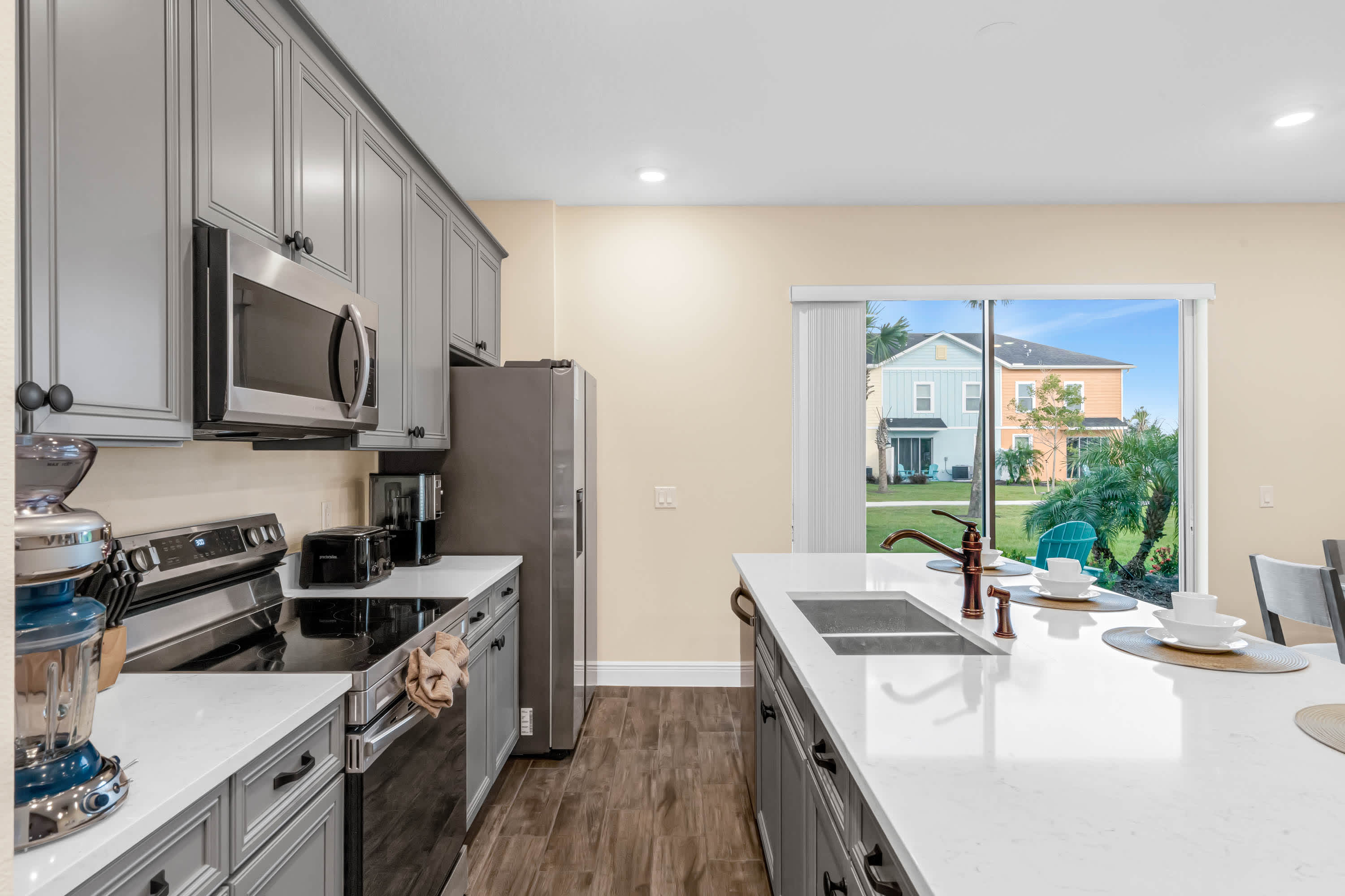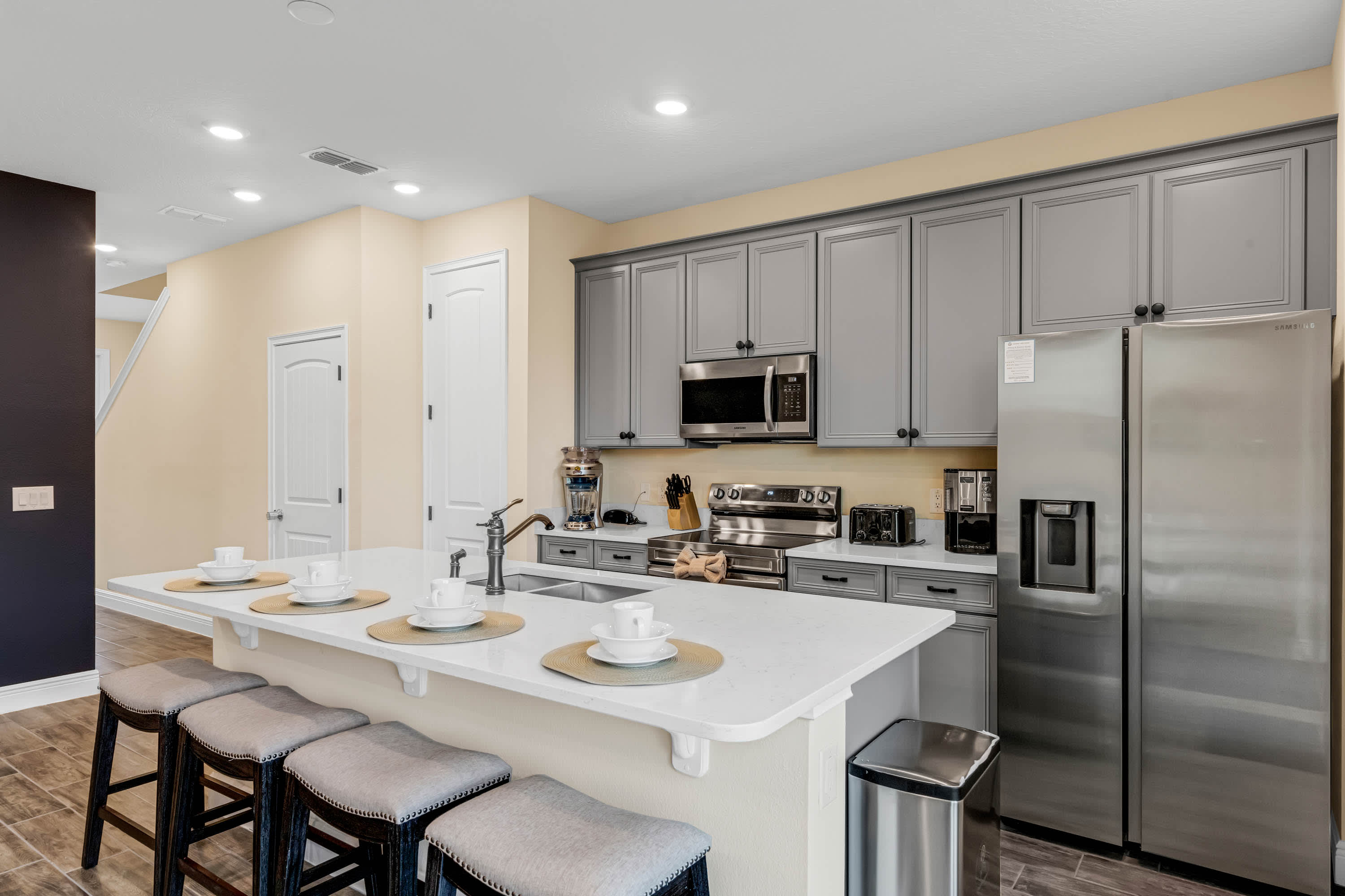 One of the best parts of vacation is the quality time spent together, and this home’s open concept design allows for just that. Ahead of meeting favorite characters at Disney Parks, enjoy a family movie night in the living room with those very characters on the screen. The kitchen is steps away with stainless steel appliances and all the tools you’ll need to make delicious meals from home. Additional small appliances include a toaster, coffee maker, and margarita machine because you’re staying in Margaritaville after all! Share meals together at the dining table for 4. Extra seating at the kitchen island is perfect for casual bites and quick snacks.