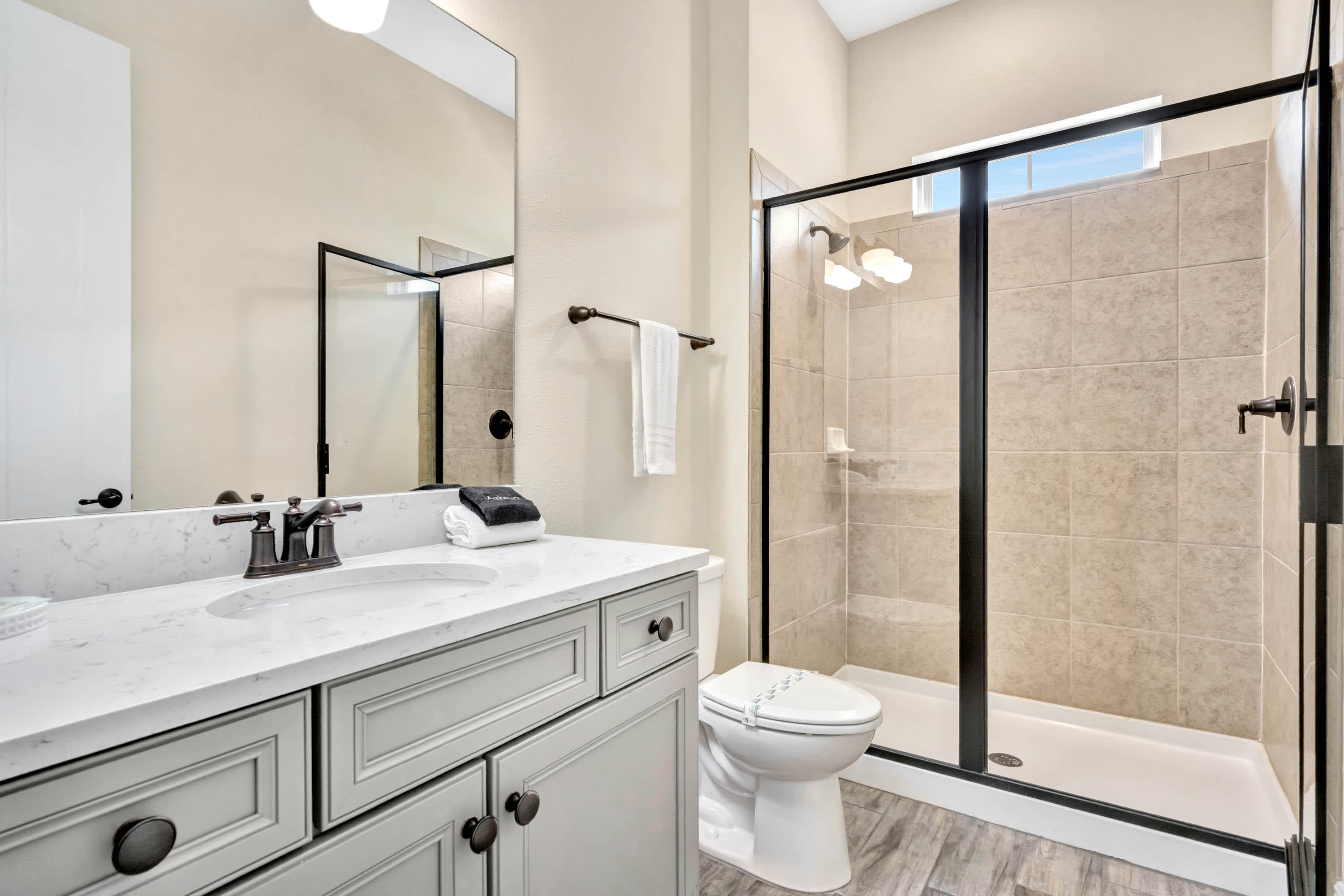The home shares an additional bathroom with a walk-in shower.