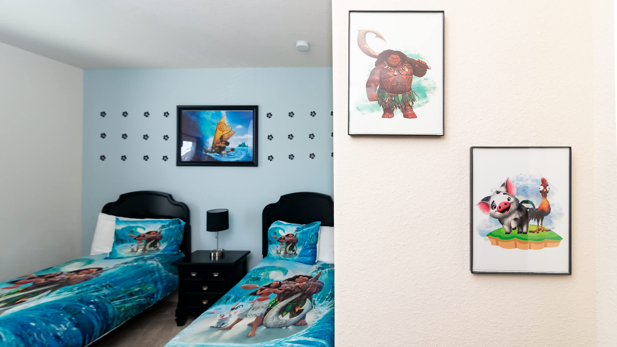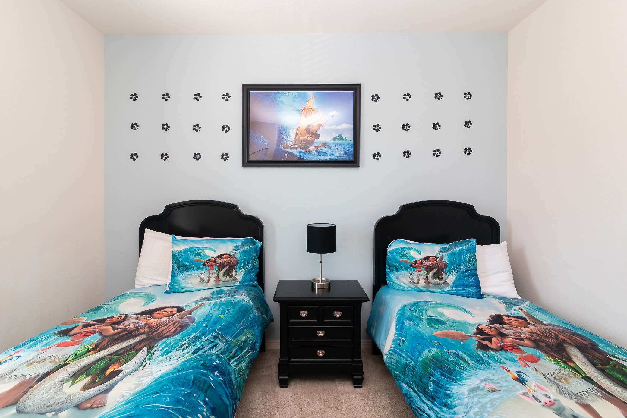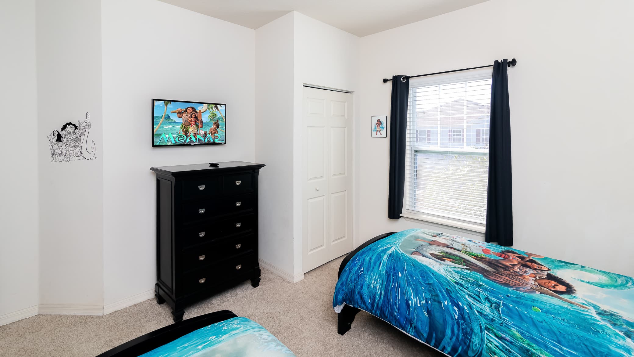 Bedroom #3 is sure to be a favorite with its Moana theme, 2 twin beds, and smart tv.