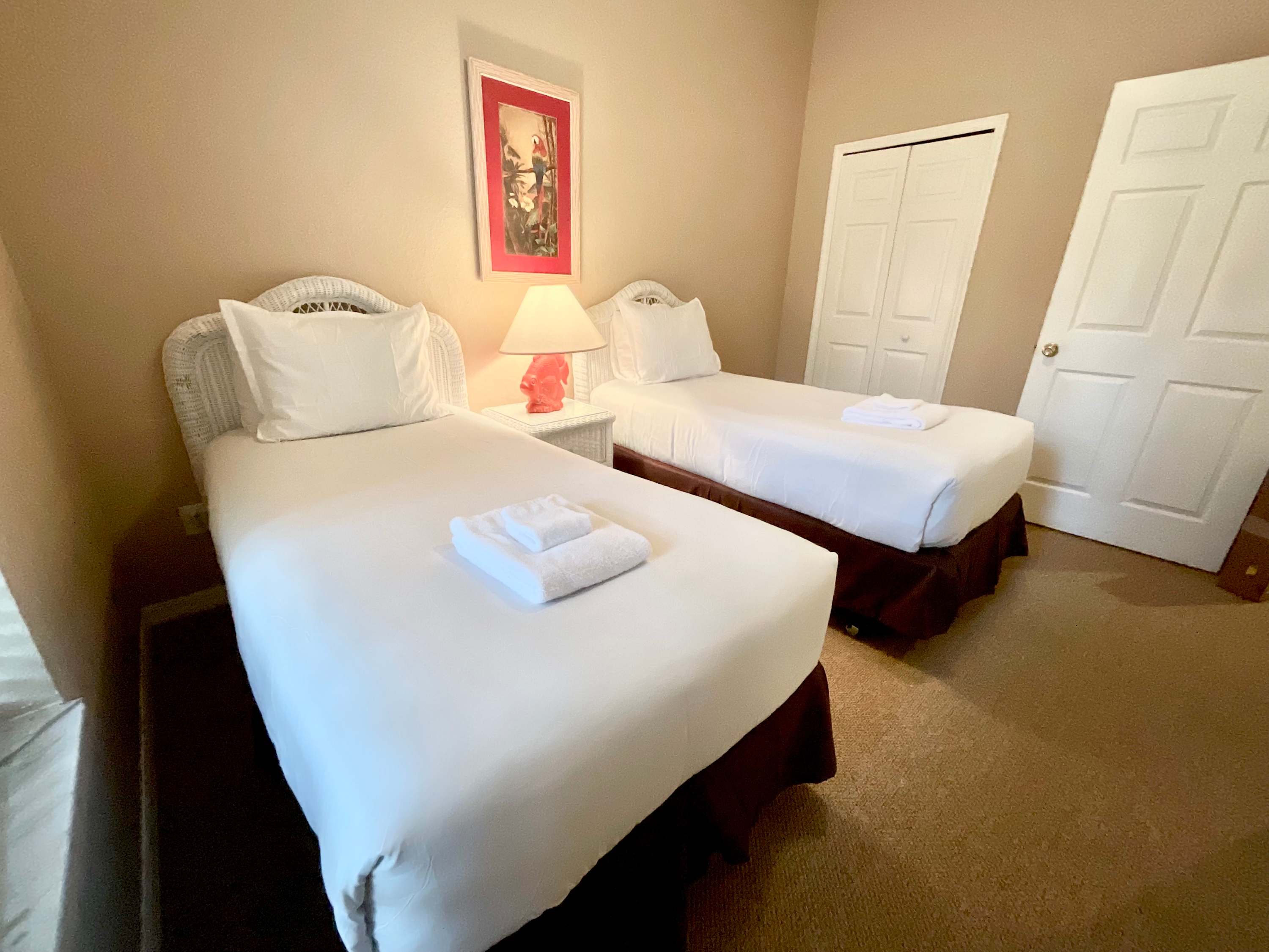 Bedroom #3 has 2 twin size beds and smart TV.