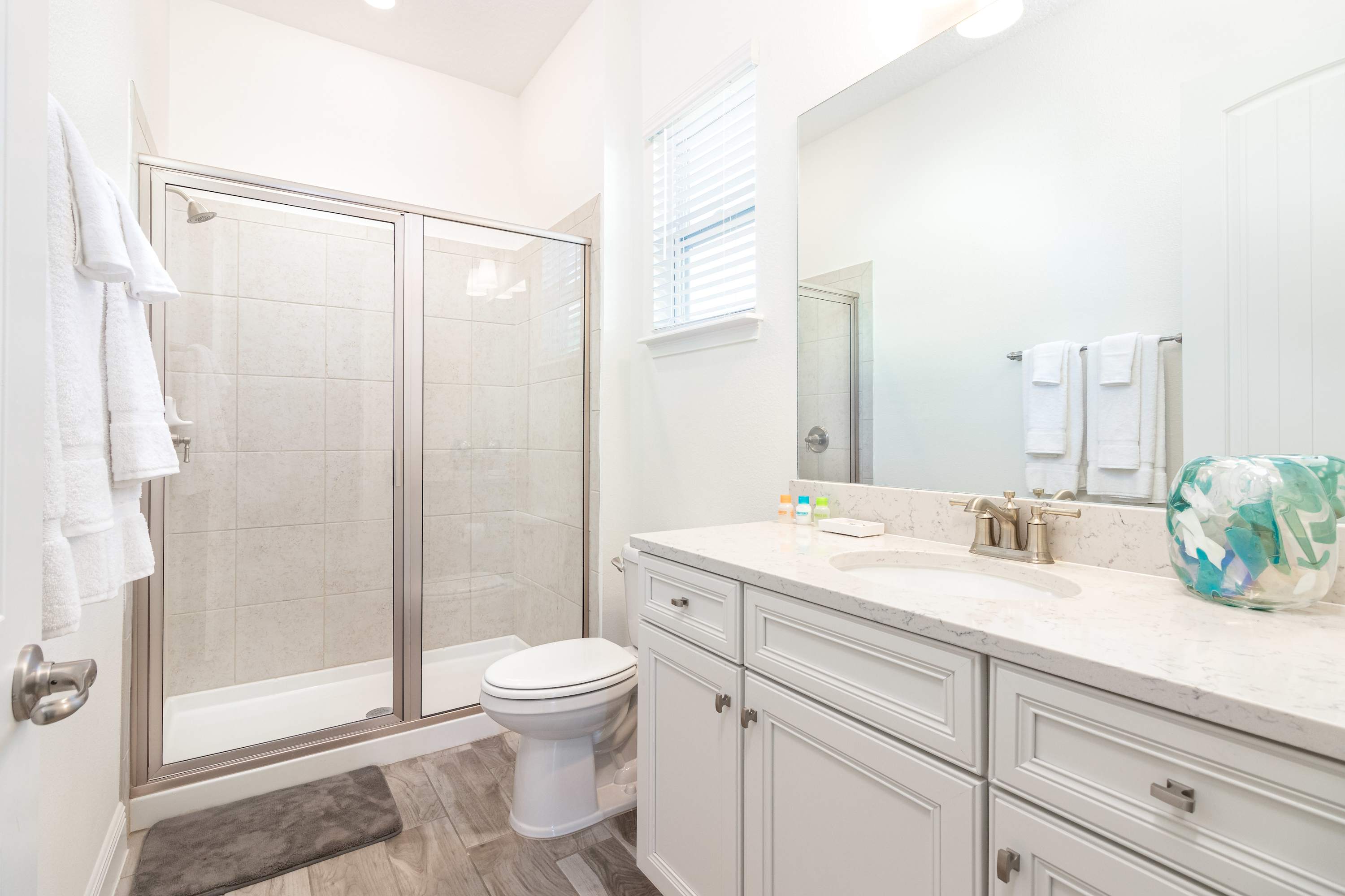There is an additional full shared bathroom on the 1st floor with a walk-in shower.