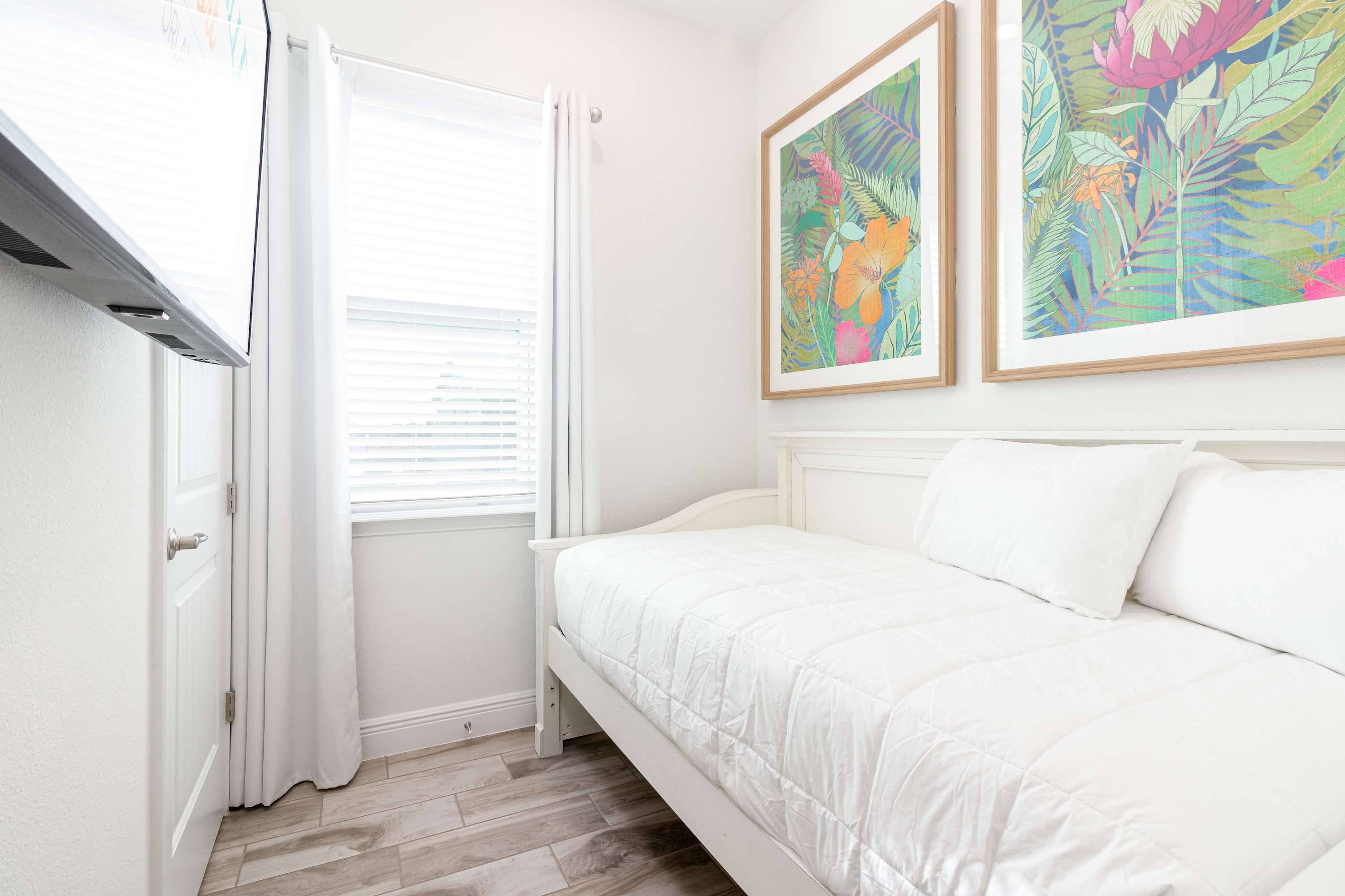 - Bedroom #4 in the loft features a Twin bed, mini Nintendo, and Smart TV.
