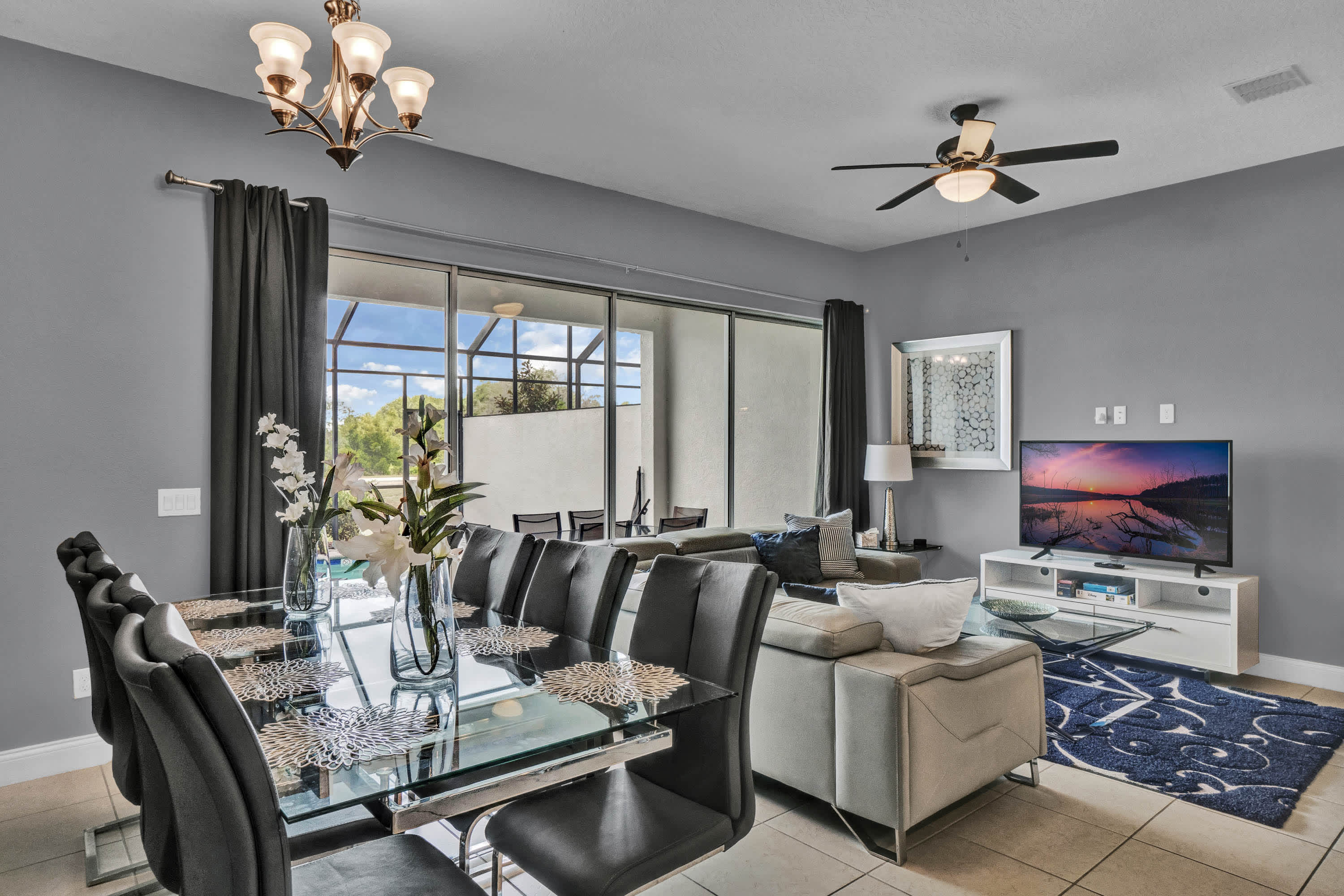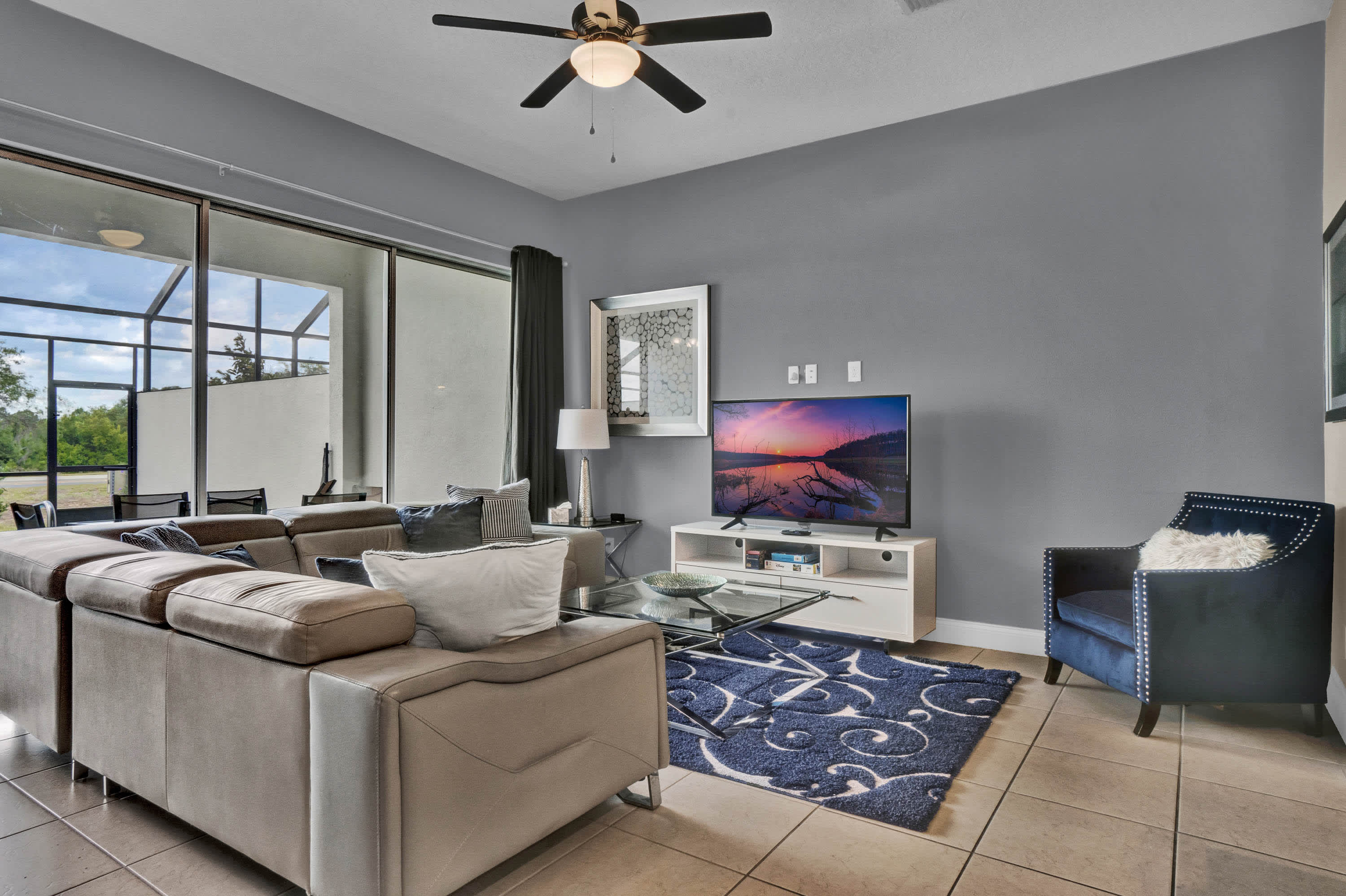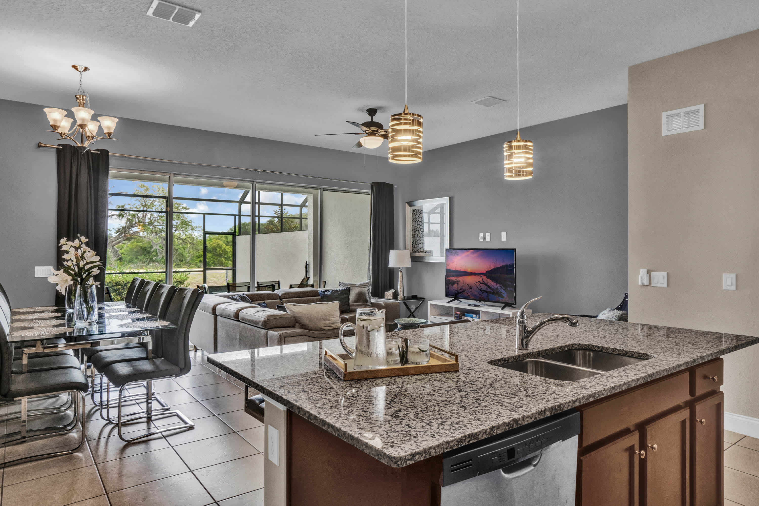 Tucked inside a charming, leafy township in Davenport, Captivating Captiva is a cozy home away from home. Engulfed by lush, rustling trees and a glistening emerald lake, the villa boasts an array of modern facilities for a relaxing and unforgettable stay.