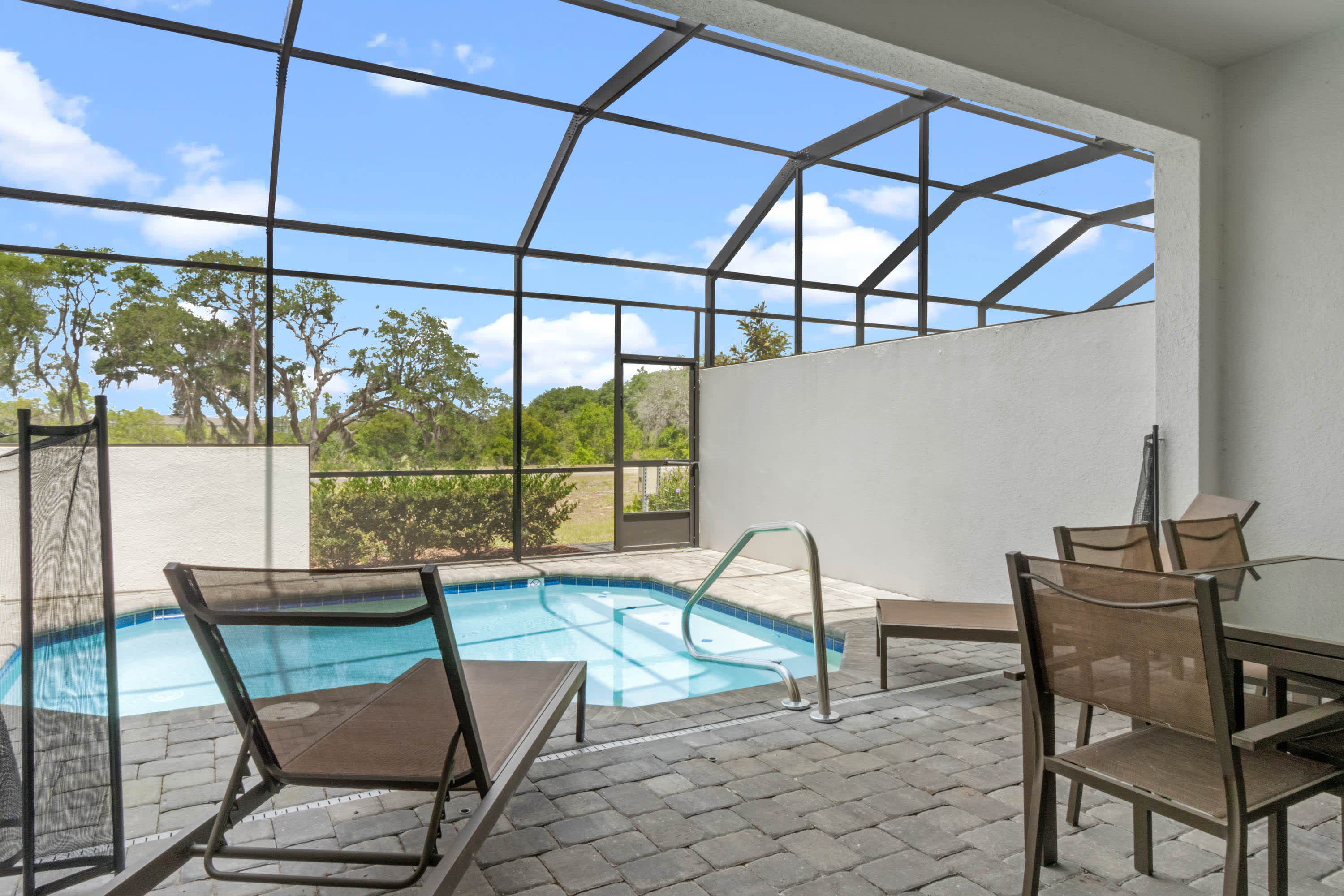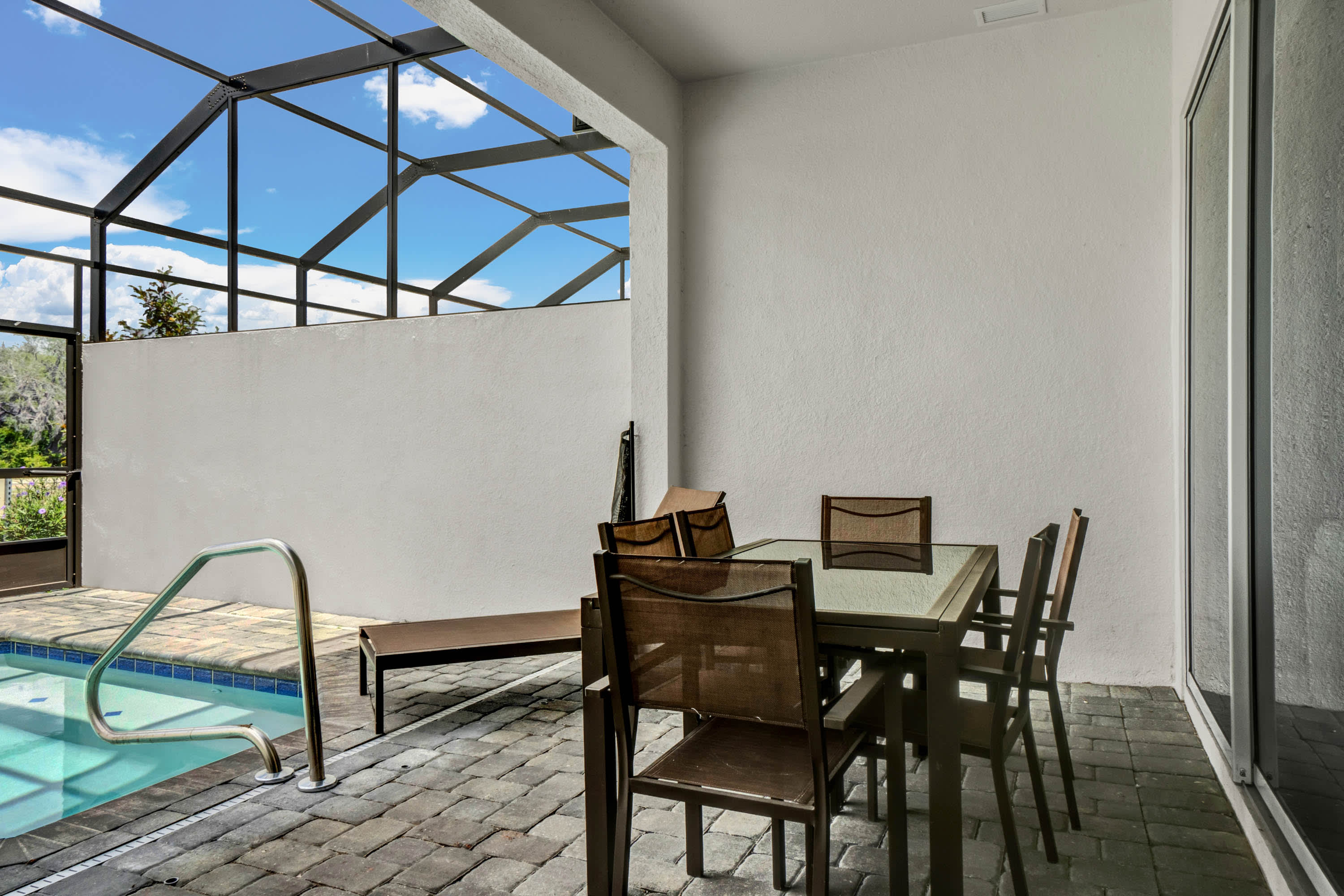 - An additional half bathroom is located next to the pool.