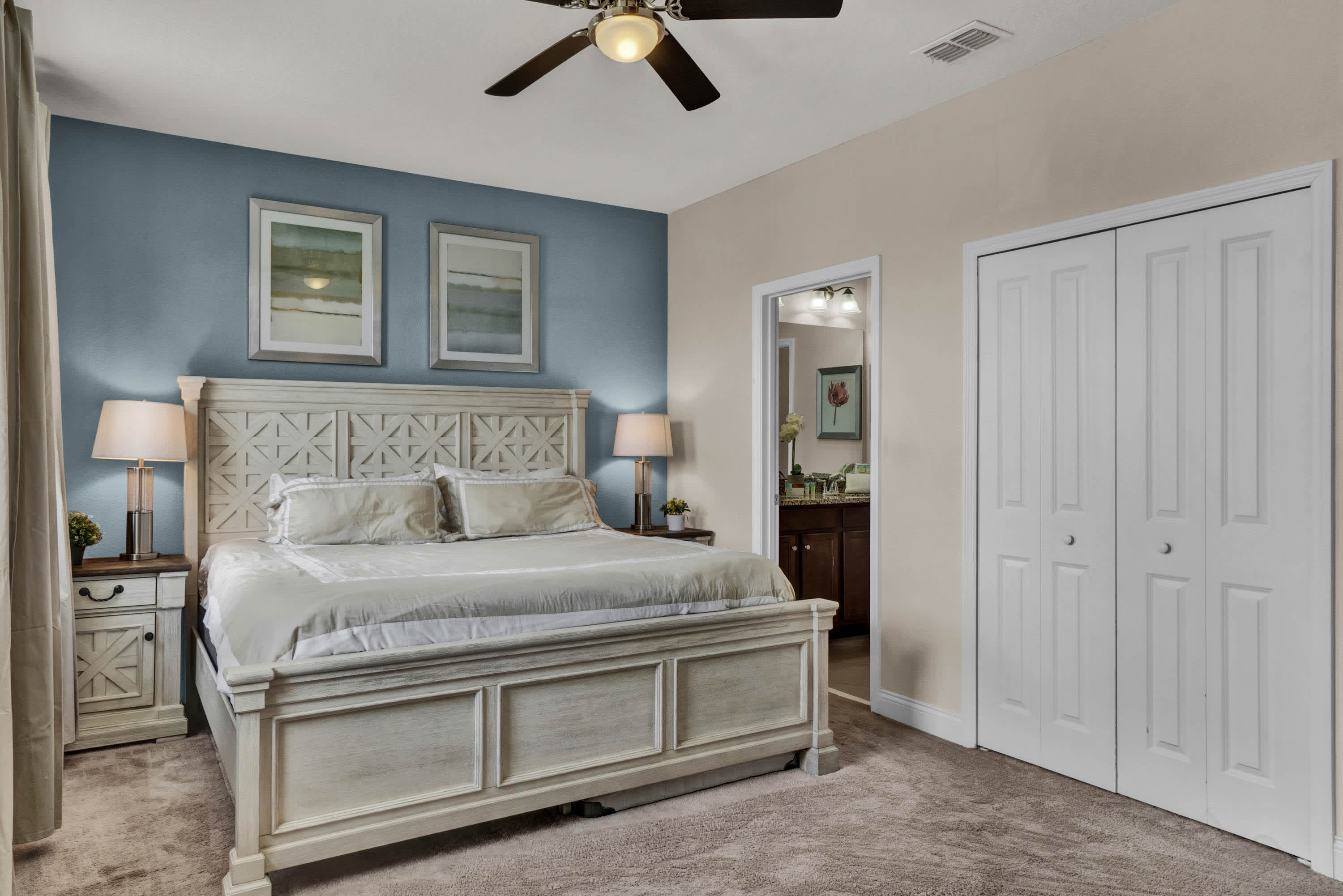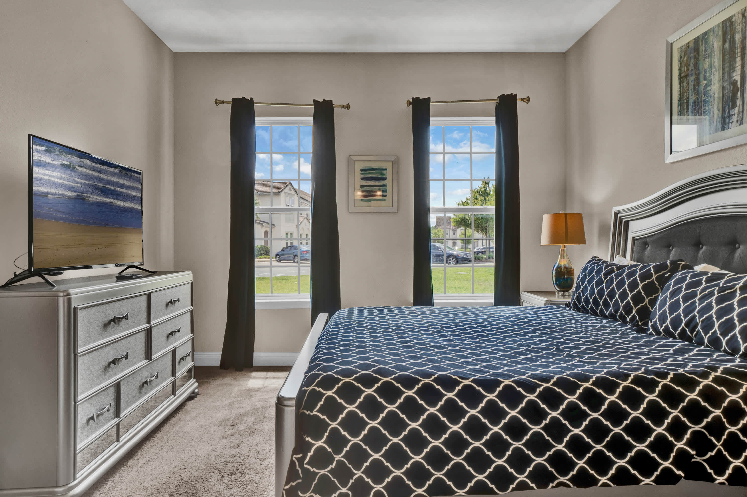 Bedroom #2, on the second floor, is the master, complete with a king-size bed, a smart TV and an en-suite bathroom with shower/tub combo.