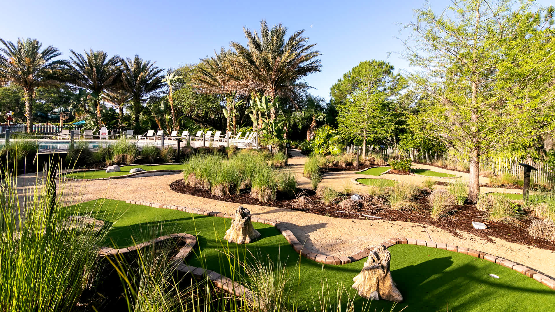 Take advantage of a well-stocked fitness center, show off your skills at the miniature golf course or head out for beach volleyball under the tropical sun. There’s also a kid-friendly waterpark, with grand fountains and splashy water slides.