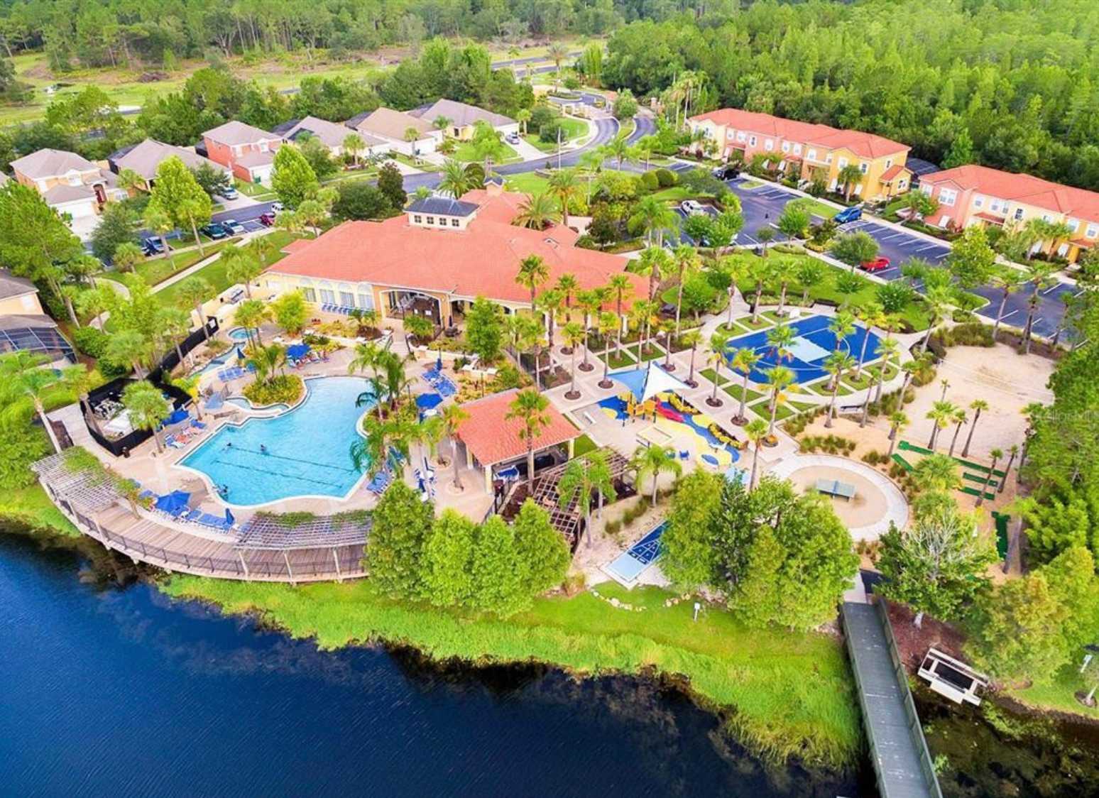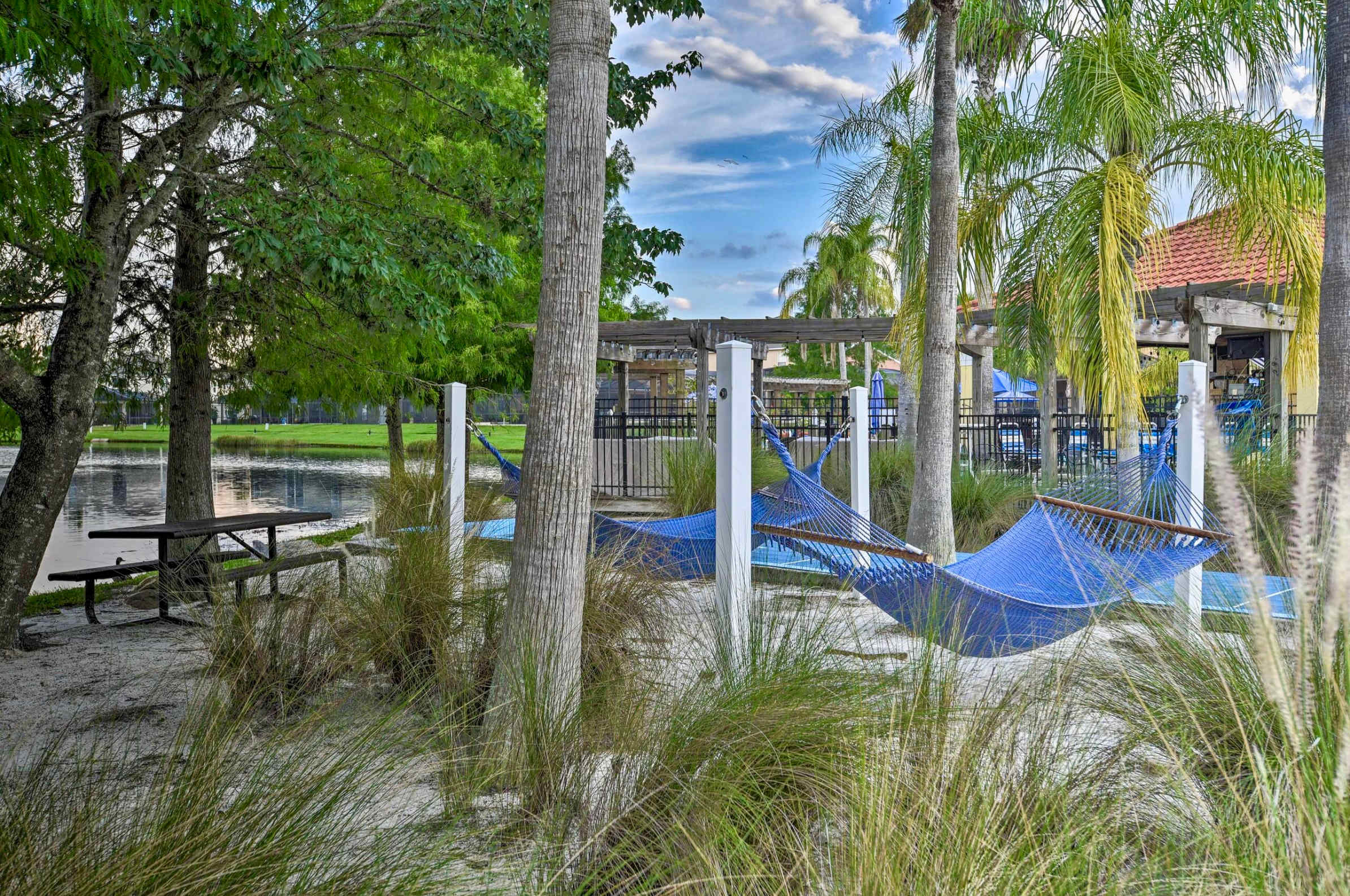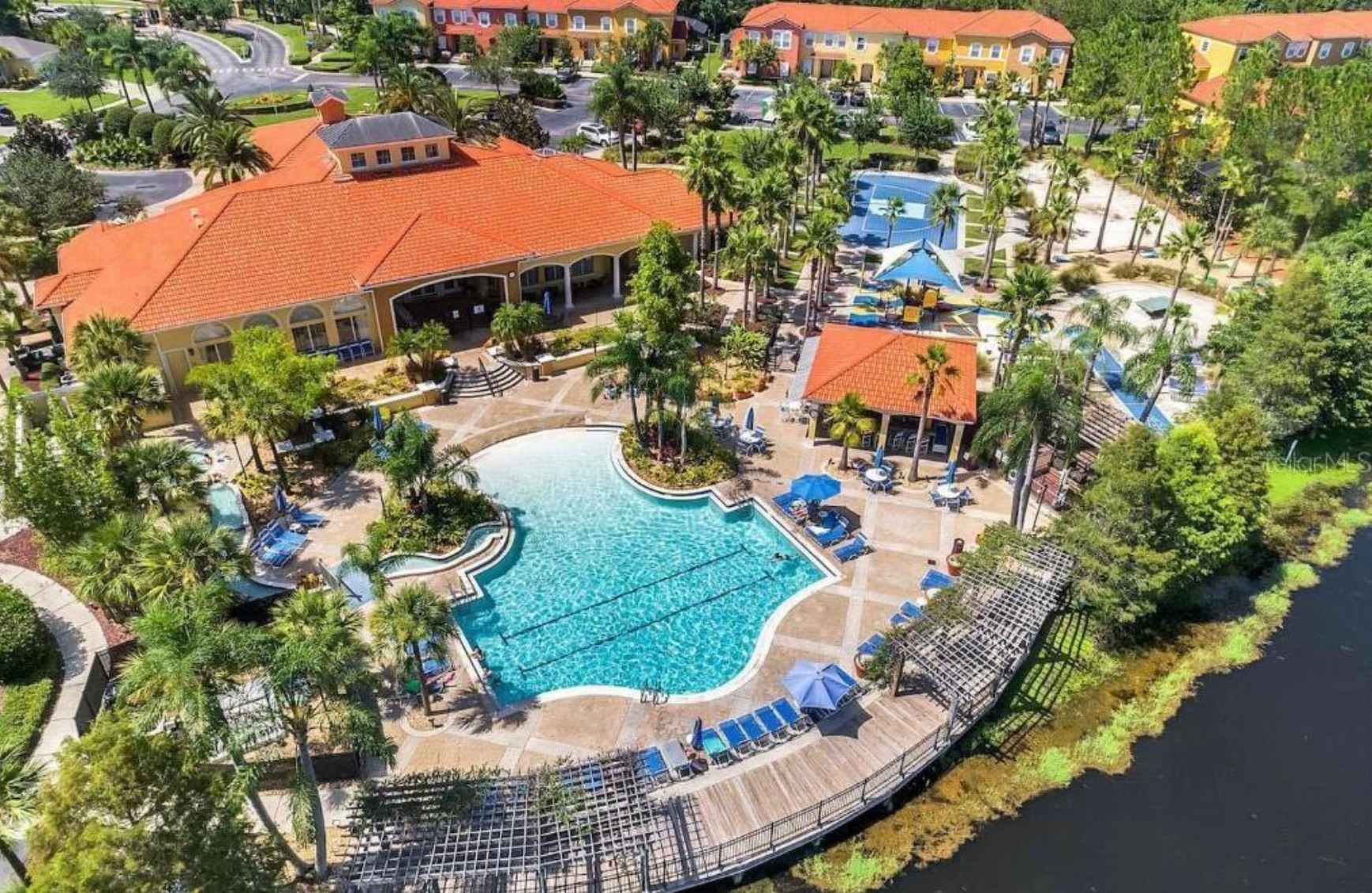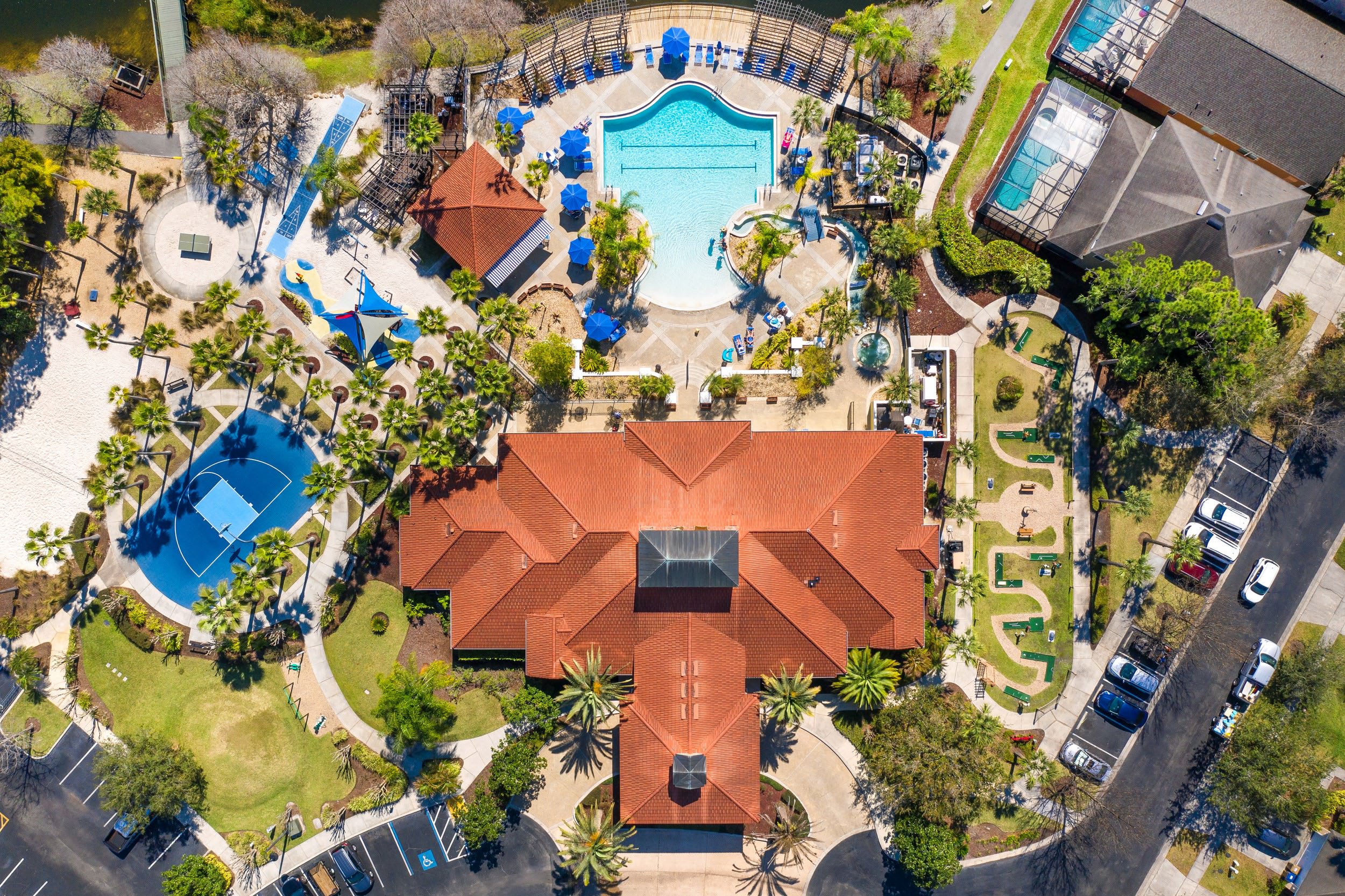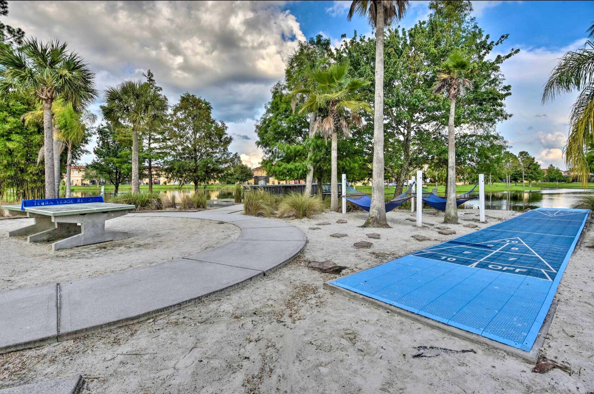 The facilities within the resort are second to none. Lush palm trees and verdant foliage border a heated zero-entry pool complete with a spa-fed river. The clubhouse, sprawls magnificently across 6,000 square feet, and is stocked with a sauna, gym, theater, arcade and much more. Enjoy a friendly match of mini-golf or show off your skills on the sand volleyball court or ping pong table. Who knows what you might do here?!