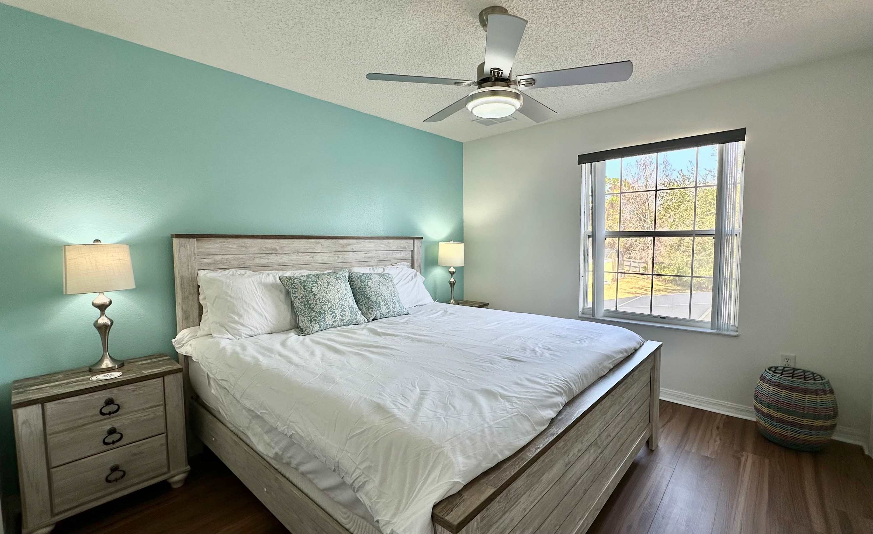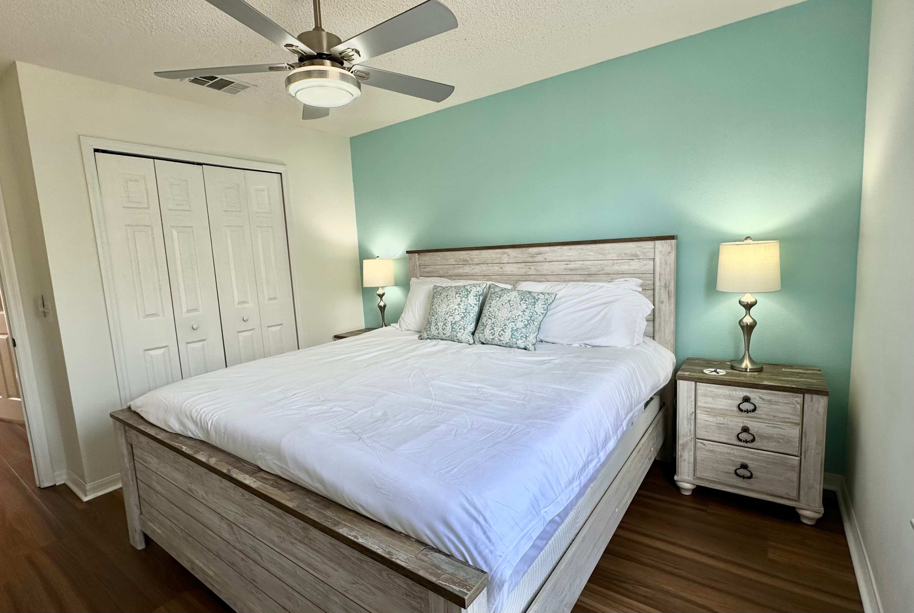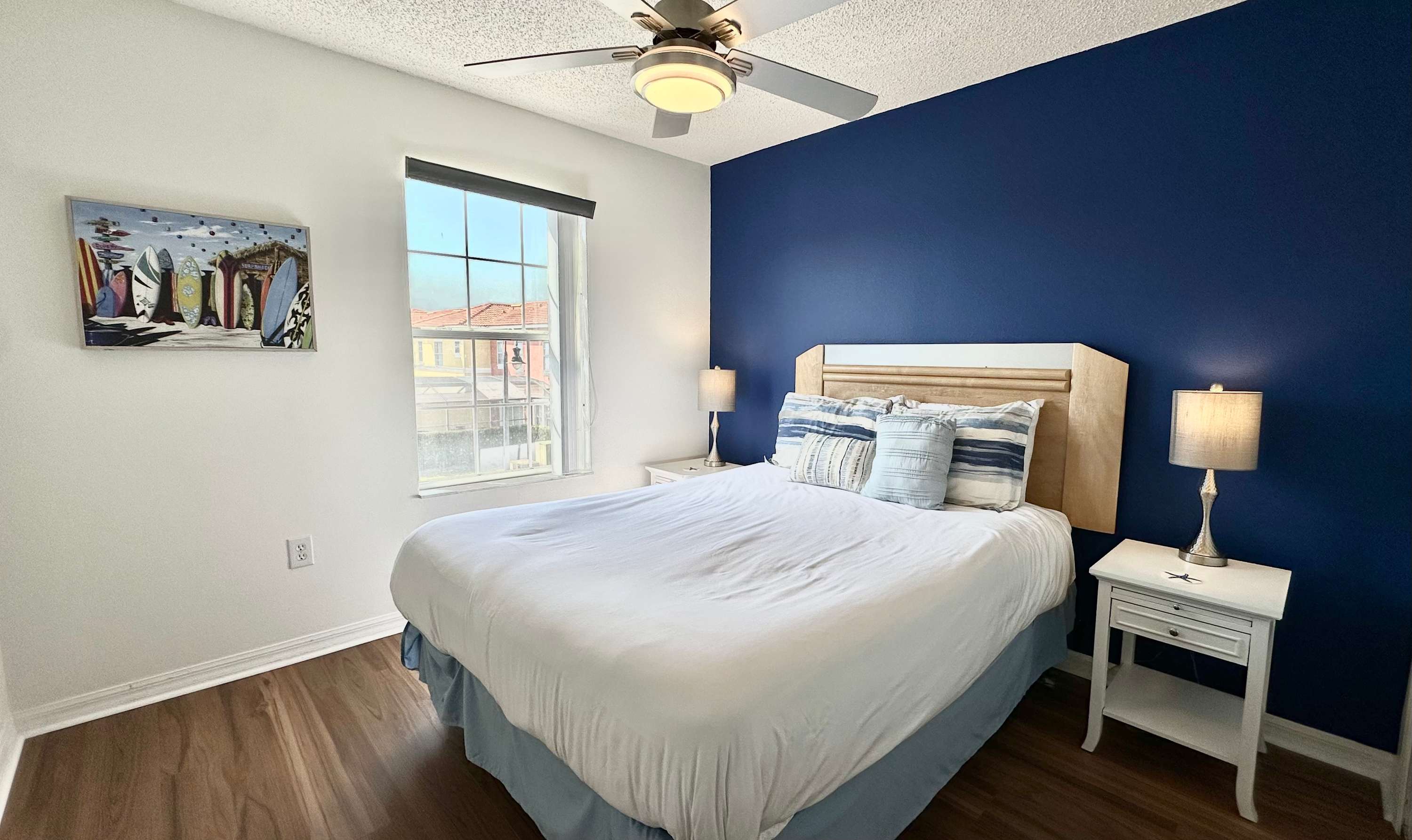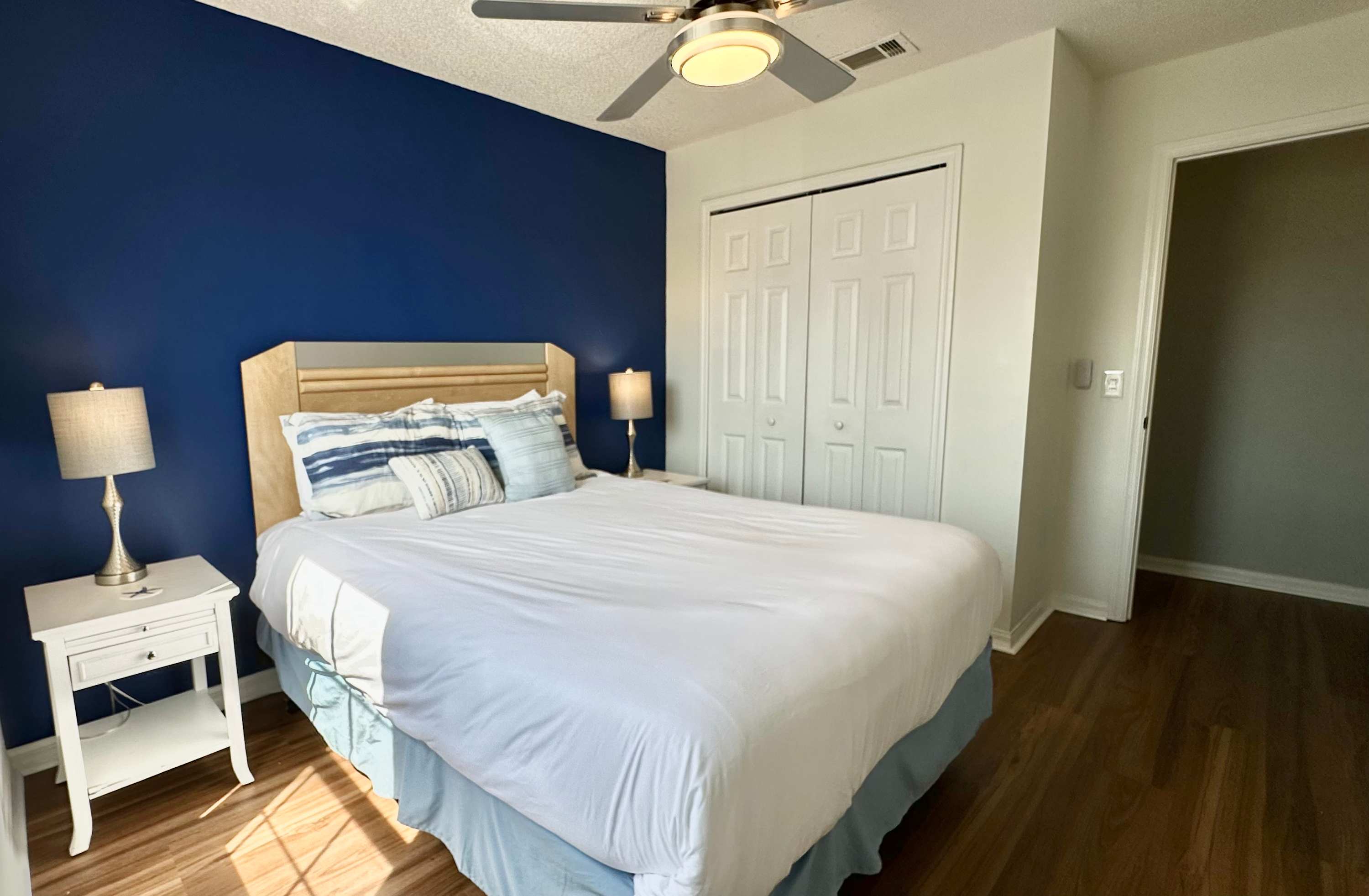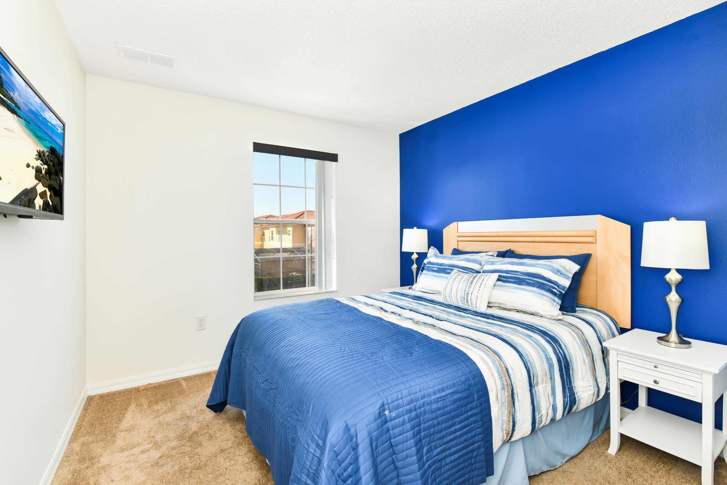 Bedroom #1 is located next to the stairway and comes with a queen-size bed and a smart TV.