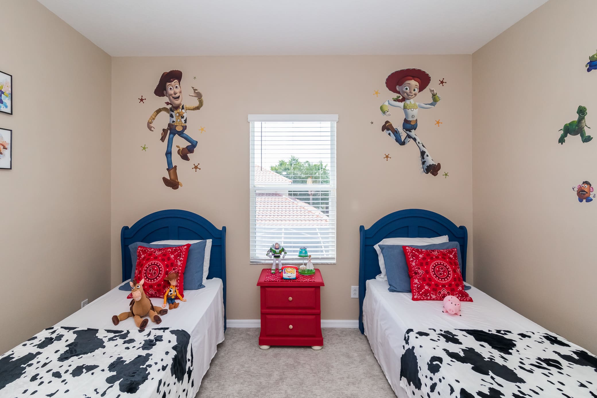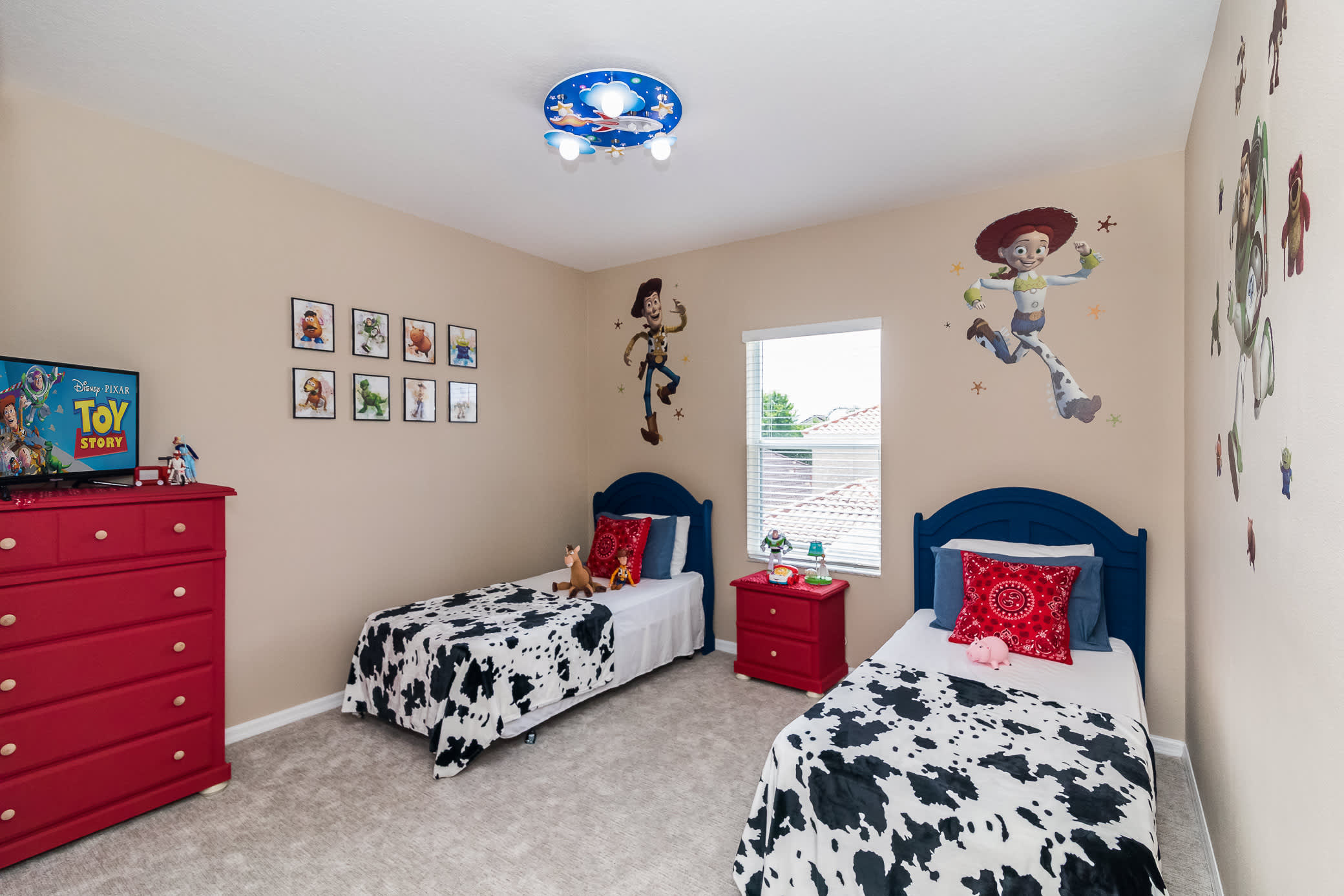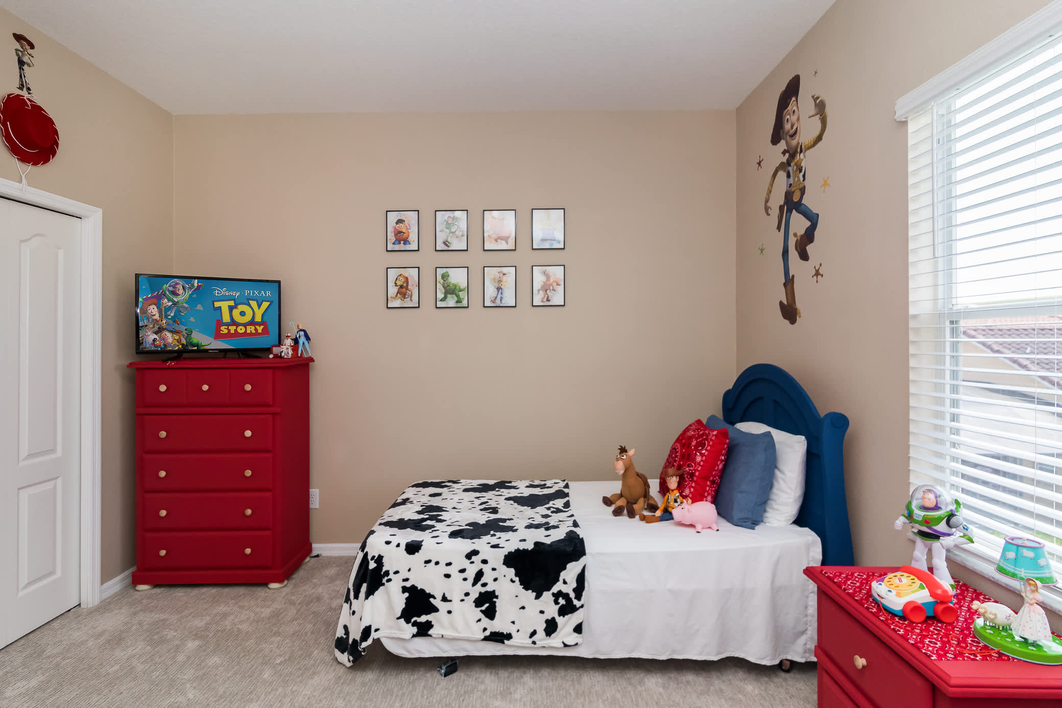 Bedroom #4 - Round up a great night’s rest with Woody, Jessie, and Buzz. This is the Toy Story room, complete with two twin beds, TV, and plenty of storage via both a dresser and nightstand. The best amenities – the toys themselves!