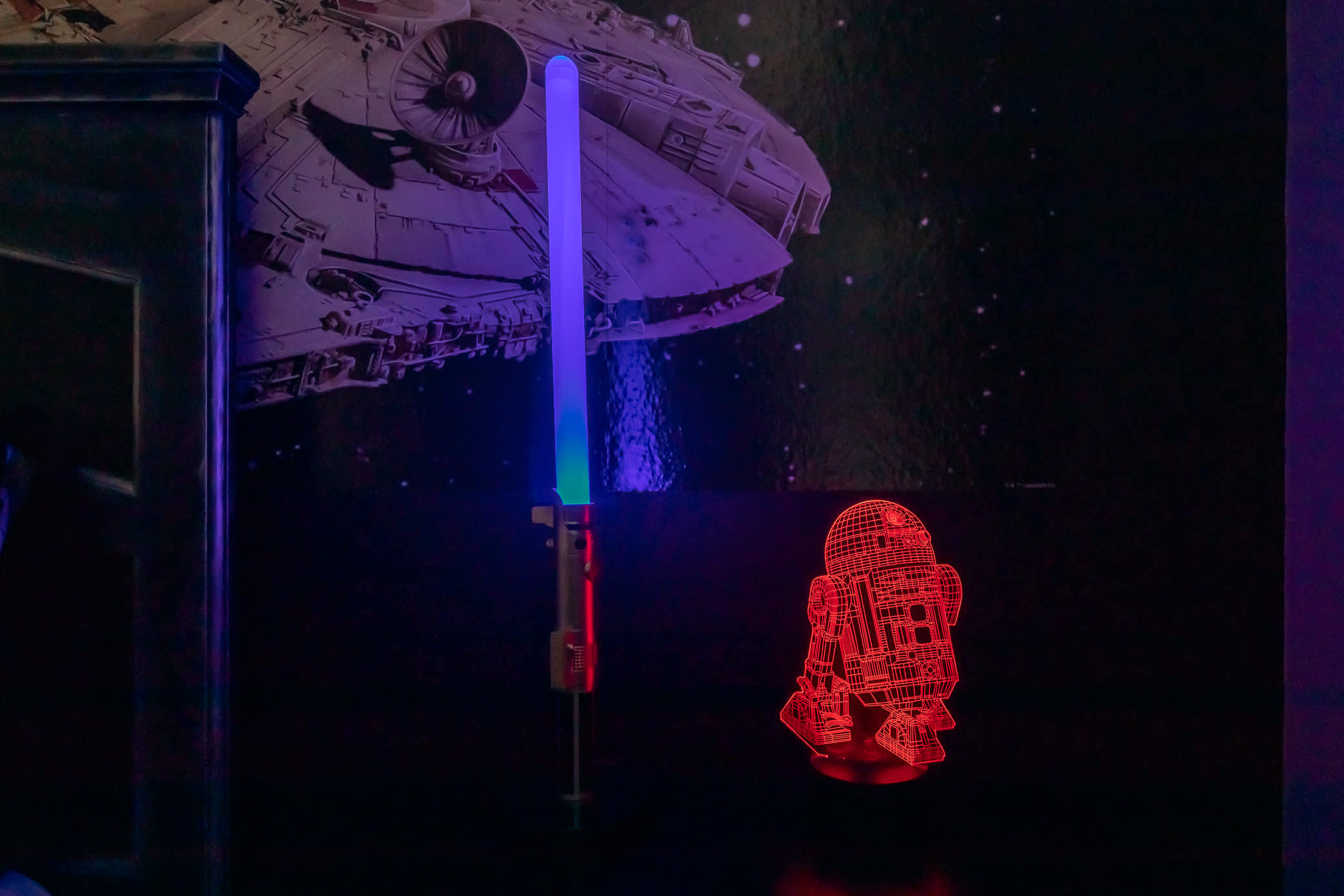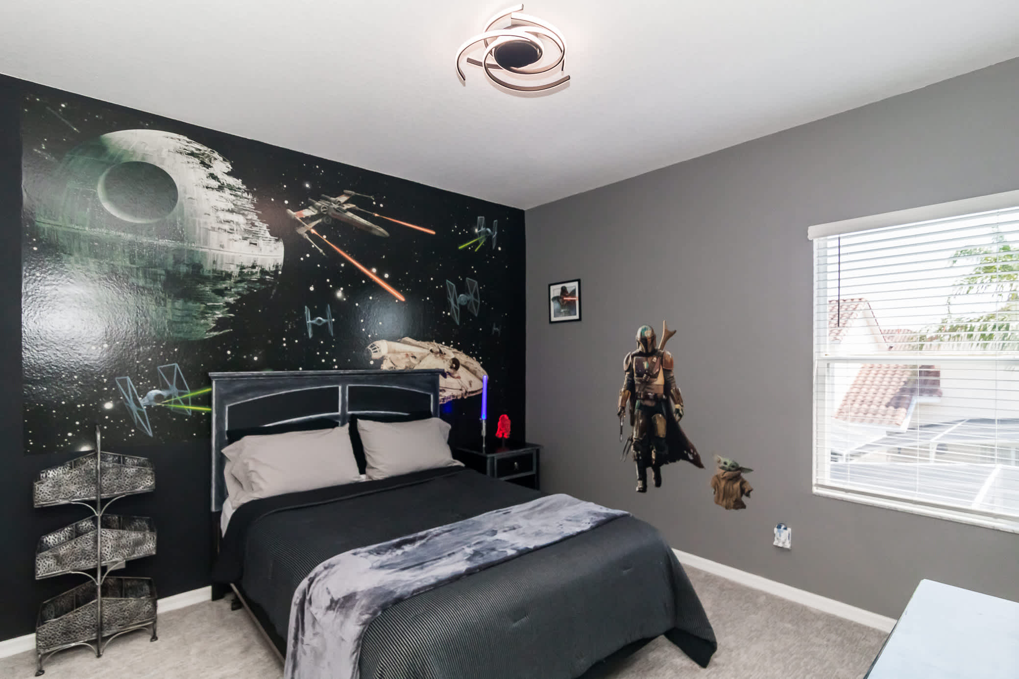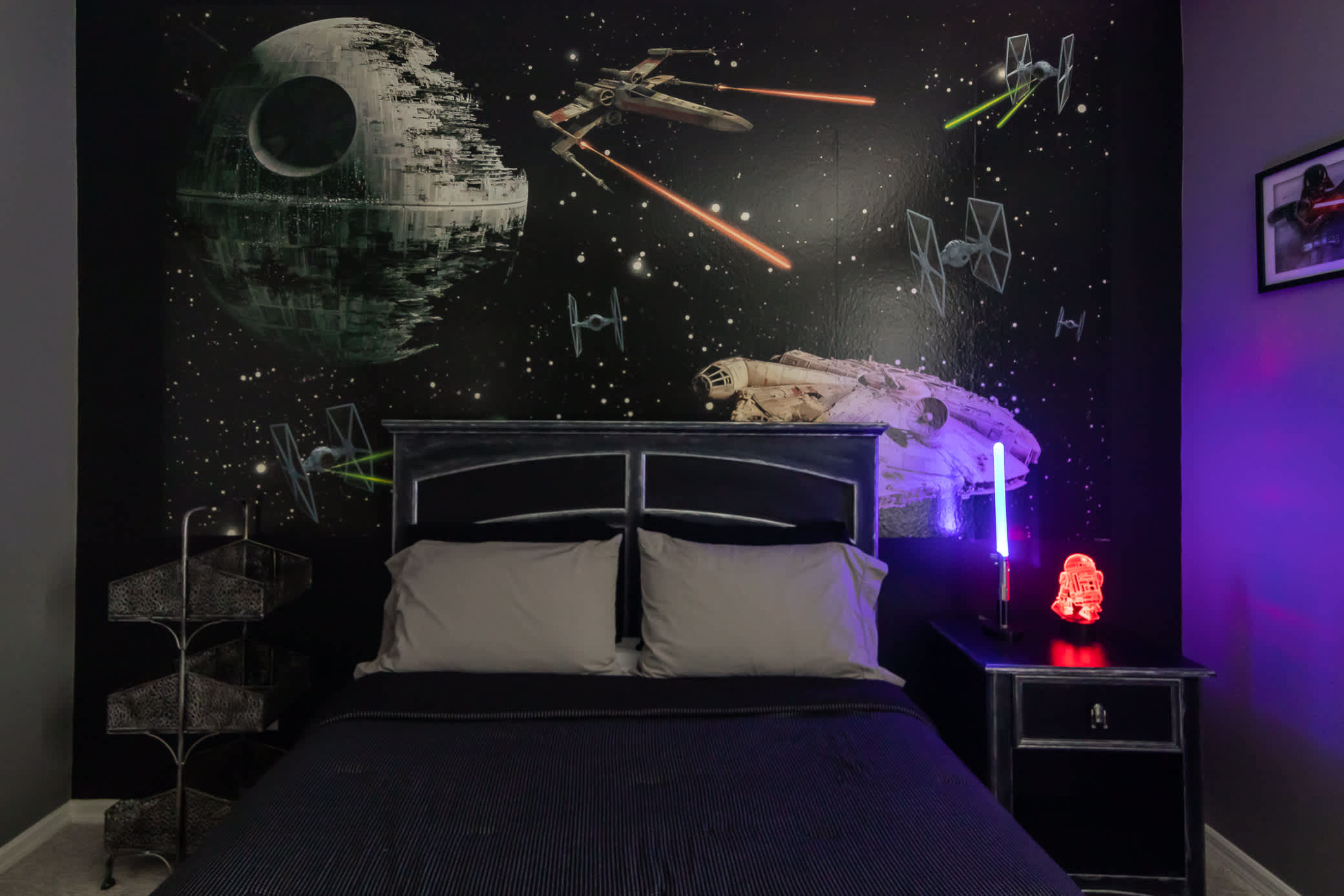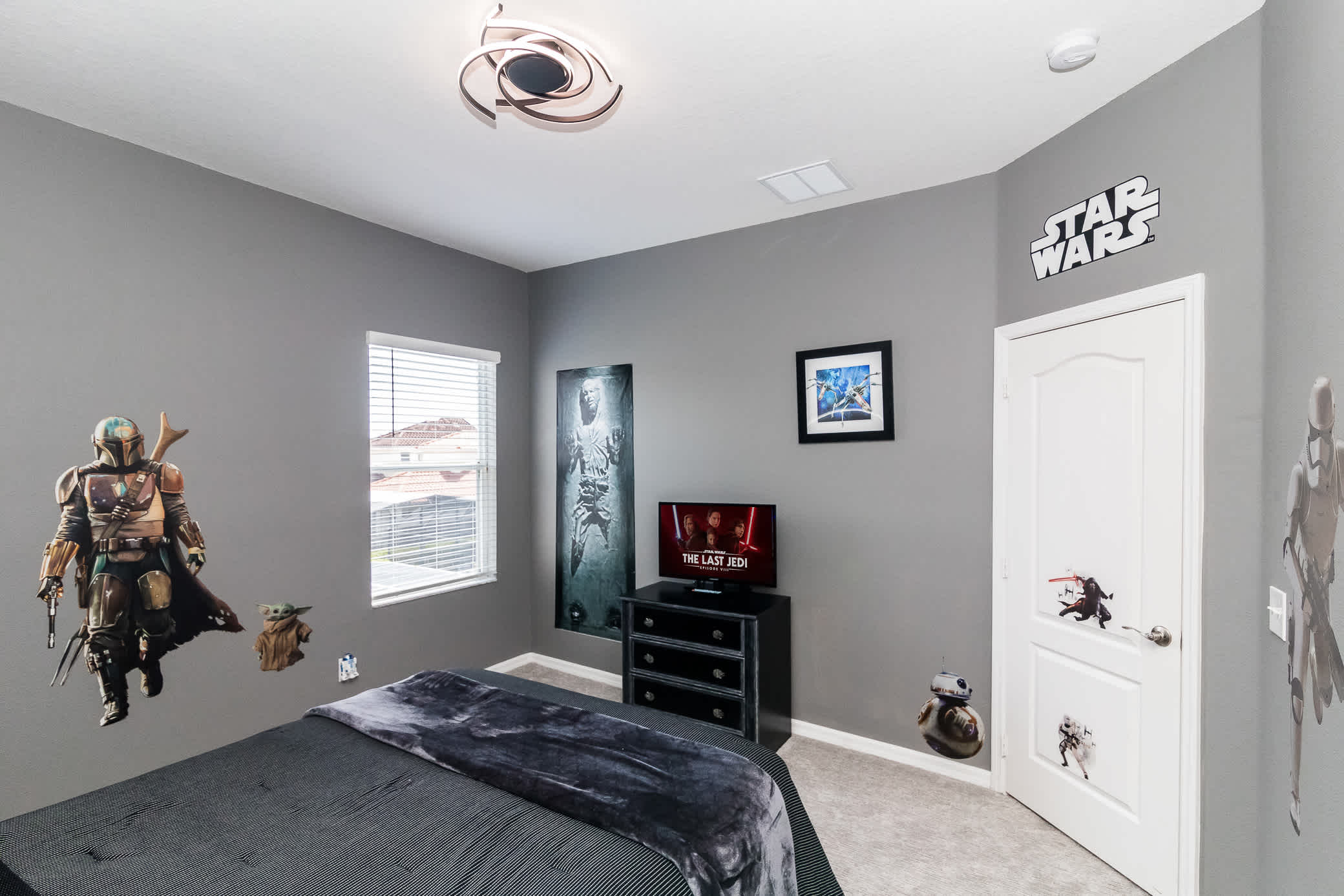 Bedroom #5– R2D2 and Darth Vader greet you upon every morning mission in the Star Wars room. This room sports a comfy full-sized bed and TV.